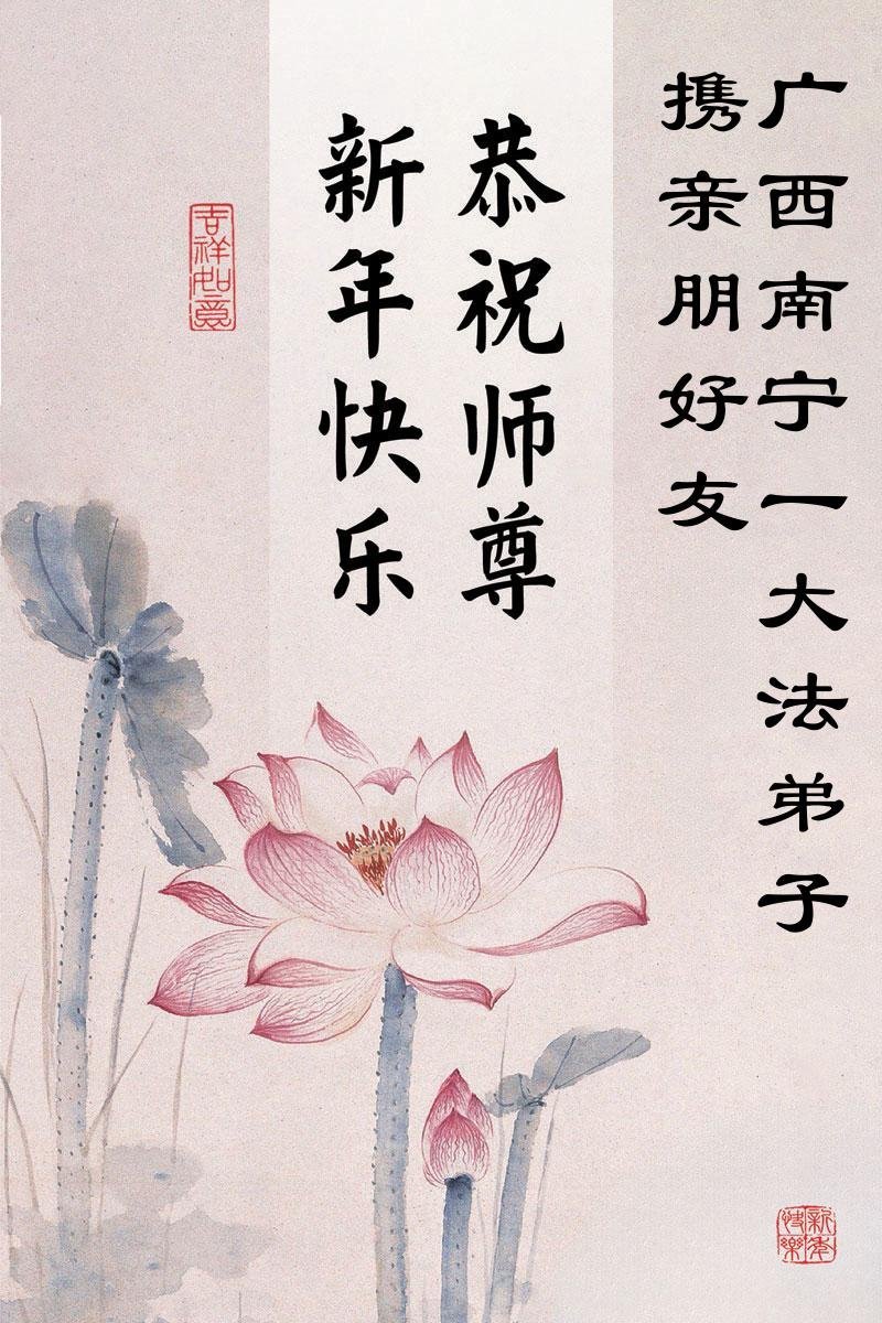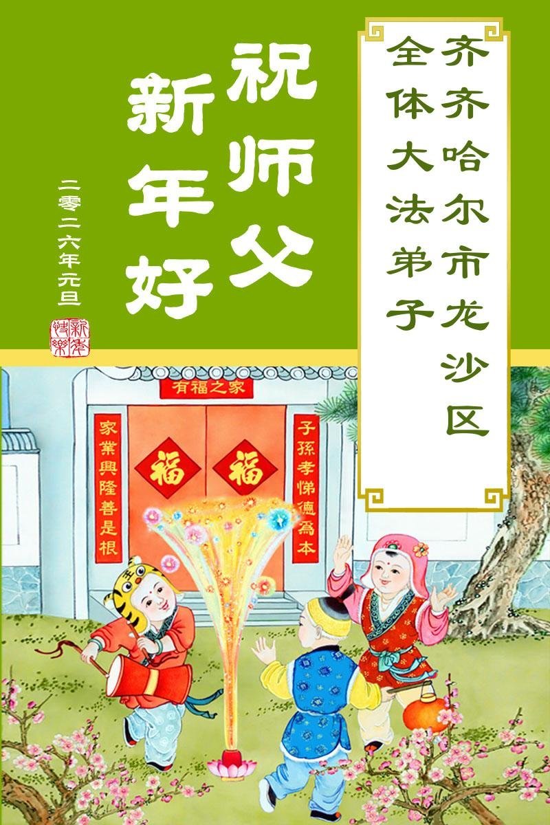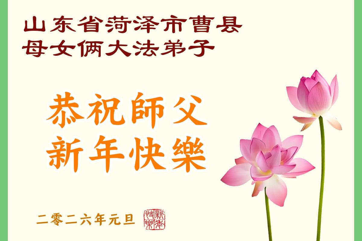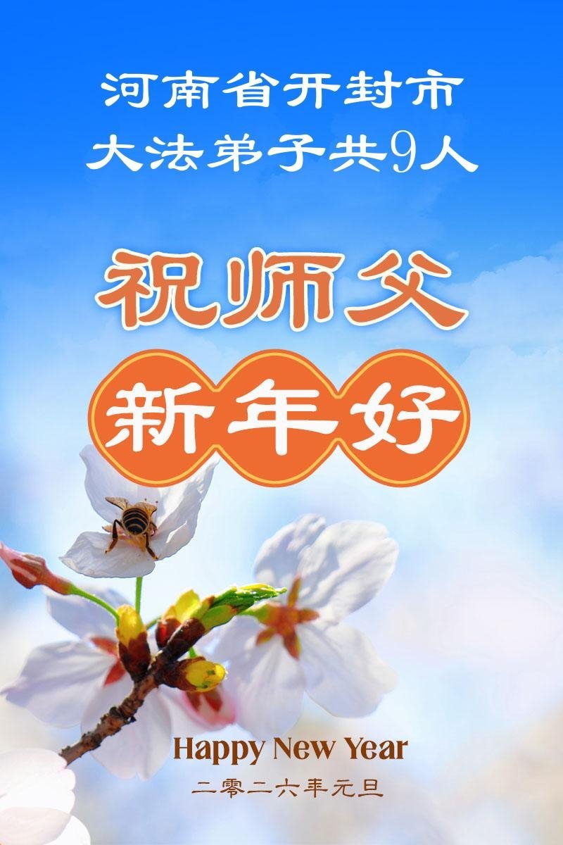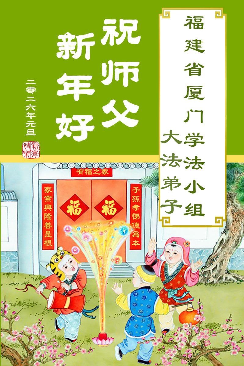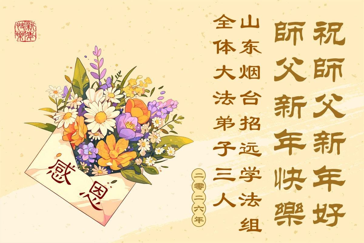 以下是部份來自中國各省、市、地區的學法煉功小組、講真相小組、資料點大法弟子們敬致師尊的新年賀詞賀卡: