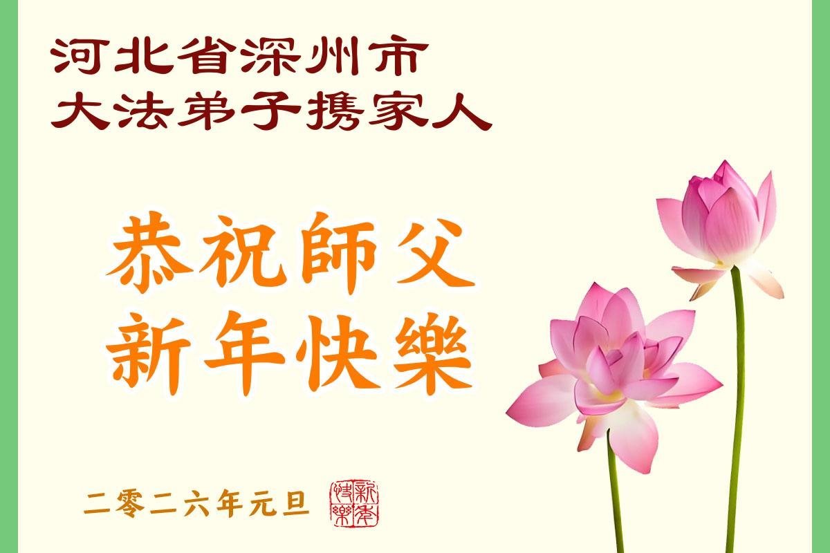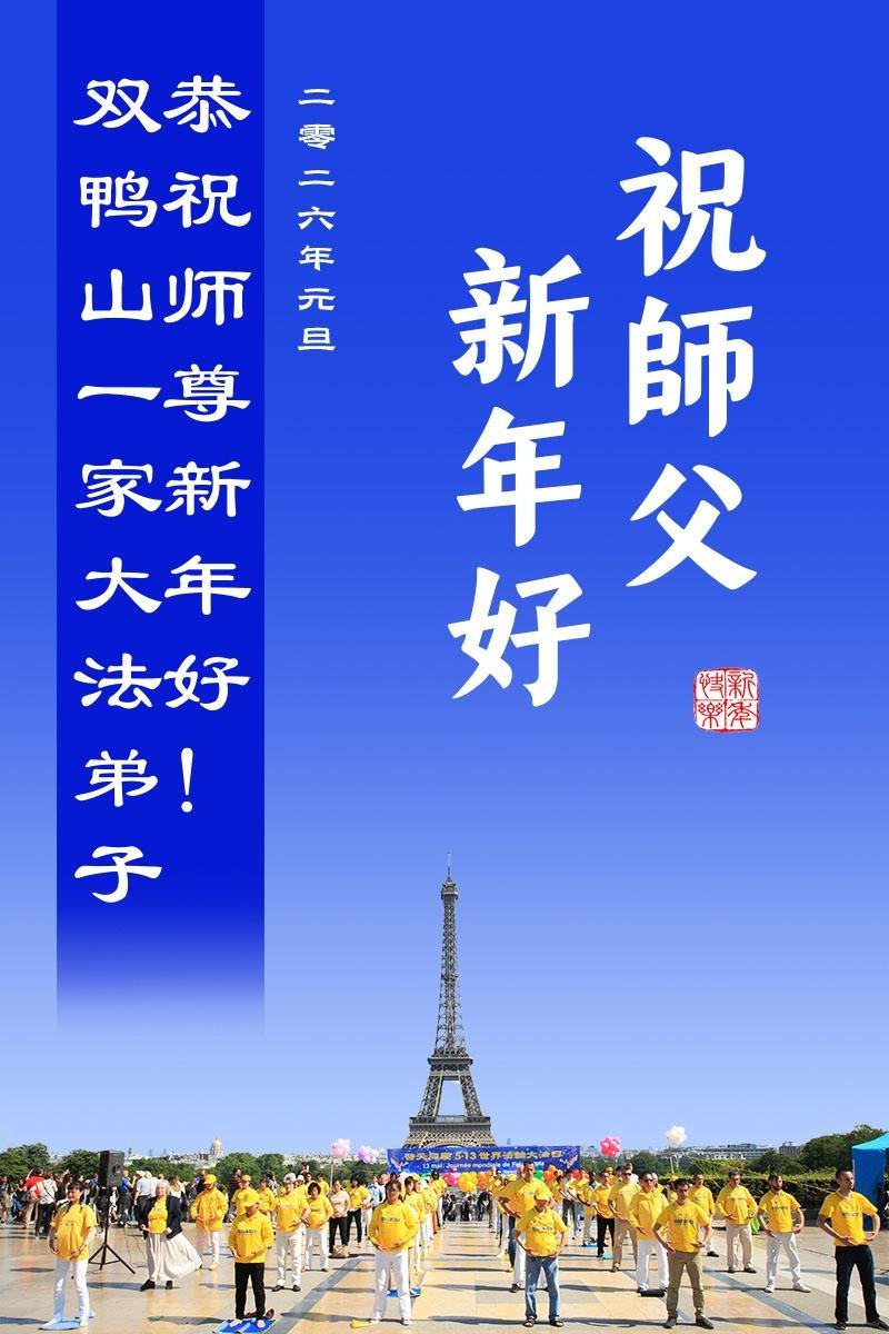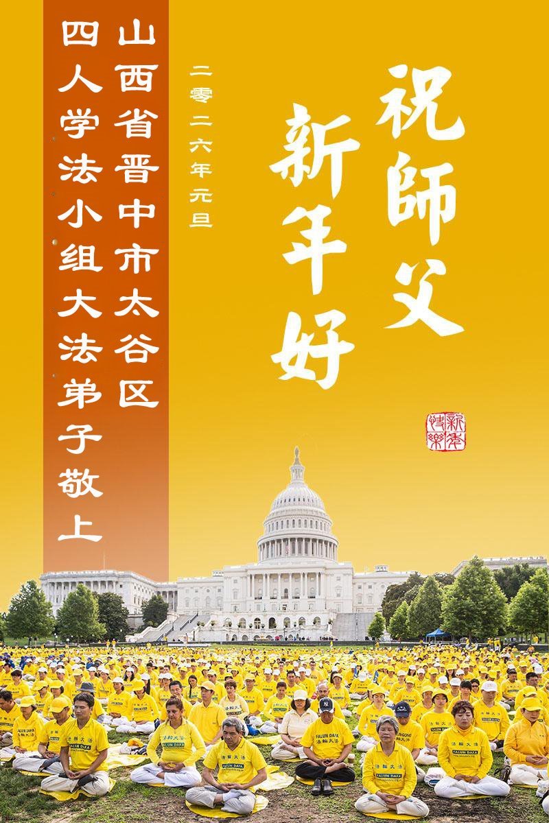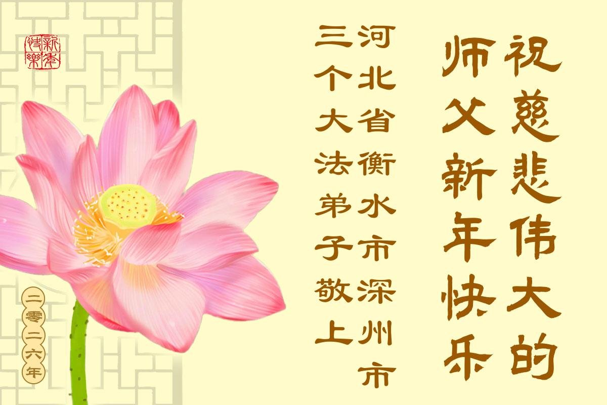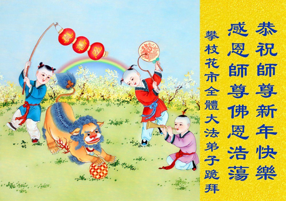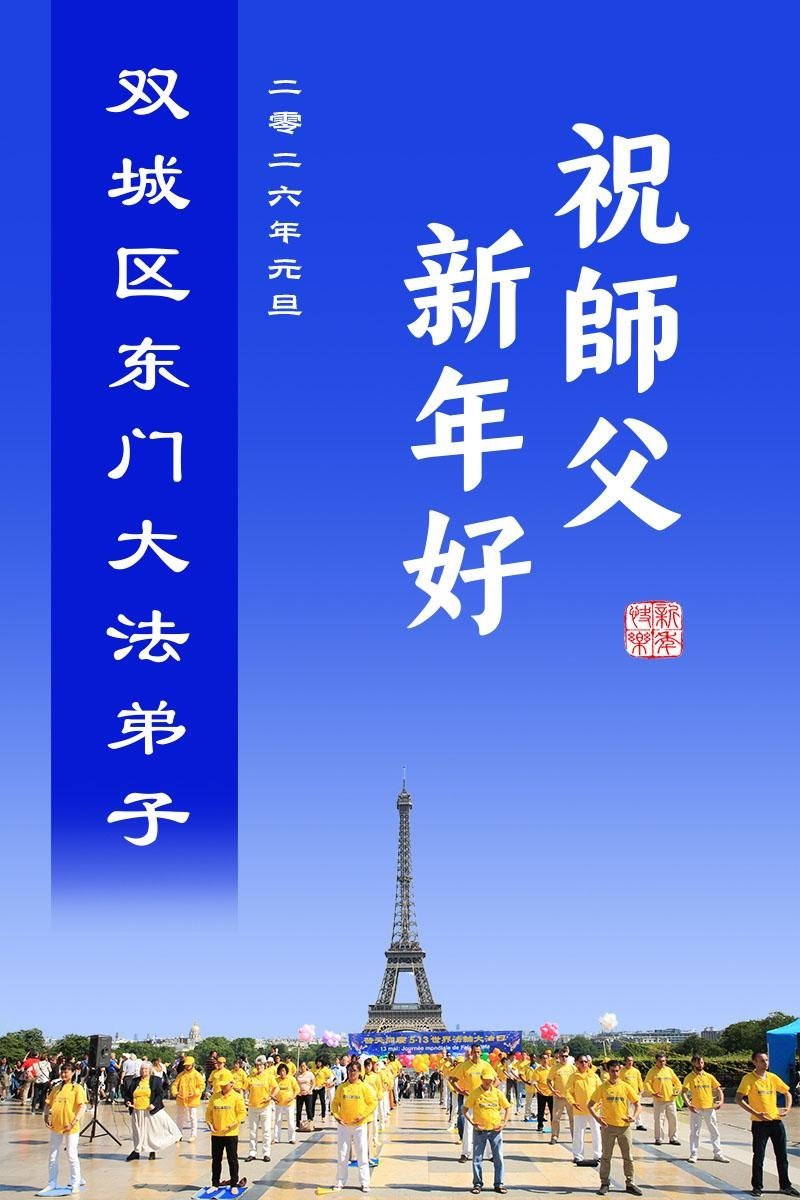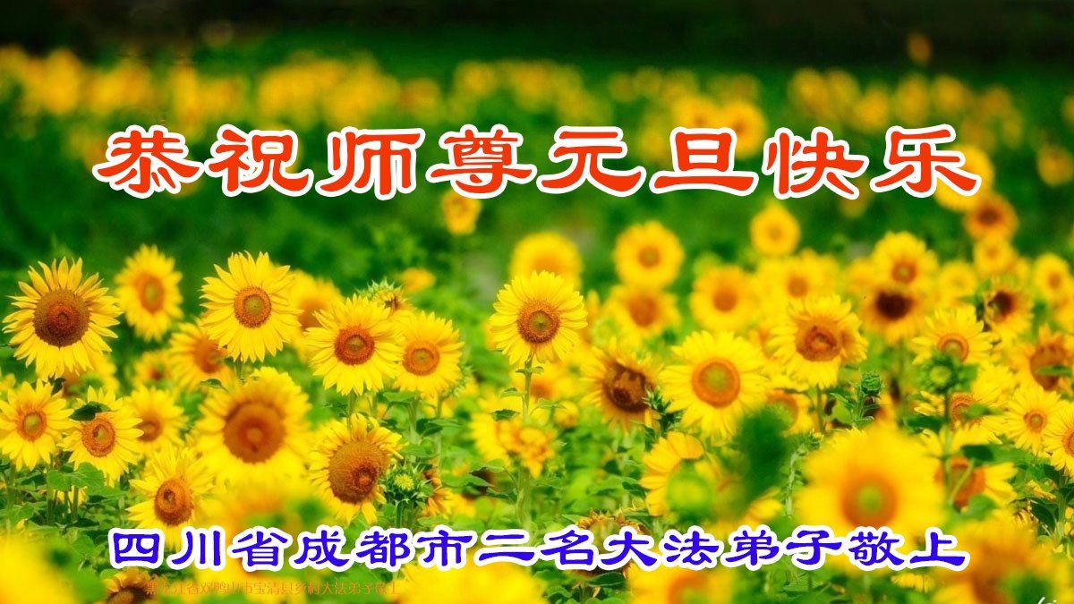 以下是部份來自中國各省、市、地區的學法煉功小組、講真相小組、資料點大法弟子們敬致師尊的新年賀詞賀卡: