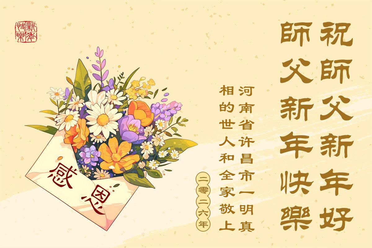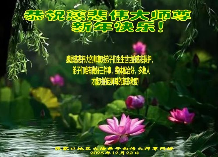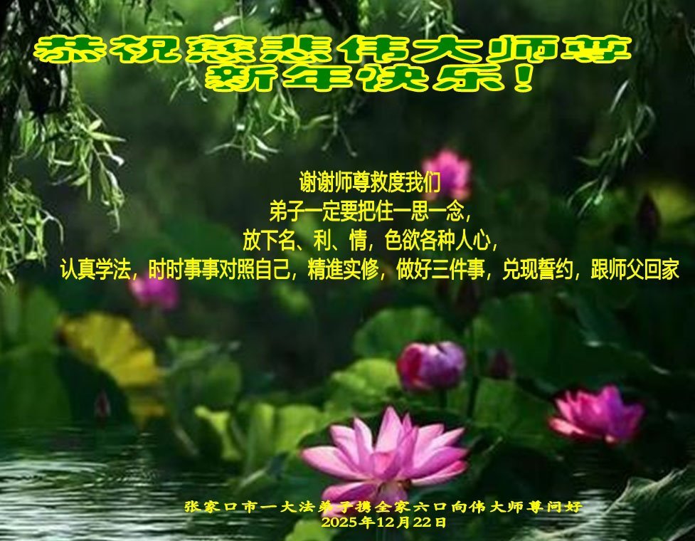 【明慧網二零二五年十二月三十一日】二零二六年新年鐘聲敲響之際,中國大陸30省、直轄市、自治區大法弟子同拜師尊,恭祝慈悲偉大的師尊新年好!