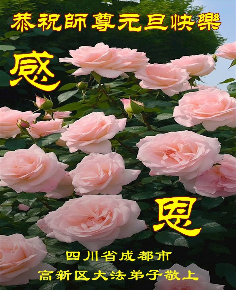 時光飛逝,一晃新的一年又開始了,在這辭舊迎新的日子裏,恭祝慈悲偉大的師父新年快樂!感恩師父時刻的慈悲看護和加持,弟子才能在這特殊的歷史時期,能一如既往的做好自己分內之事。對師父的感恩之心無以言表,弟子會更加精進,兌現誓約,讓師父少些操勞,多些安慰。遙拜叩謝恩師!