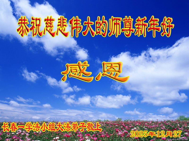 弟子得法近十年,修煉路並不平坦,但是身心靈獲救後的輕鬆和愉悅,用任何語言都無法表述對師父的感恩!新的一年又將來臨,弟子知道是師父巨大的承受給我們又延續來了一個新年,弟子深知只有更加努力精進,做好三件事,多多救人,兌現好史前大願,才是對師父最好的報答。感恩師父!