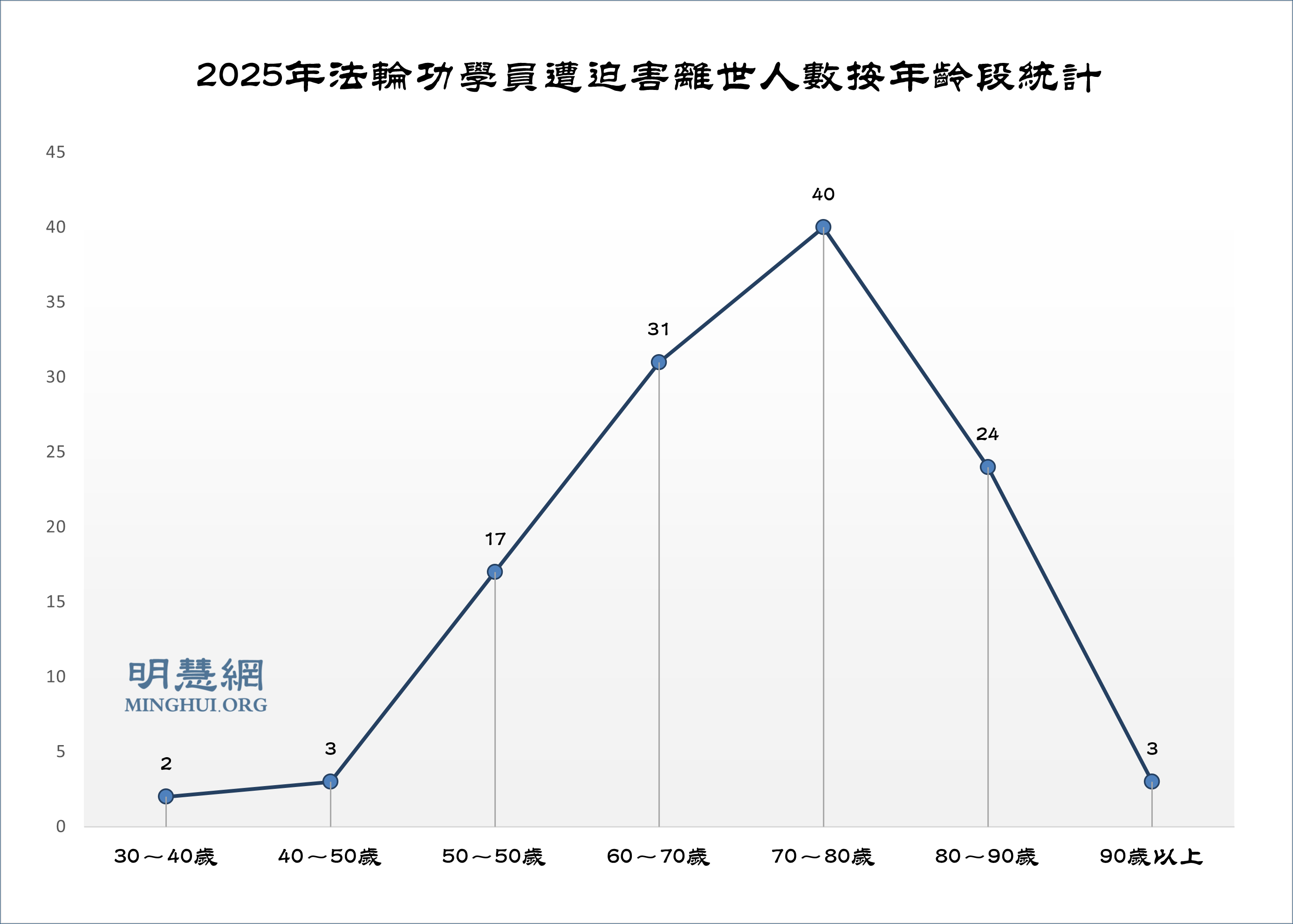 ![]() 圖2:2025年法輪功學員遭迫害離世人數按年齡段統計 |