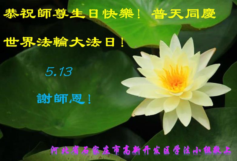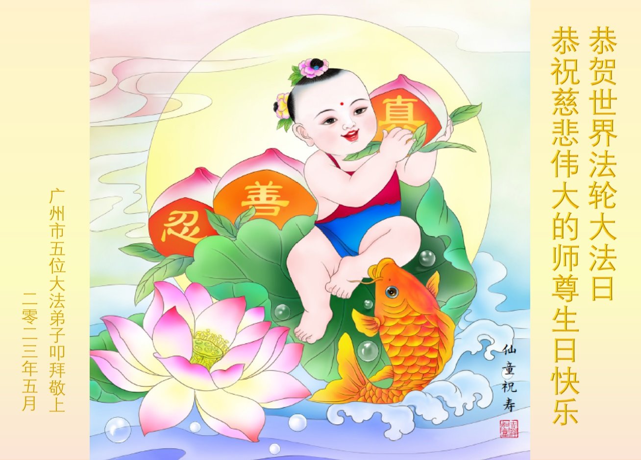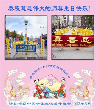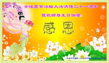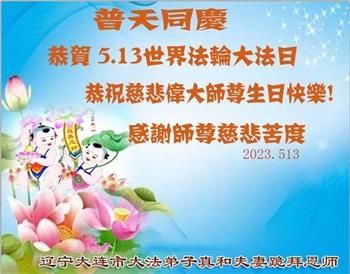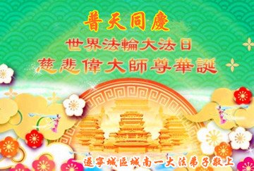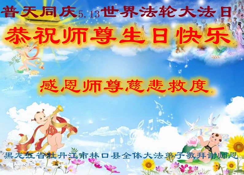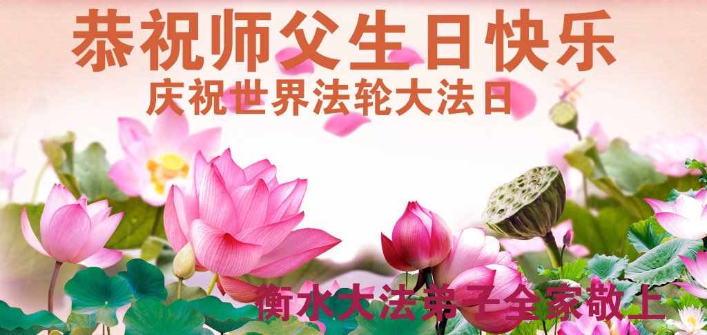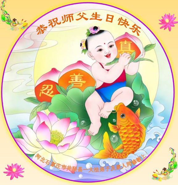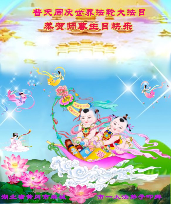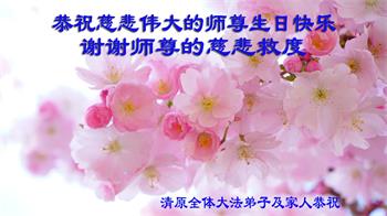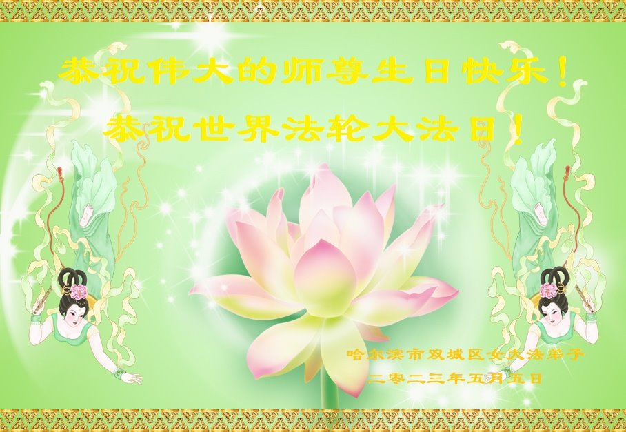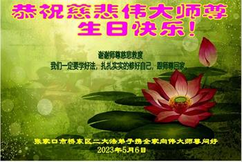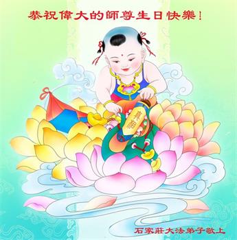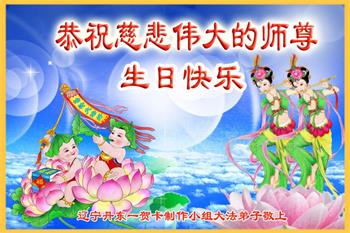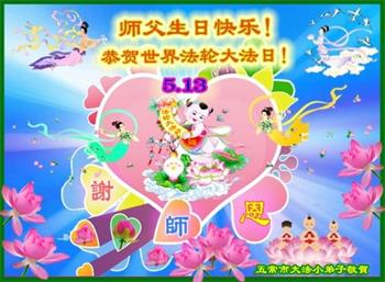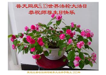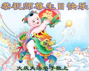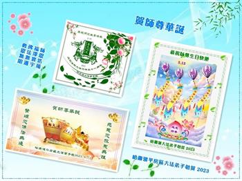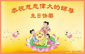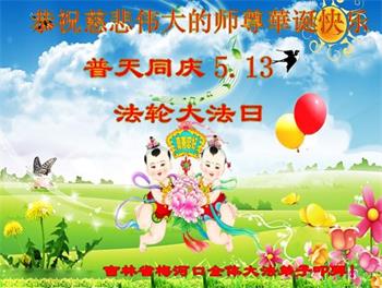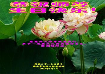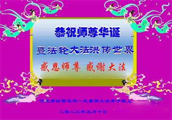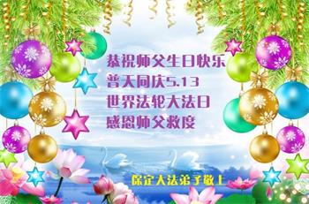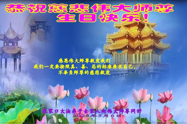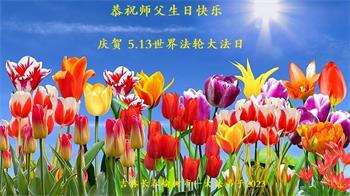 在我們恭祝師父生日和歡慶世界法輪大法日的喜慶時刻,我們心裏充滿了對師父的無限感恩!慈悲偉大的師父好!恭祝師父生日快樂!