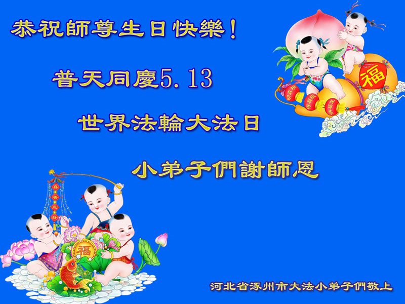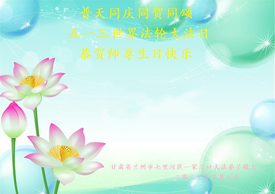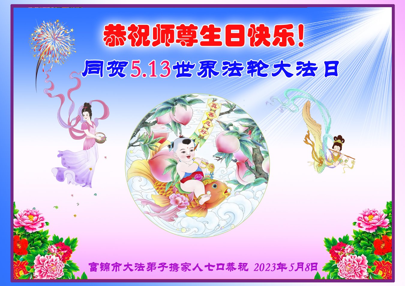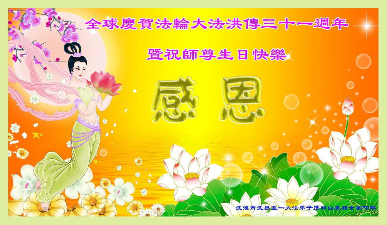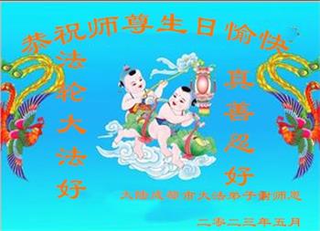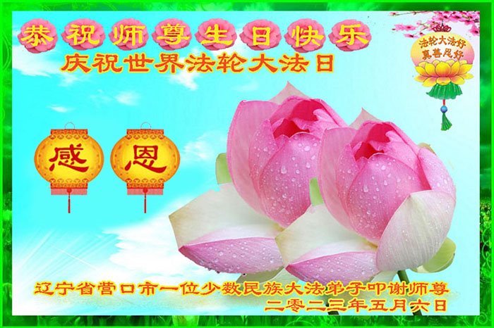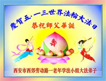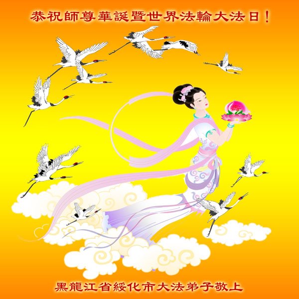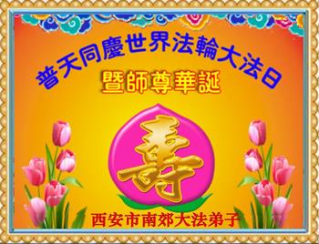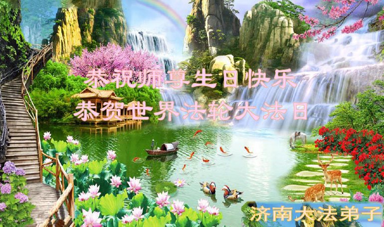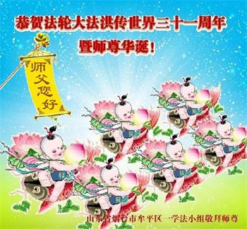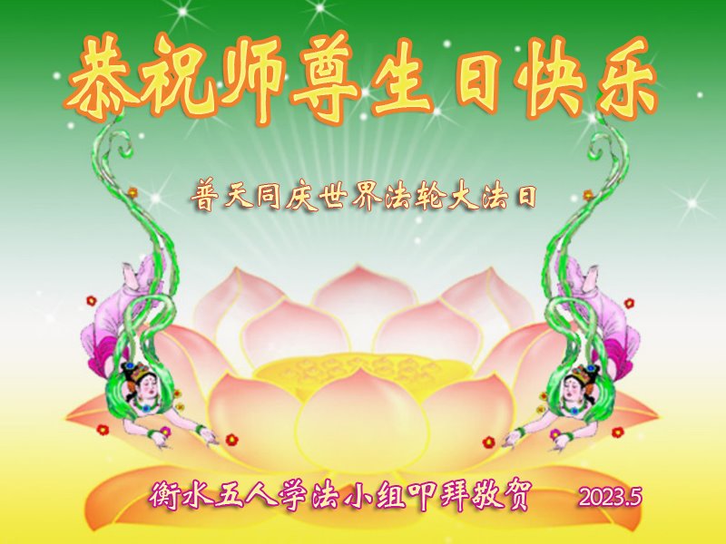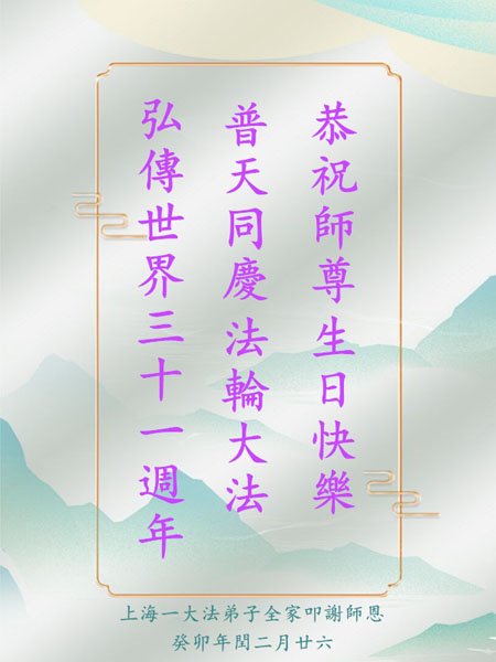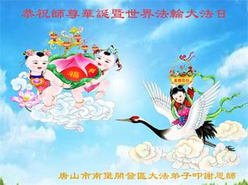 在我們恭祝師父生日和歡慶世界法輪大法日的喜慶時刻,我們心裏充滿了對師父的無限感恩!慈悲偉大的師父好!恭祝師父生日快樂!