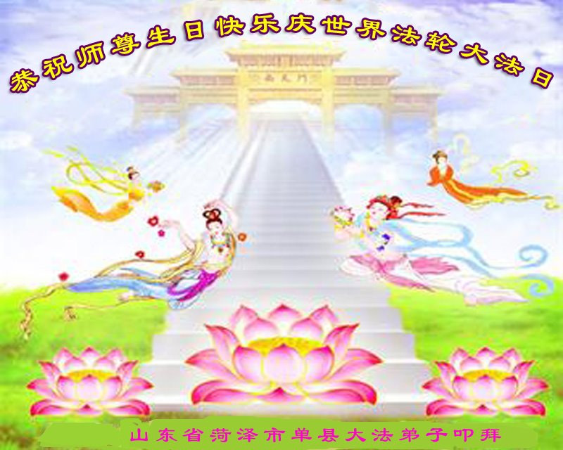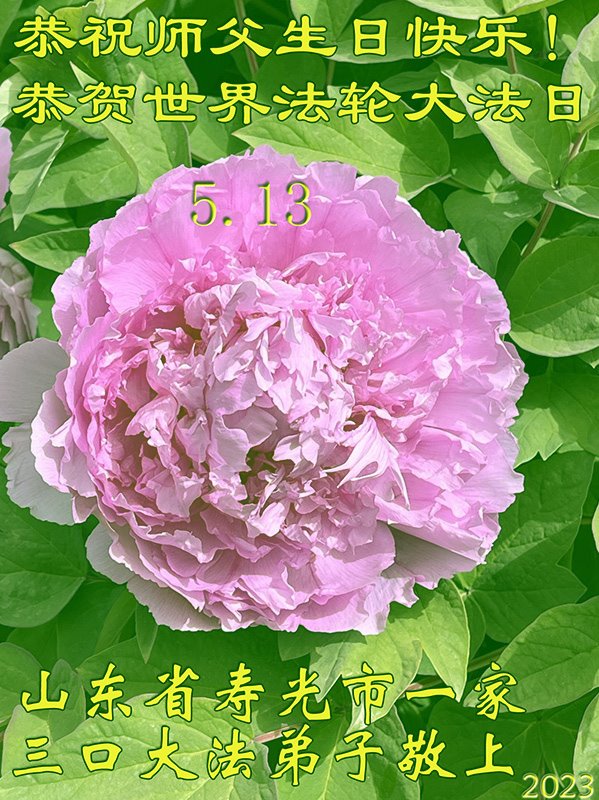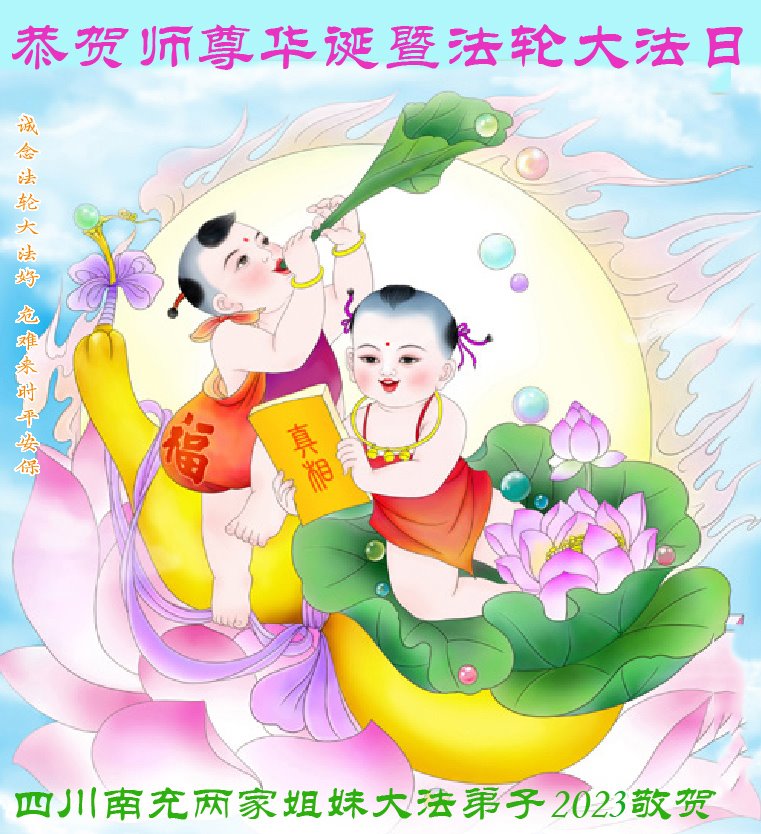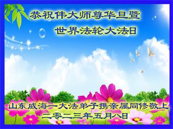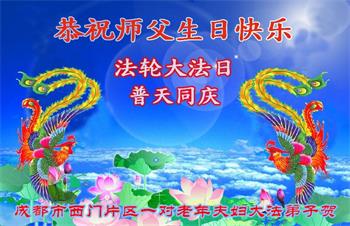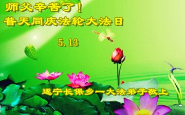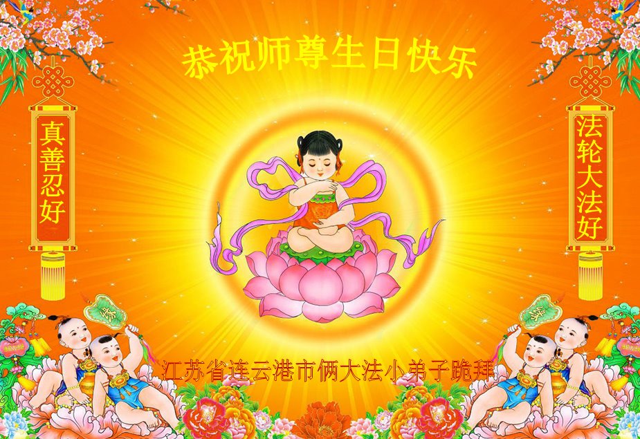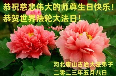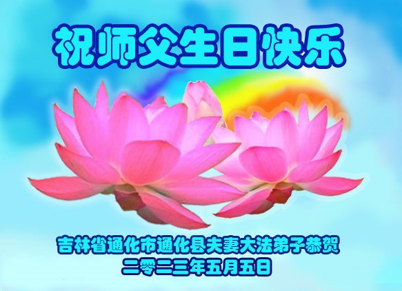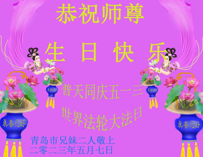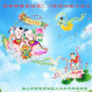 在普天同慶世界法輪大法日的殊勝日子裏,我們倆老年大法弟子真誠的問聲:師尊好!恭祝師尊生日快樂!感恩師尊慈悲救度!
