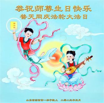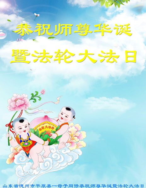 山東招遠齊山鎮一對夫妻大法弟子攜全家八口人敬上