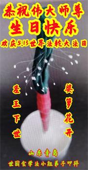 值此世界法輪大法日到來之際,恭祝師尊生日快樂!衷心感謝慈悲偉大的師尊!叩拜師尊!