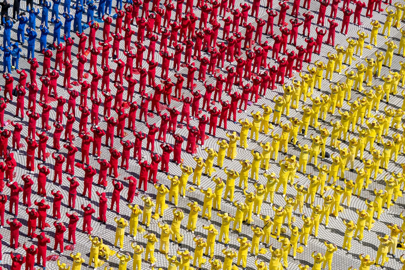 ![]() 圖3~4:五千名法輪功學員於排字結束後,舉行集體煉功。 |