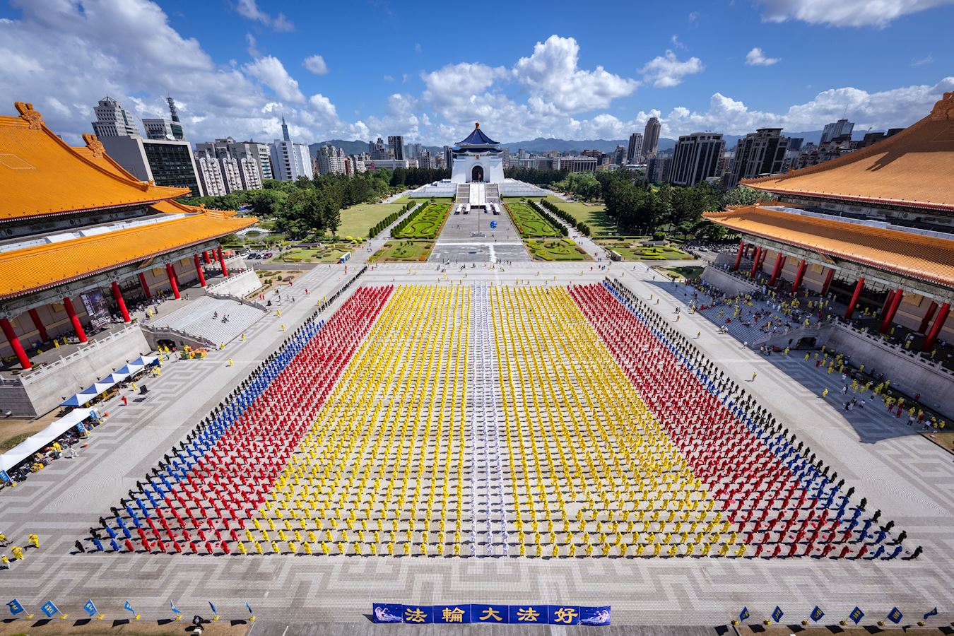 ![]() 圖1:二零二五年十月十八日,約五千名法輪功學員在台北自由廣場排字,排出歷年來最大的法輪圖形和「法輪常轉」四字。 |