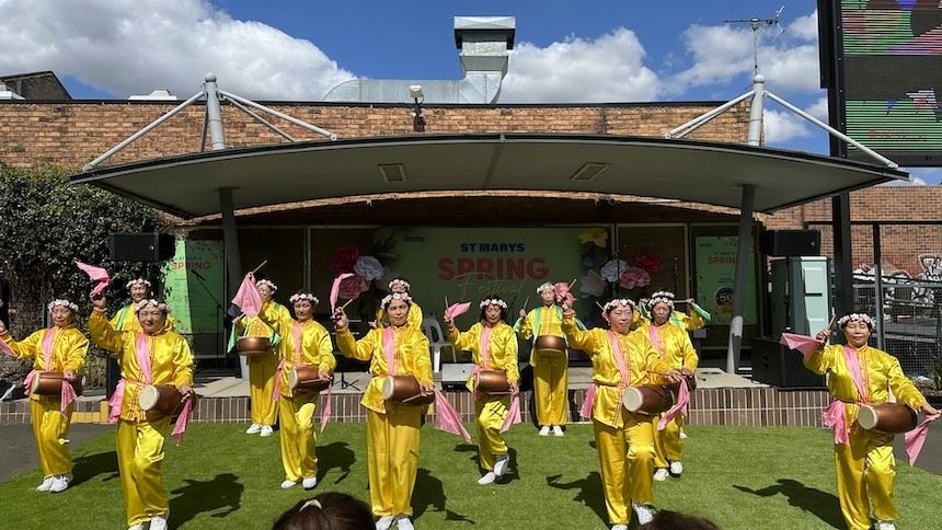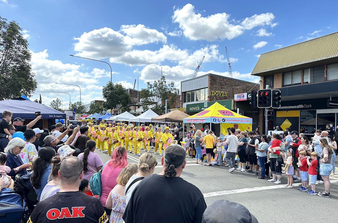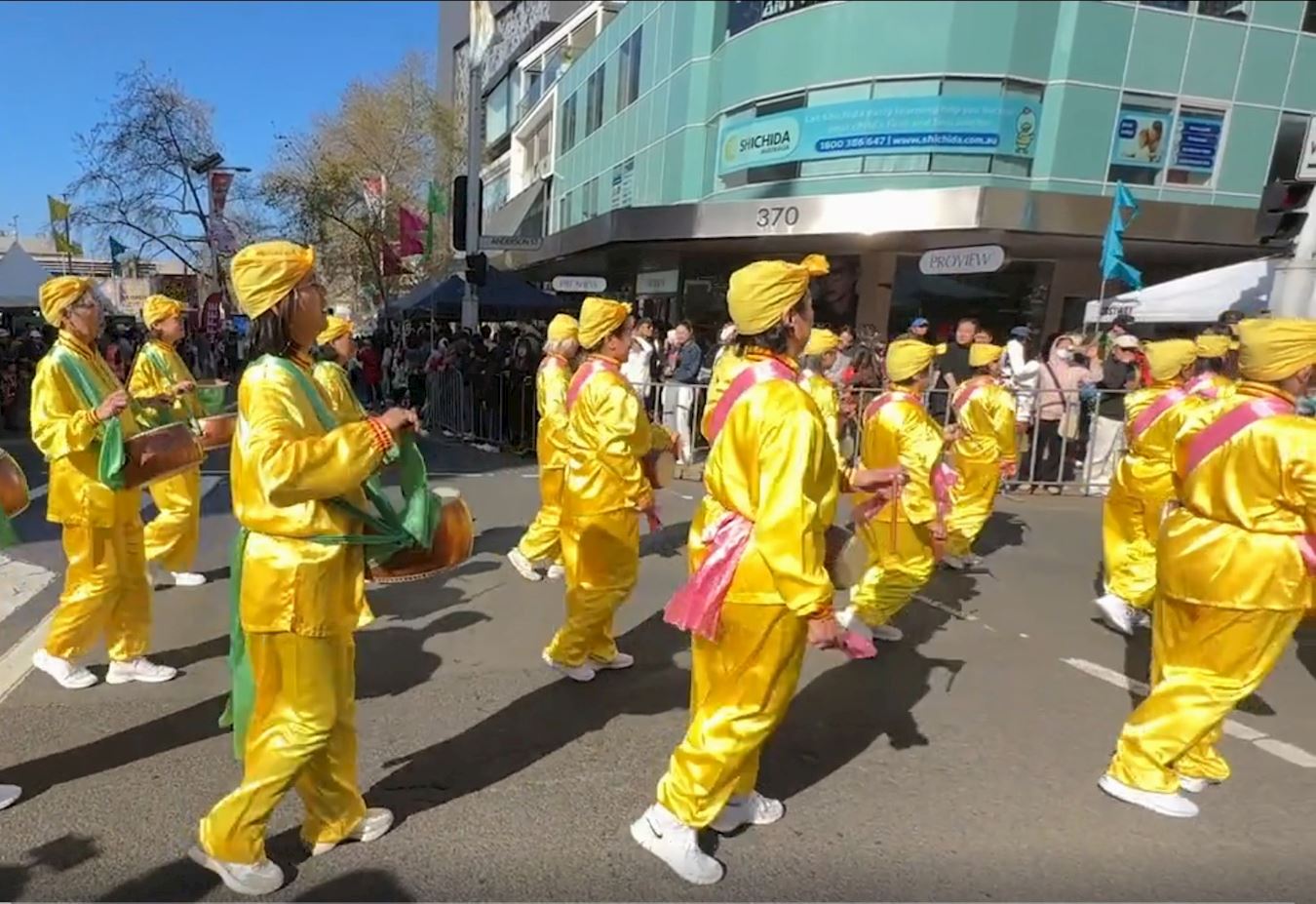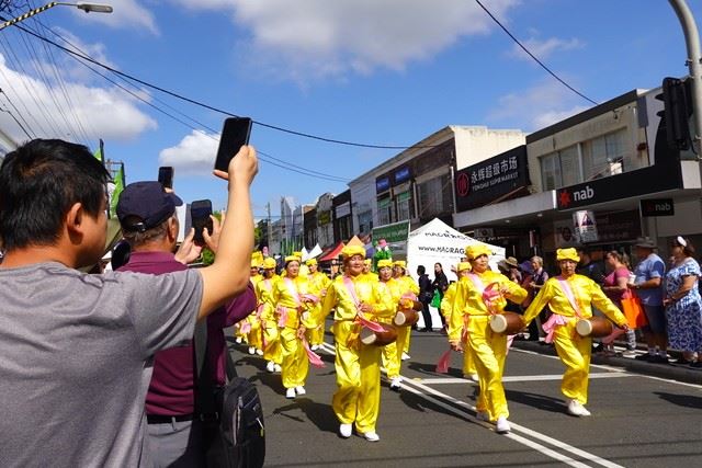 九月六日,由法輪功學員組成的天國樂團和腰鼓隊參加了悉尼查茨伍德(Chatswood)舉行的迎春慶典遊行活動。