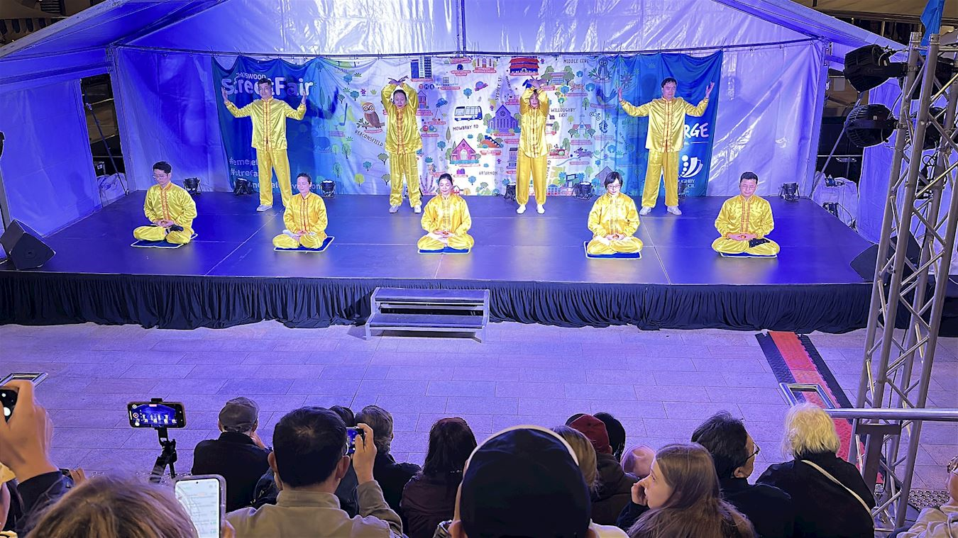 ![]() 圖14:十月十八日,法輪功學員在悉尼北部伊斯特伍德的舞台上演示五套功法。 |