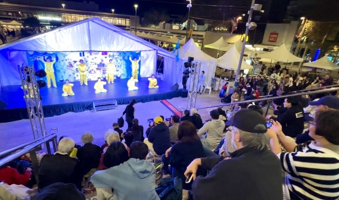 法輪功學員還在舞台上表演了優雅的中華民族的傳統舞蹈,受到觀眾的歡迎。