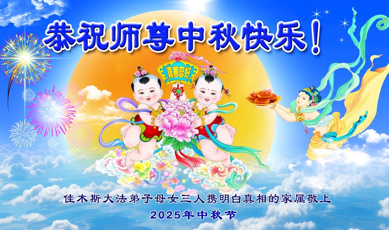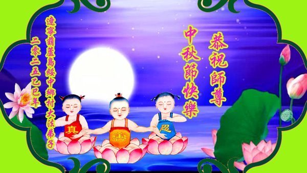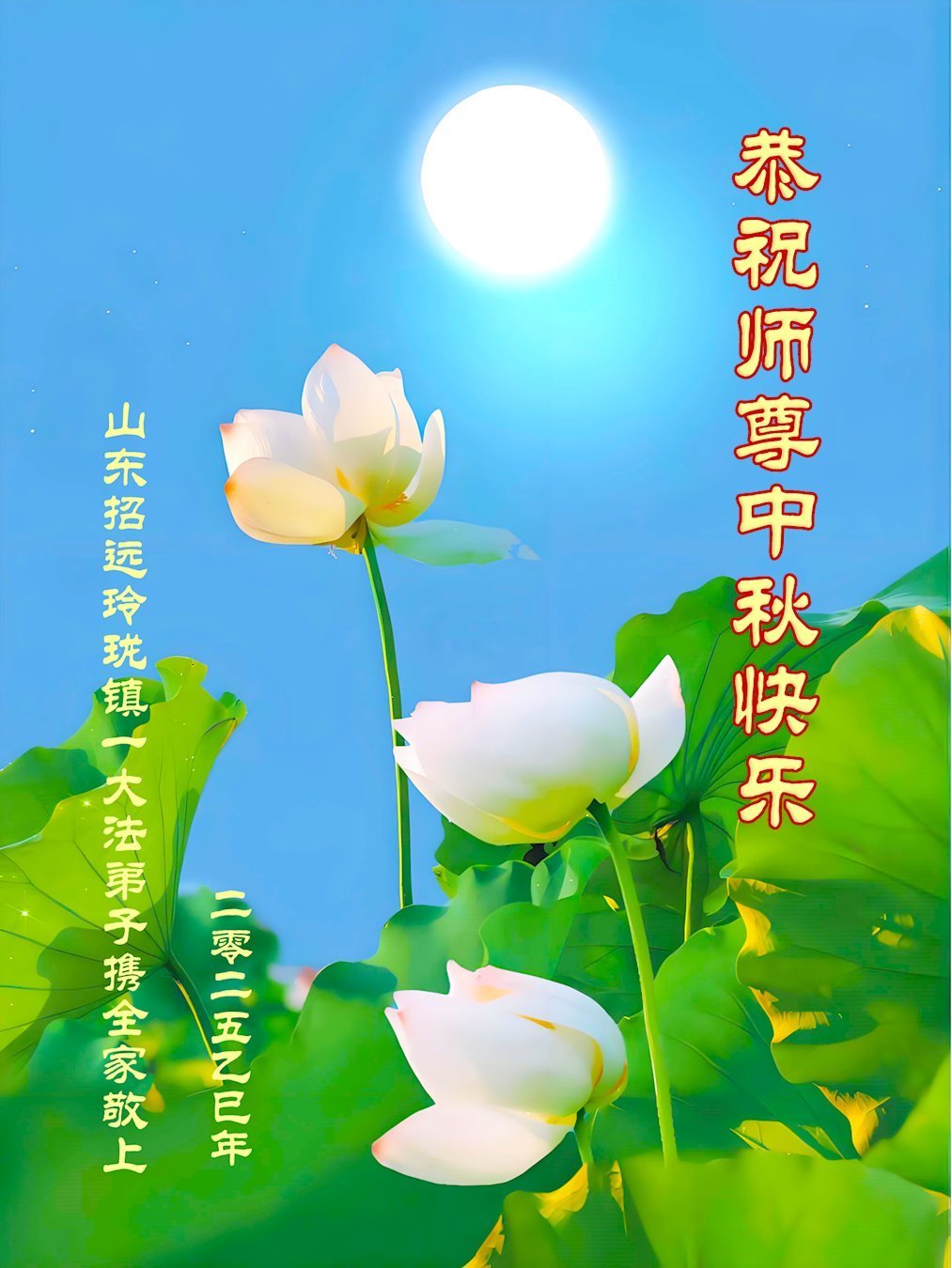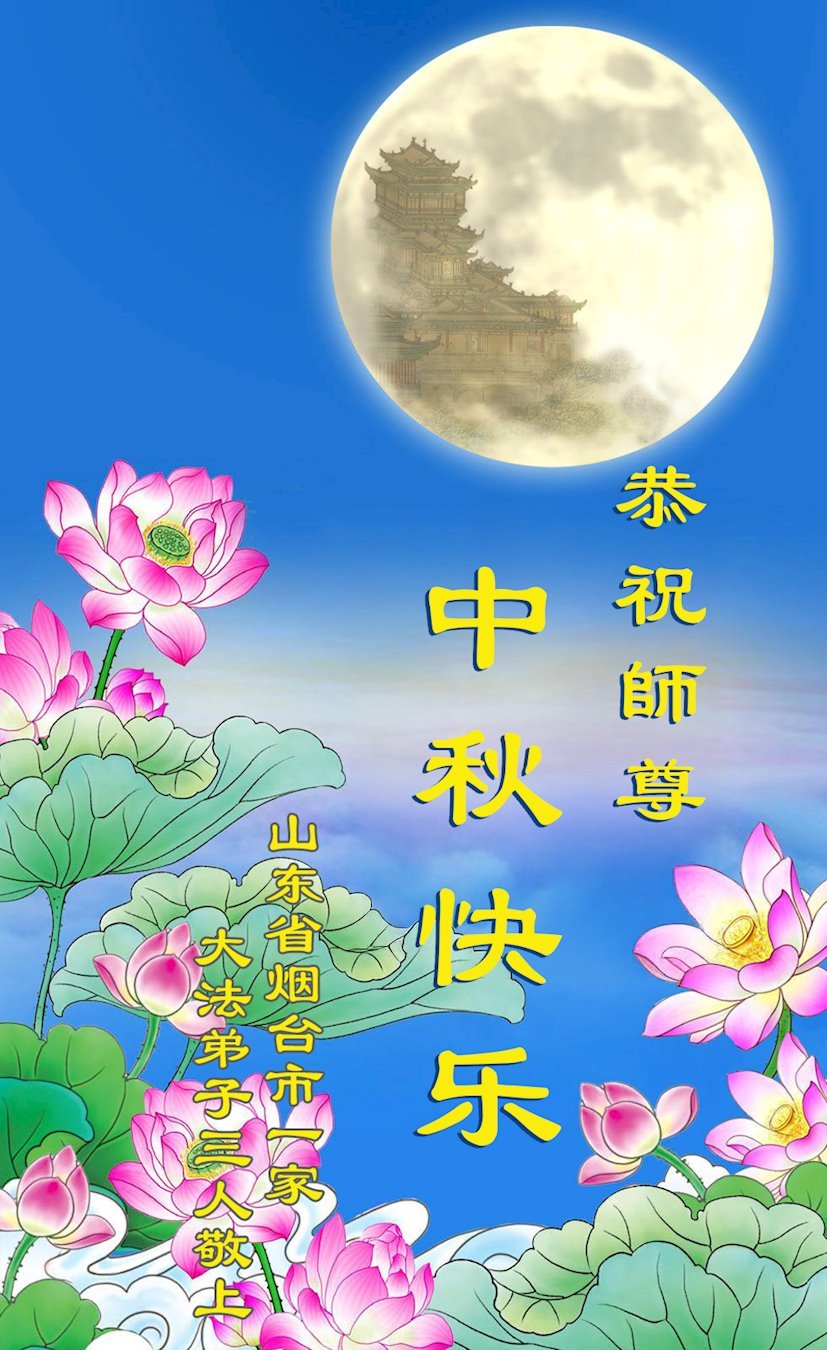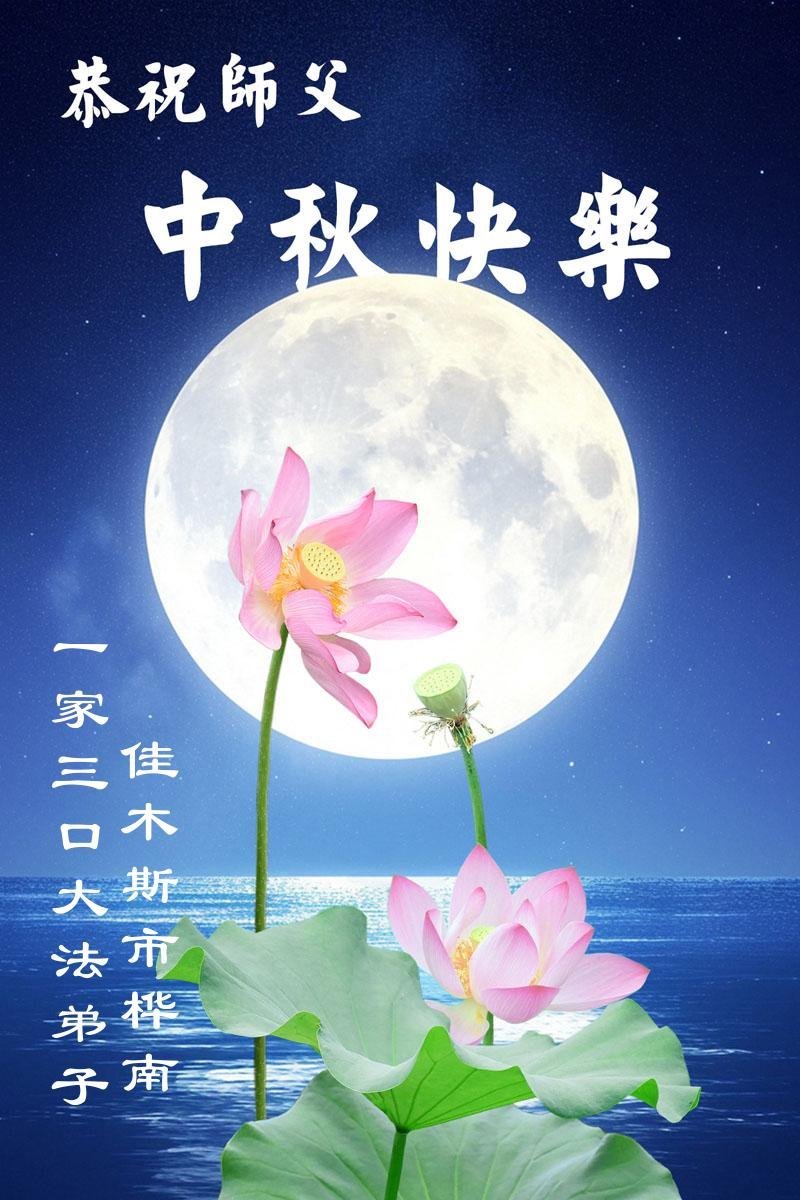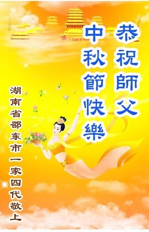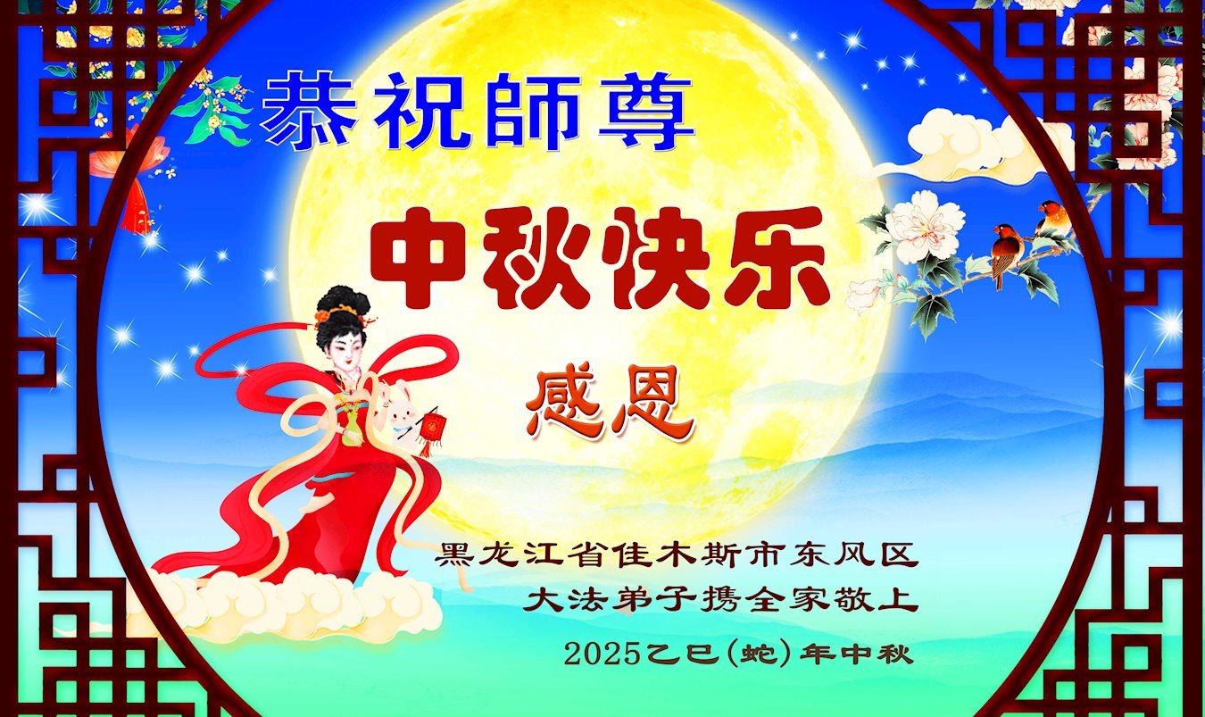 師父您好!我的家人們很早就明白了真相三退了,選擇了美好的未來。在中秋佳節來臨之際,全家衷心感恩大法師父,並祝願大法師父中秋節快樂!