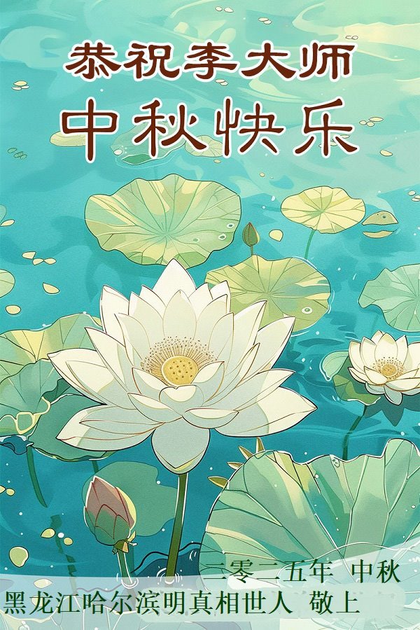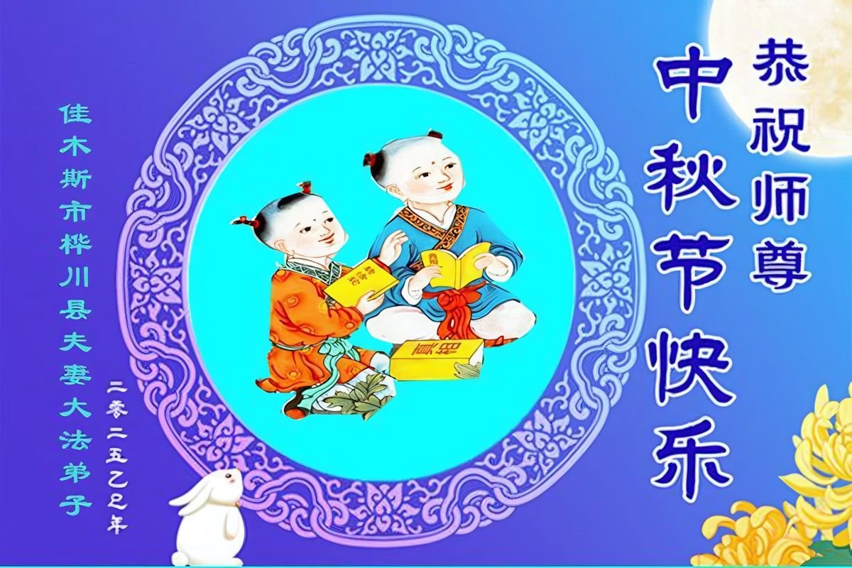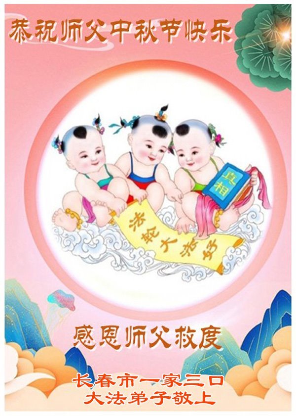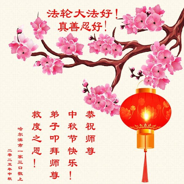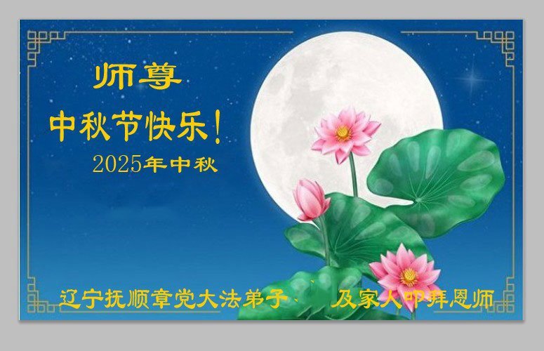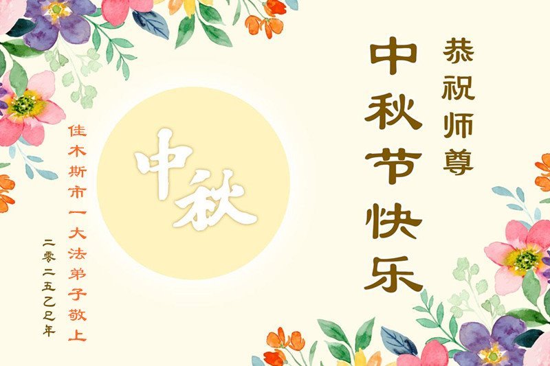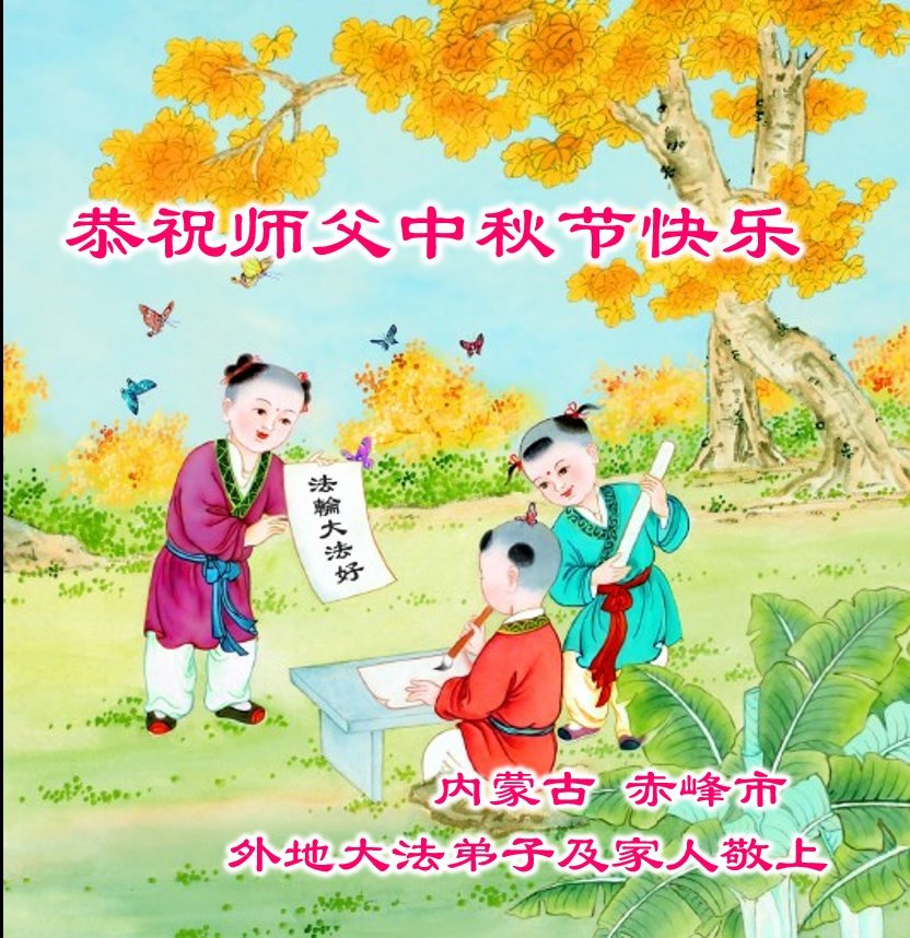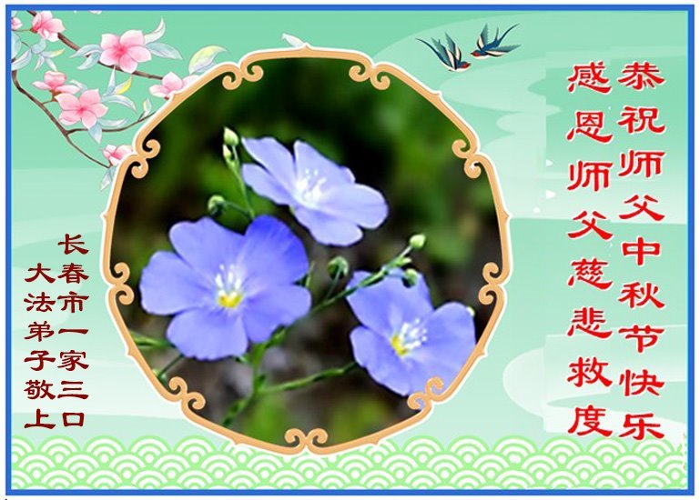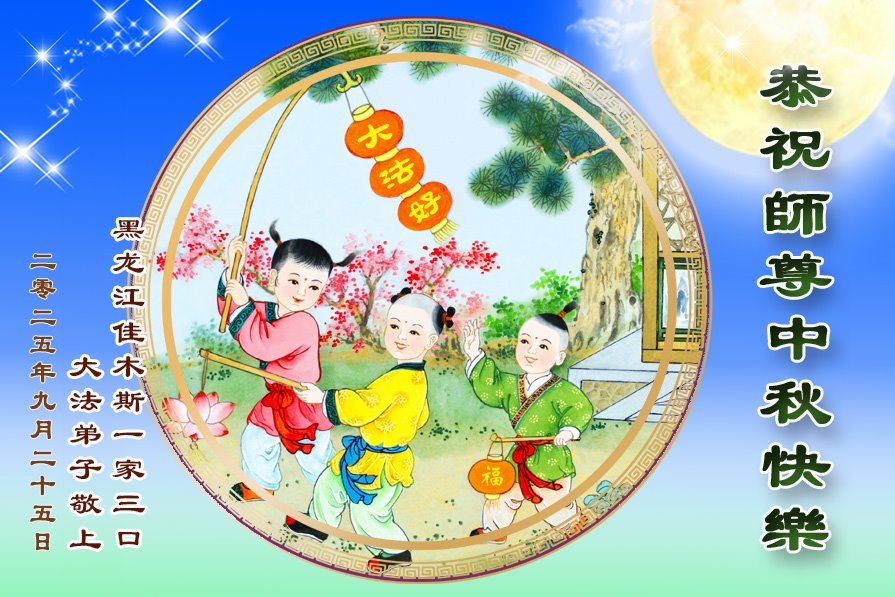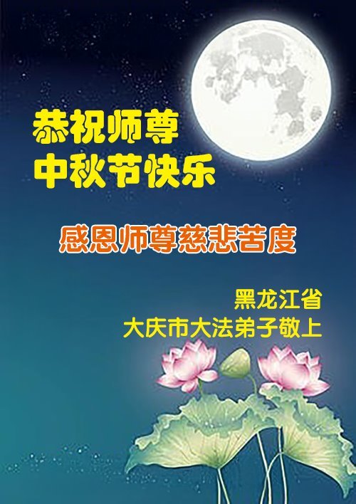 師父您好!我的家人們很早就明白了真相三退了,選擇了美好的未來。在中秋佳節來臨之際,全家衷心感恩大法師父,並祝願大法師父中秋節快樂!
