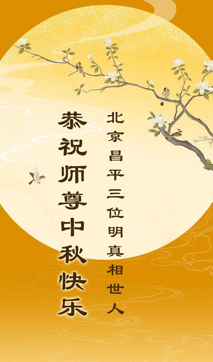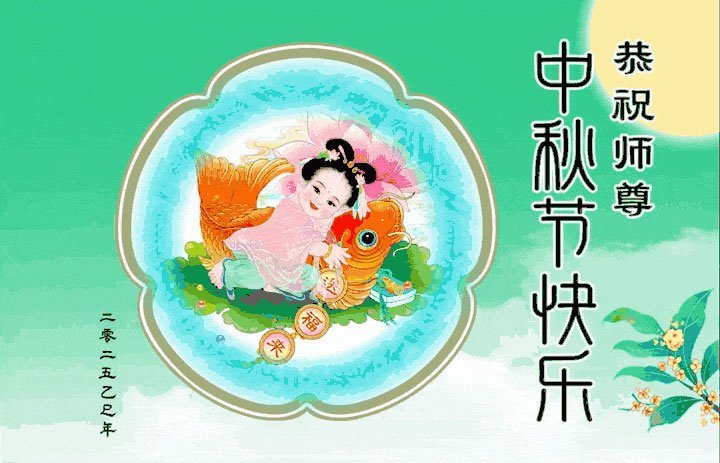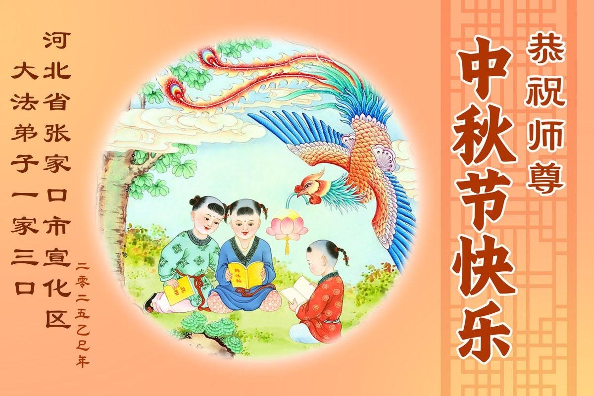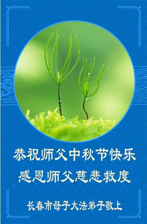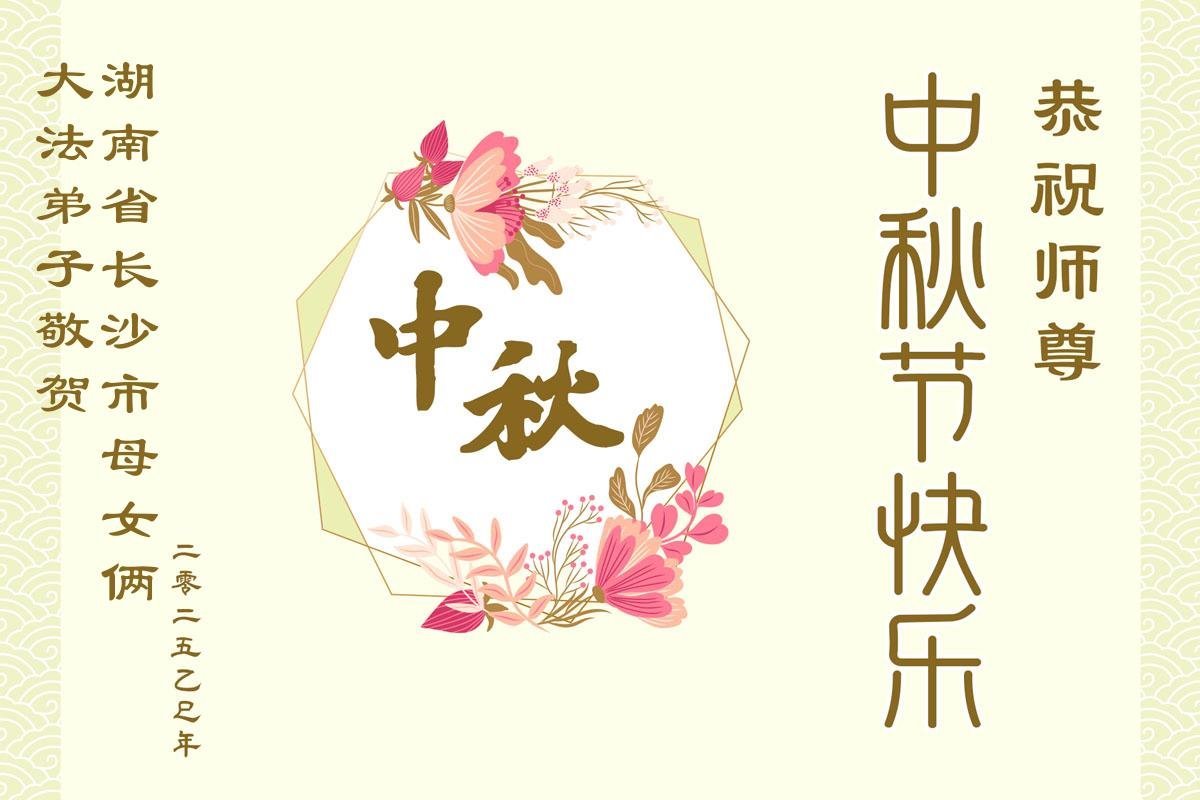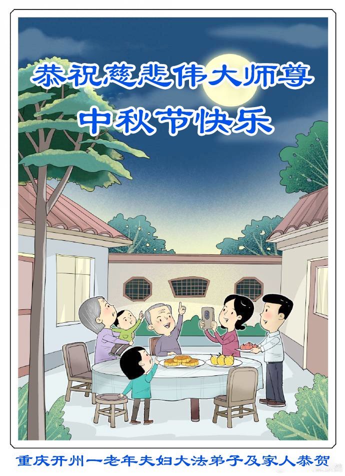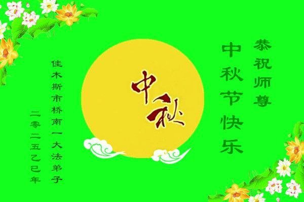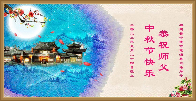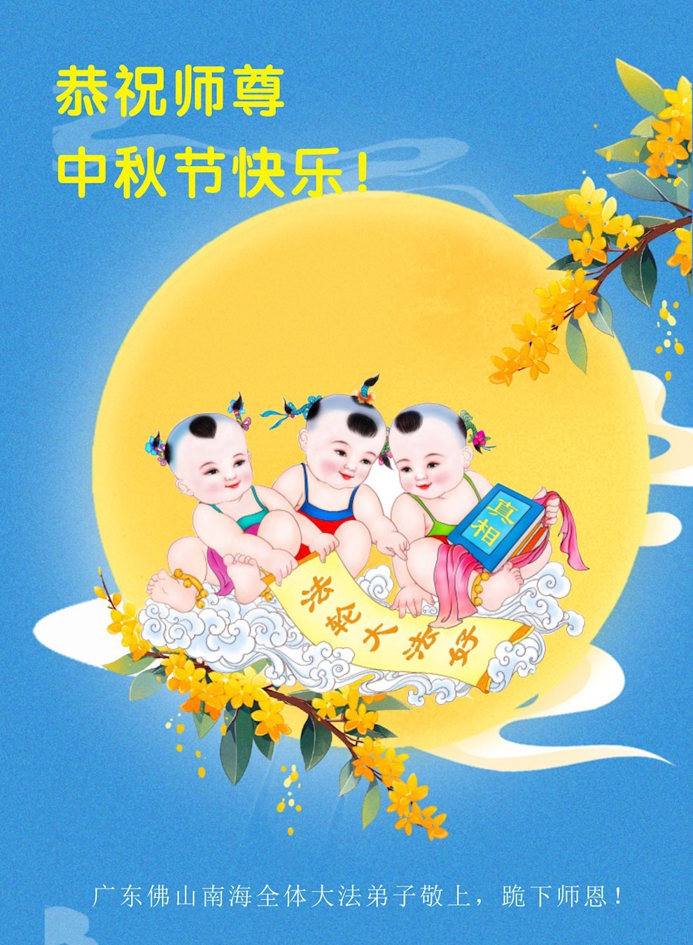 師父您好!我的家人們很早就明白了真相三退了,選擇了美好的未來。在中秋佳節來臨之際,全家衷心感恩大法師父,並祝願大法師父中秋節快樂!