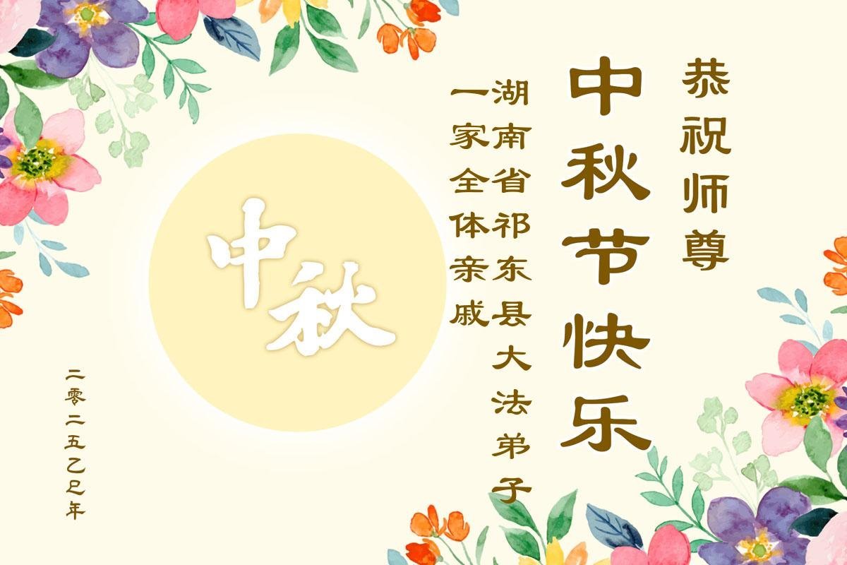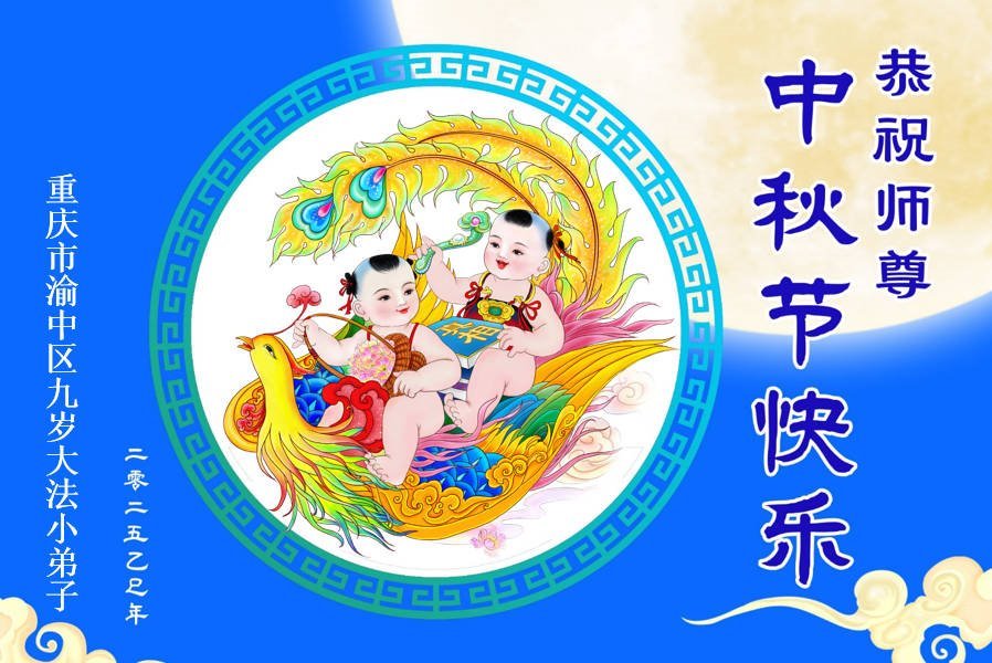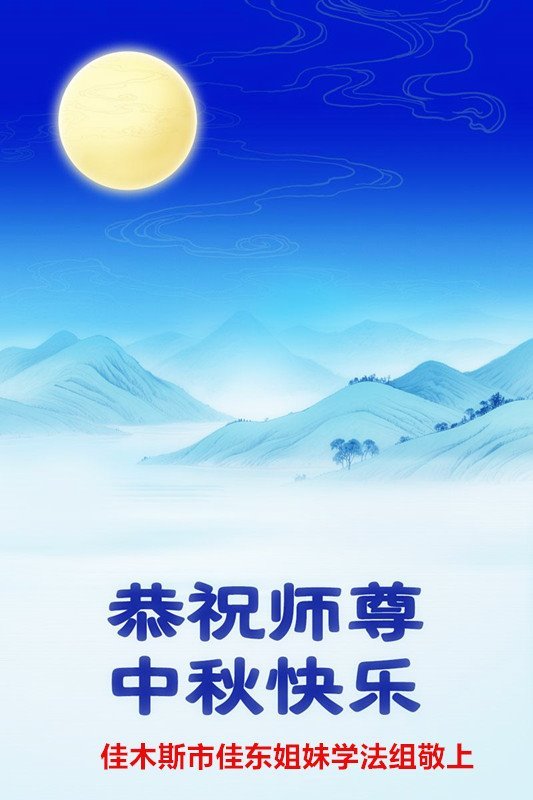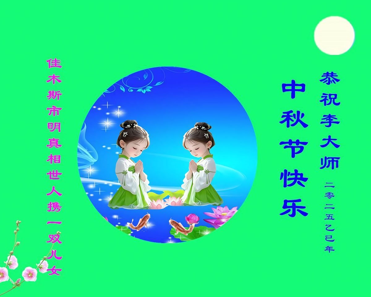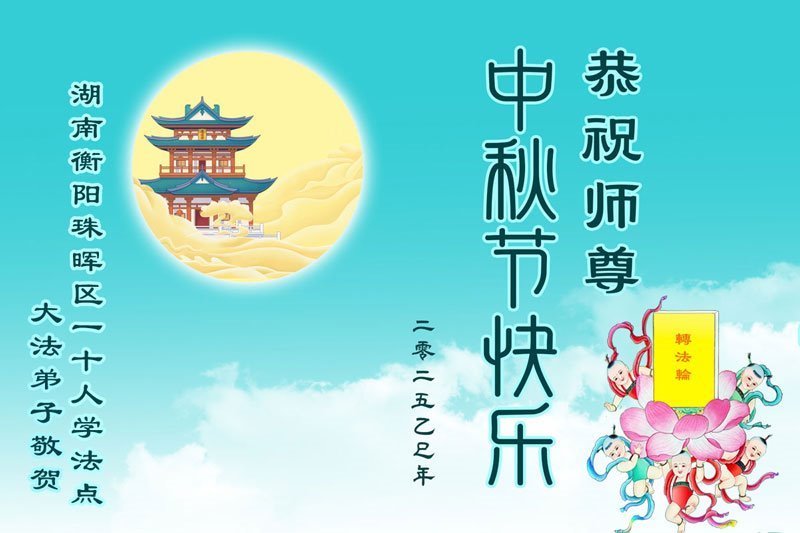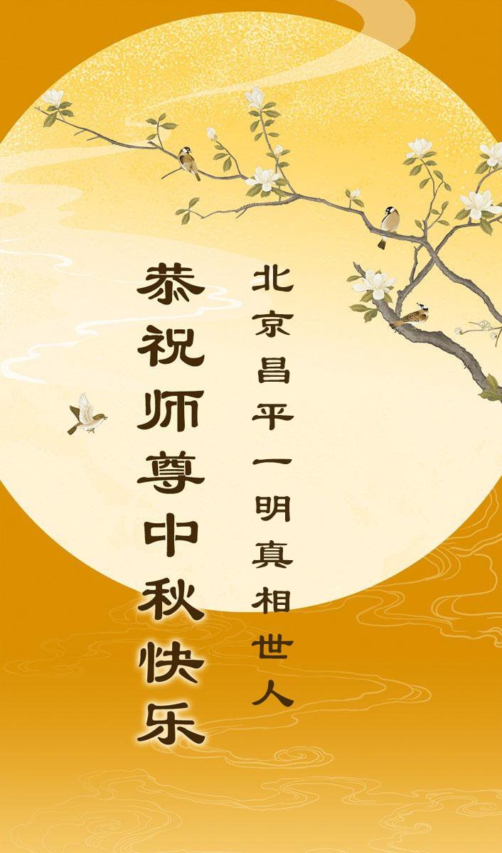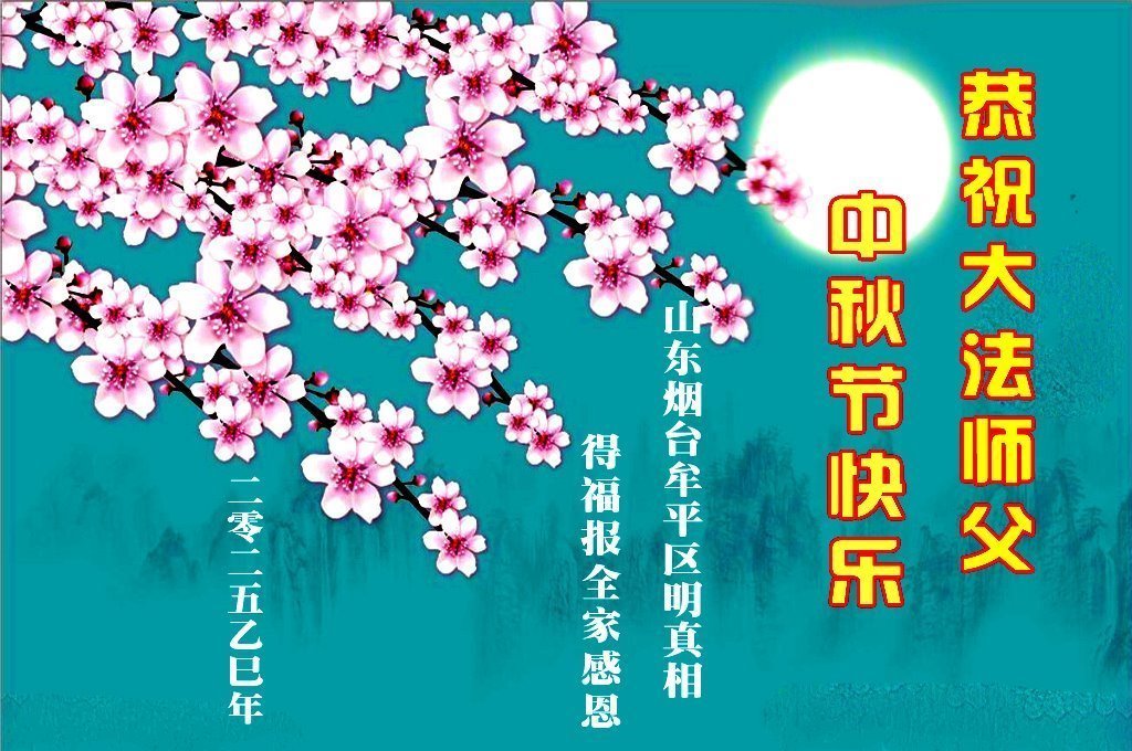 師父您好!我的家人們很早就明白了真相三退了,選擇了美好的未來。在中秋佳節來臨之際,全家衷心感恩大法師父,並祝願大法師父中秋節快樂!