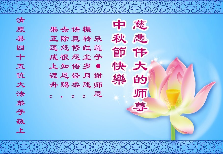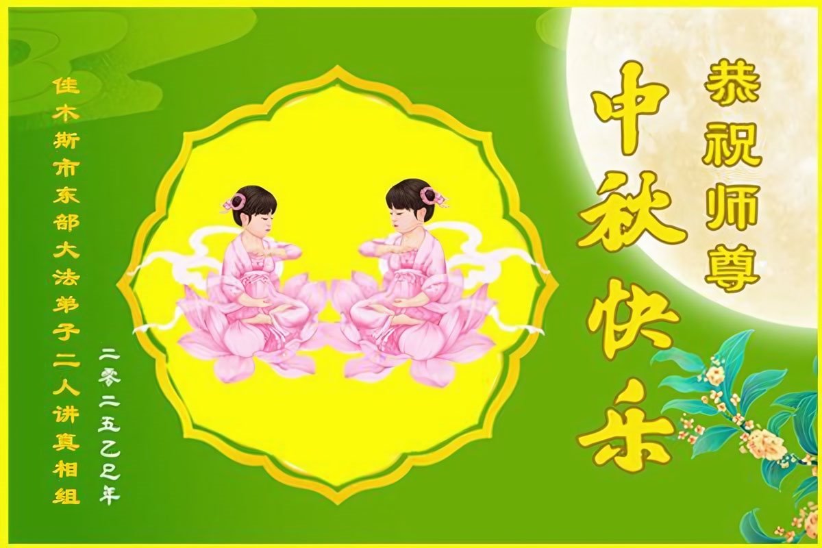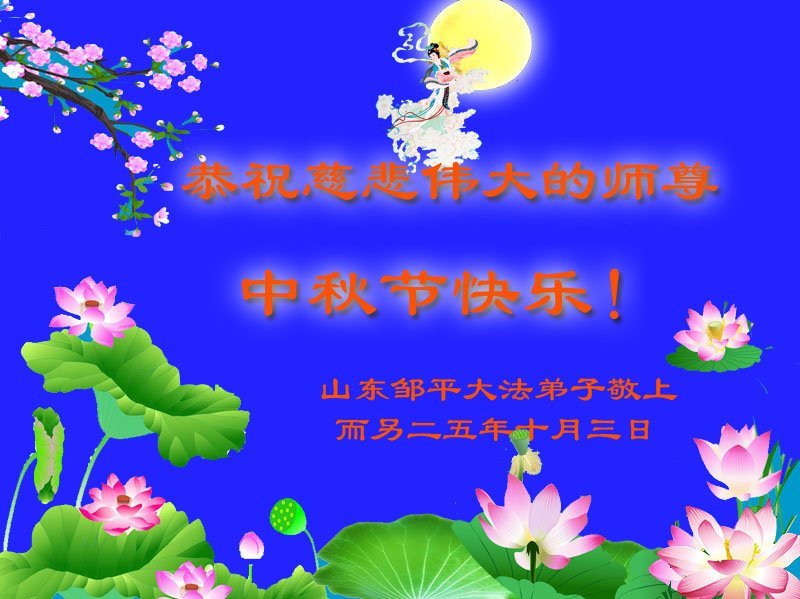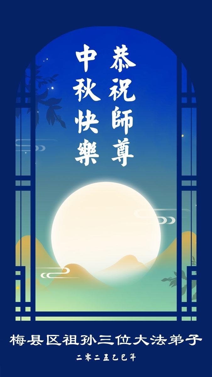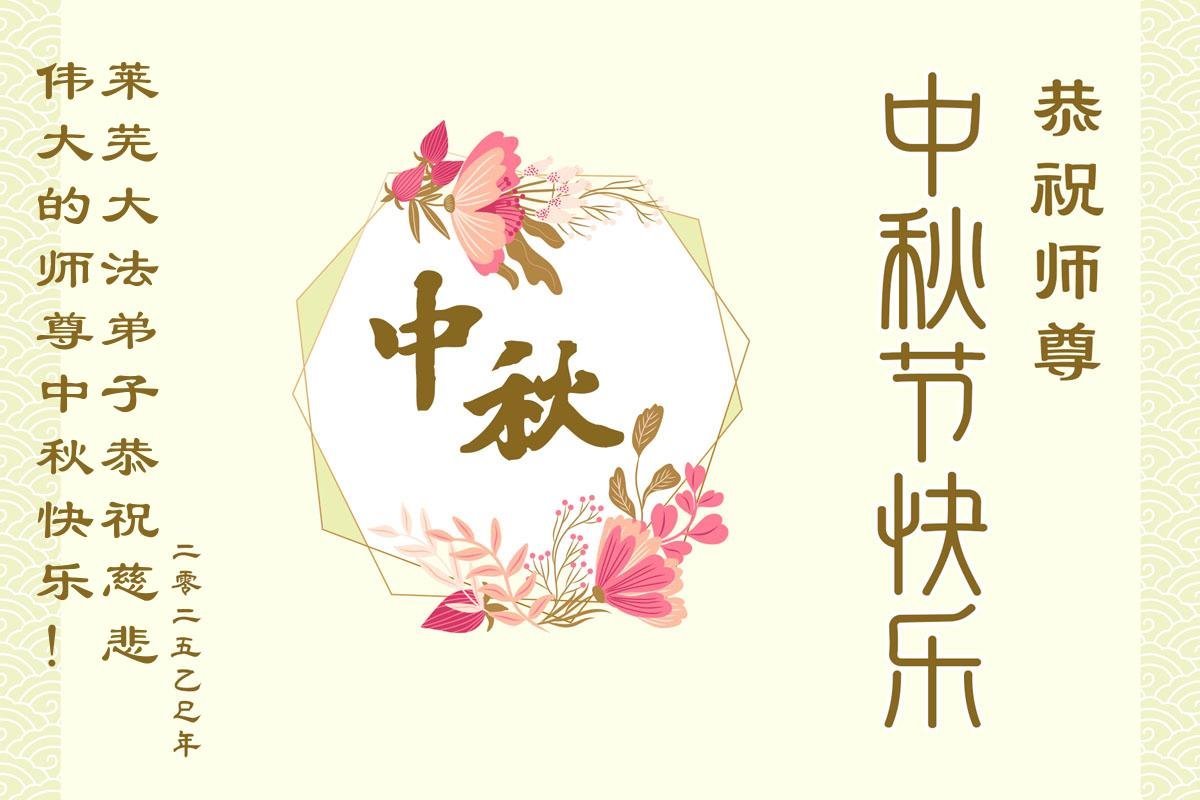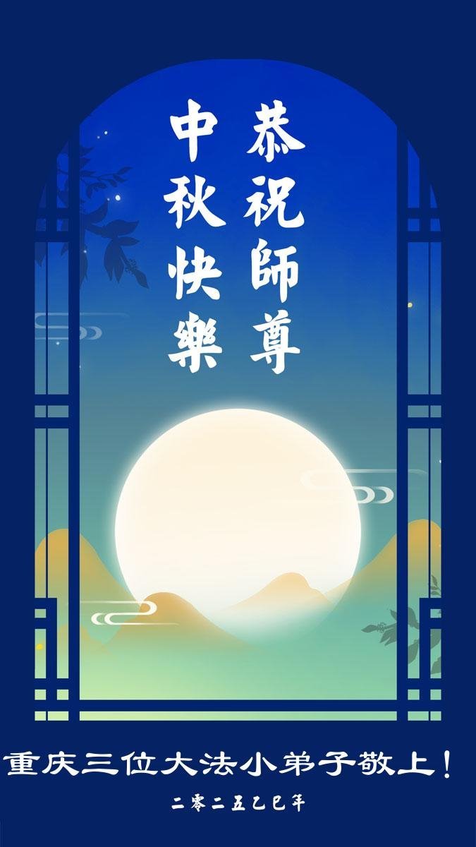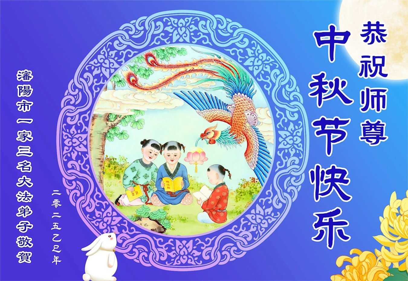 師父您好!我的家人們很早就明白了真相三退了,選擇了美好的未來。在中秋佳節來臨之際,全家衷心感恩大法師父,並祝願大法師父中秋節快樂!