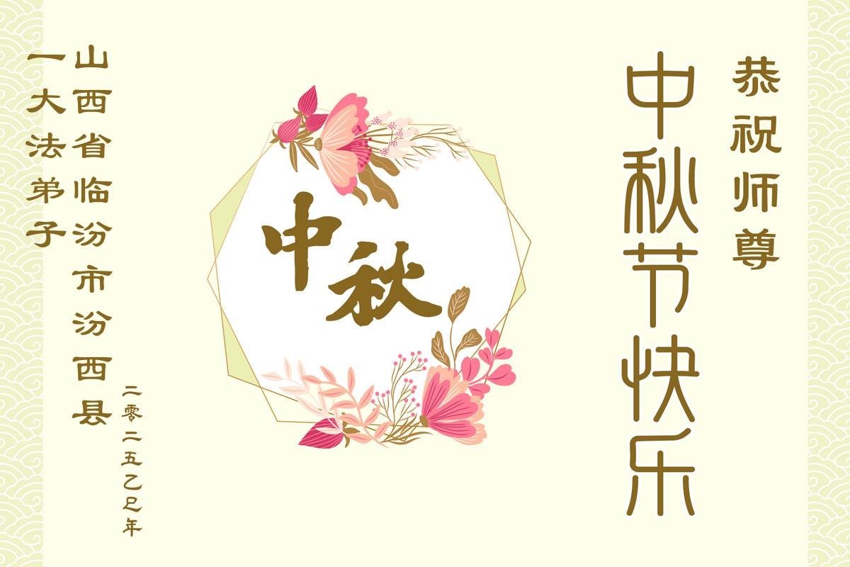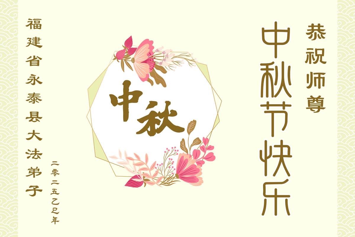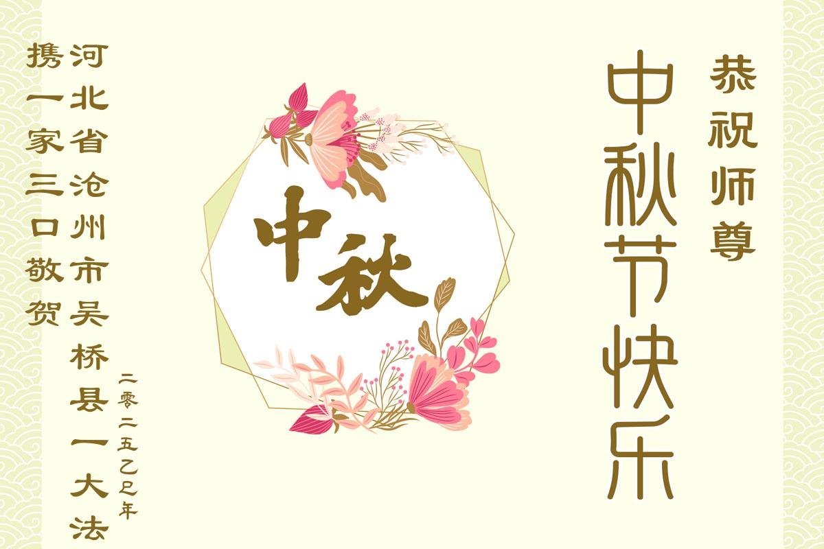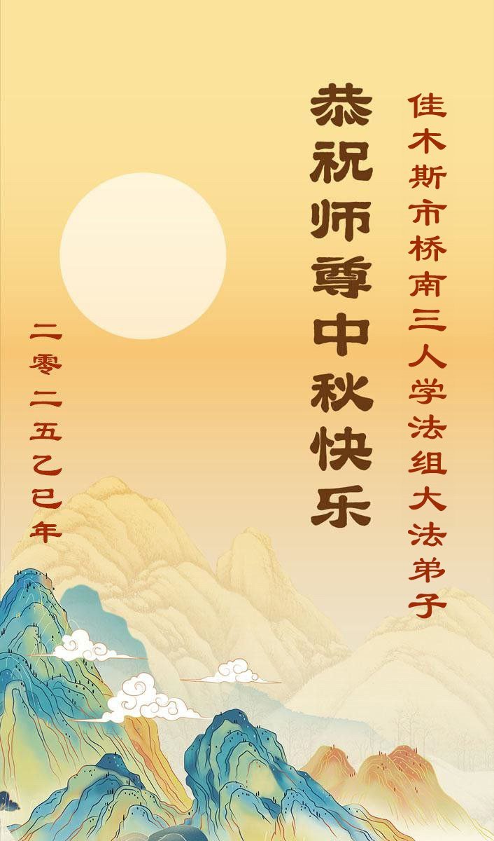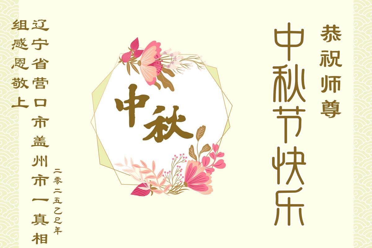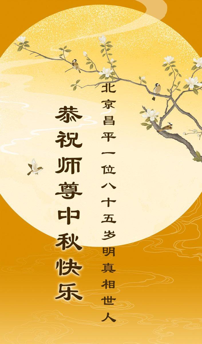 師父您好!我的家人們很早就明白了真相三退了,選擇了美好的未來。在中秋佳節來臨之際,全家衷心感恩大法師父,並祝願大法師父中秋節快樂!