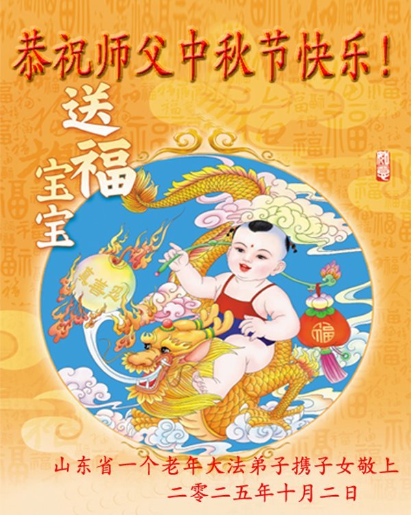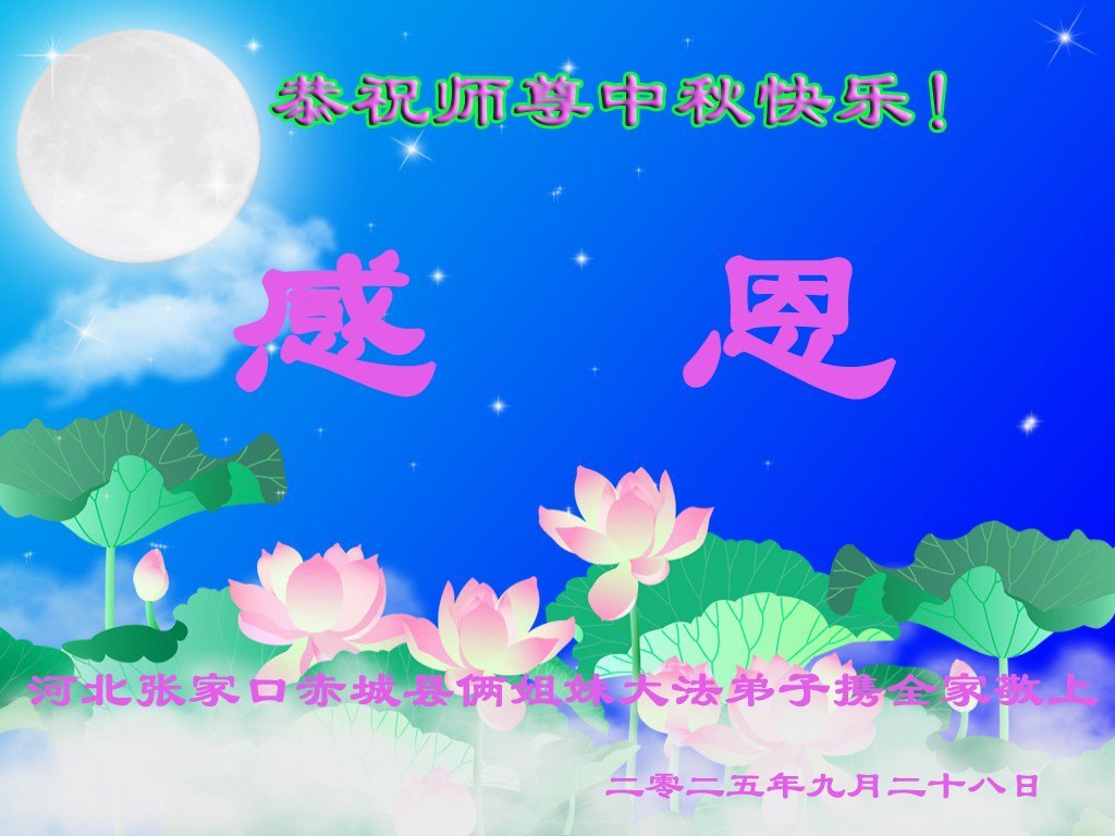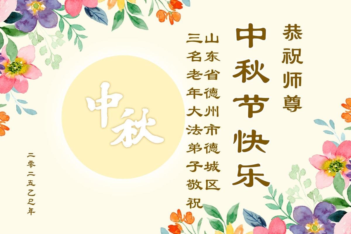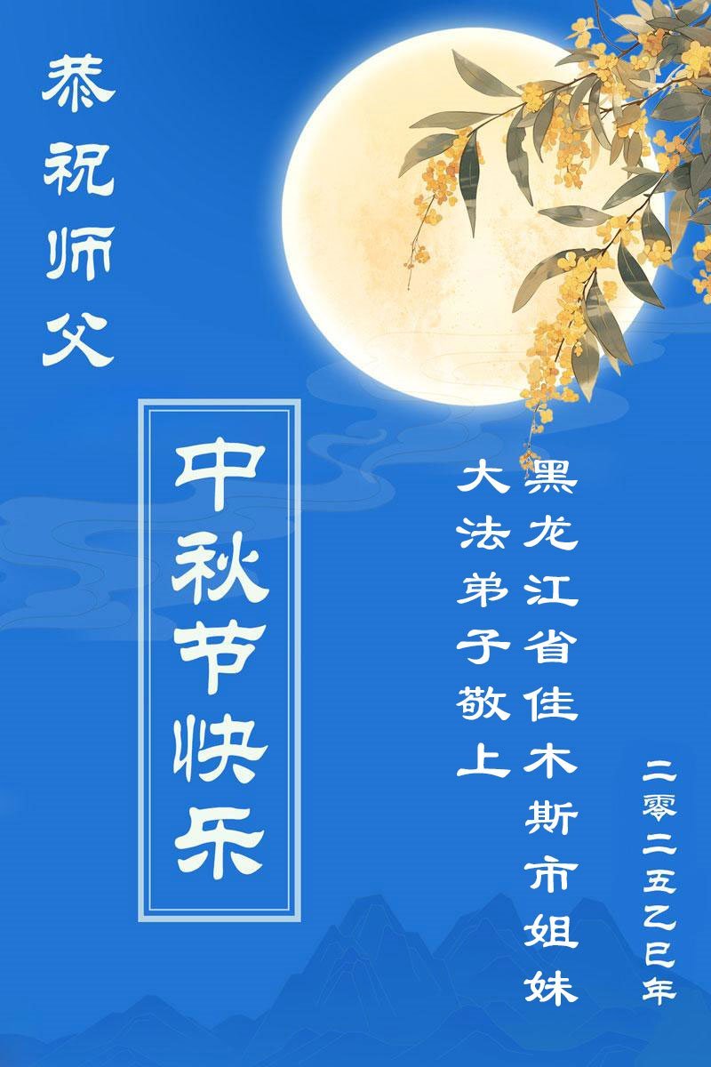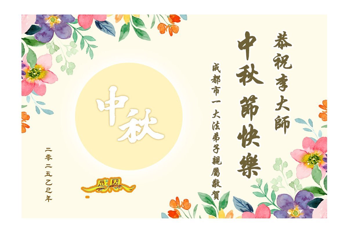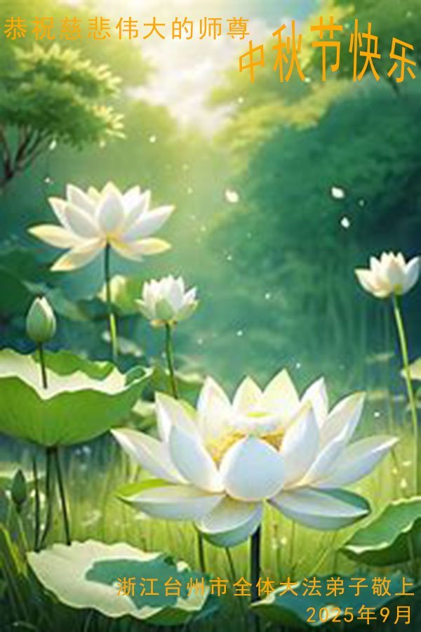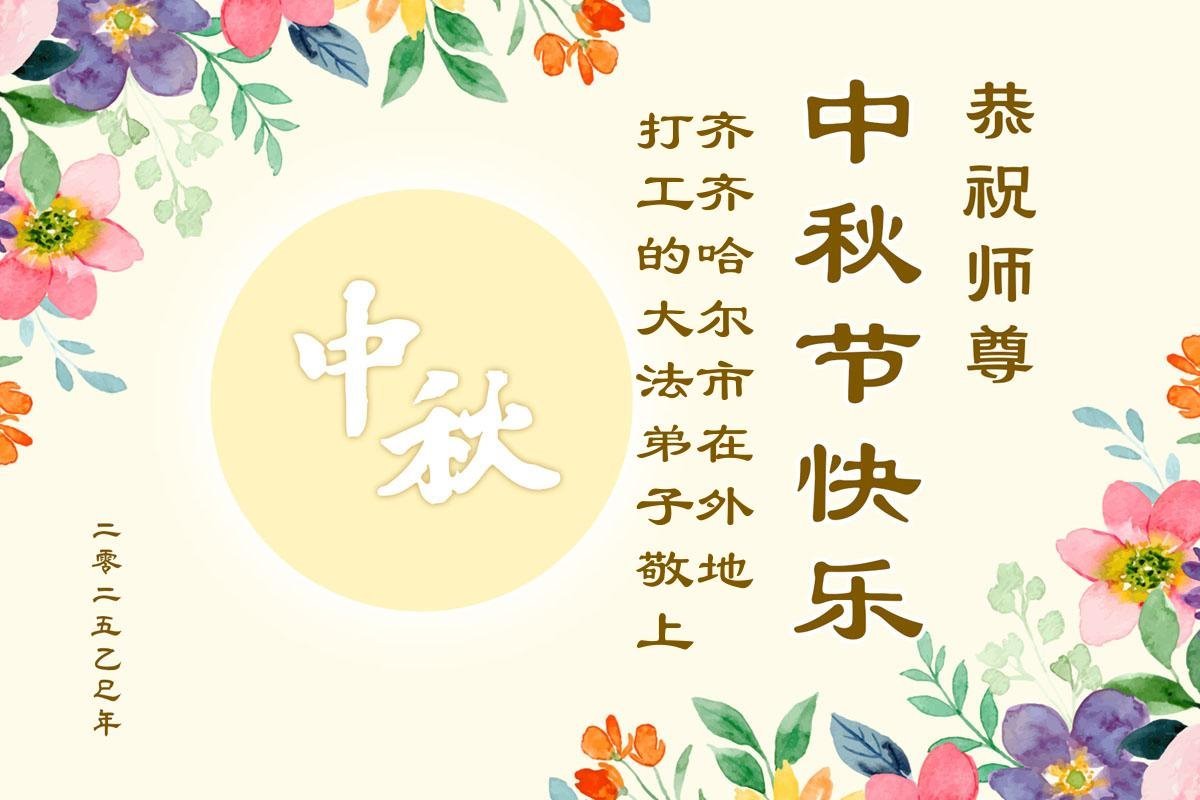 師父您好!我的家人們很早就明白了真相三退了,選擇了美好的未來。在中秋佳節來臨之際,全家衷心感恩大法師父,並祝願大法師父中秋節快樂!