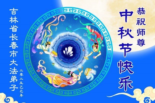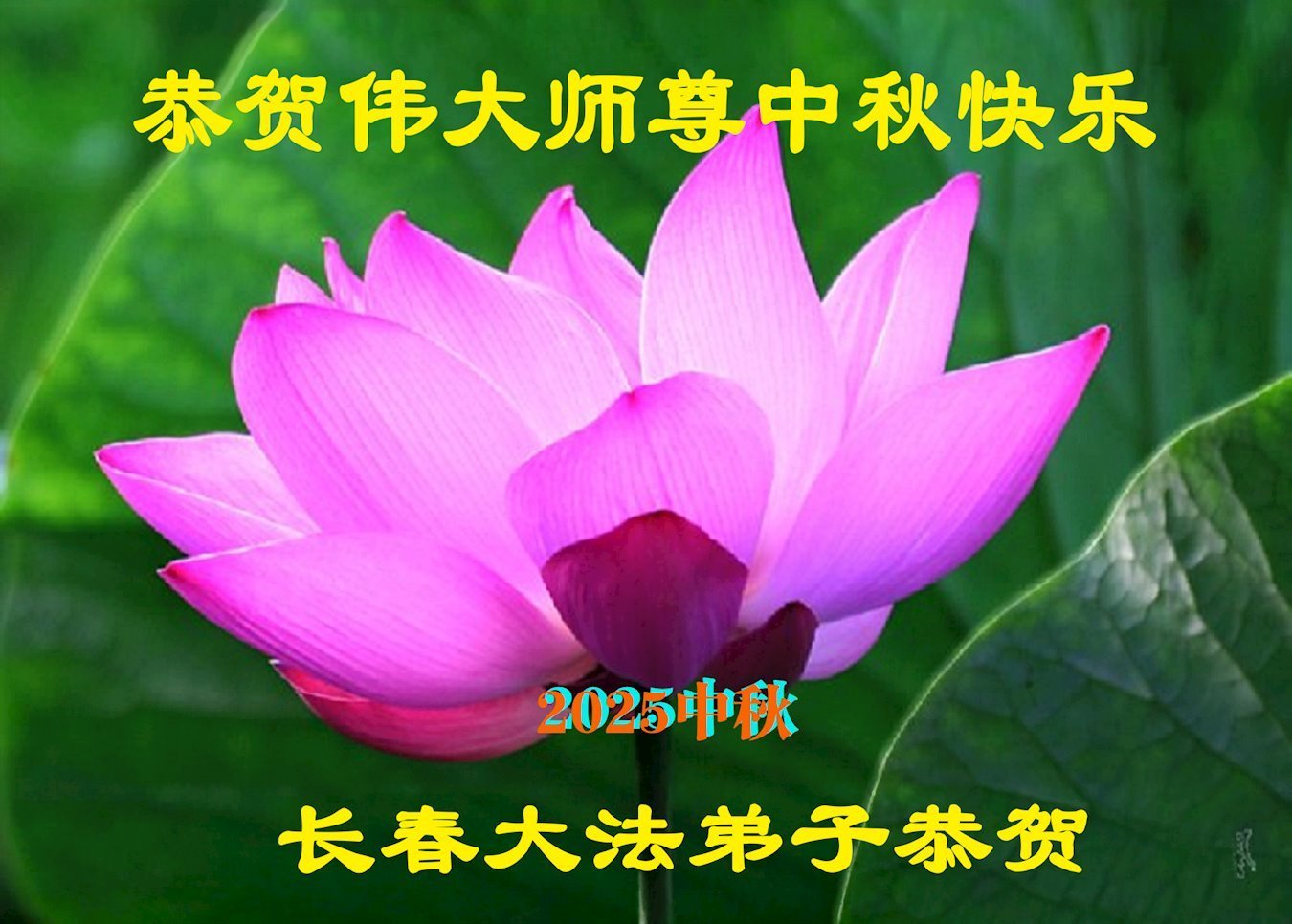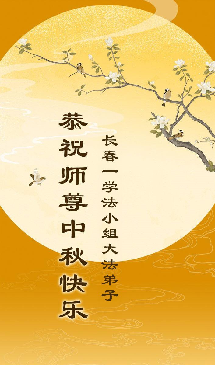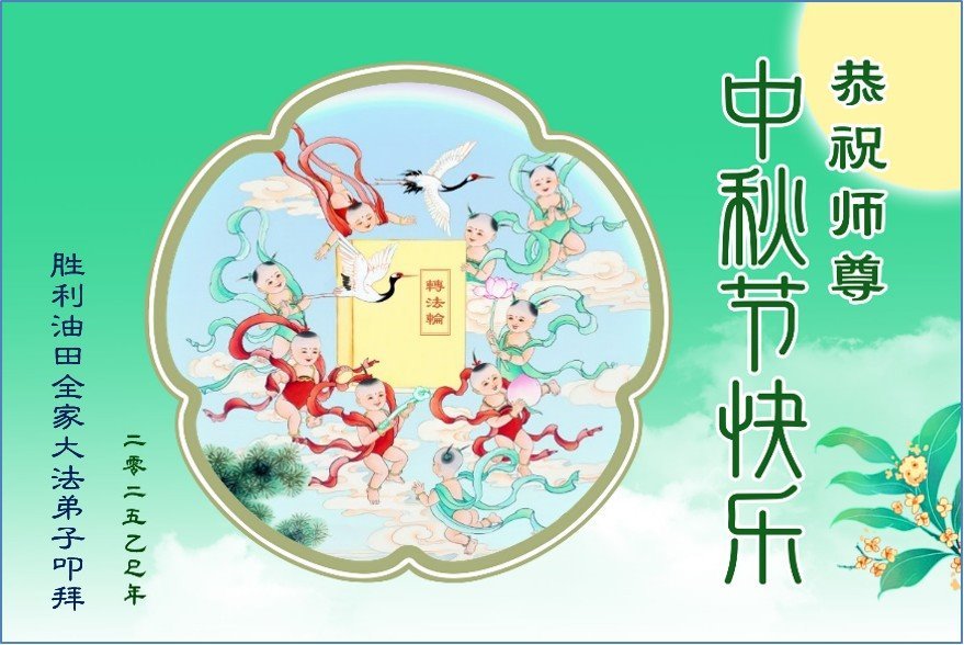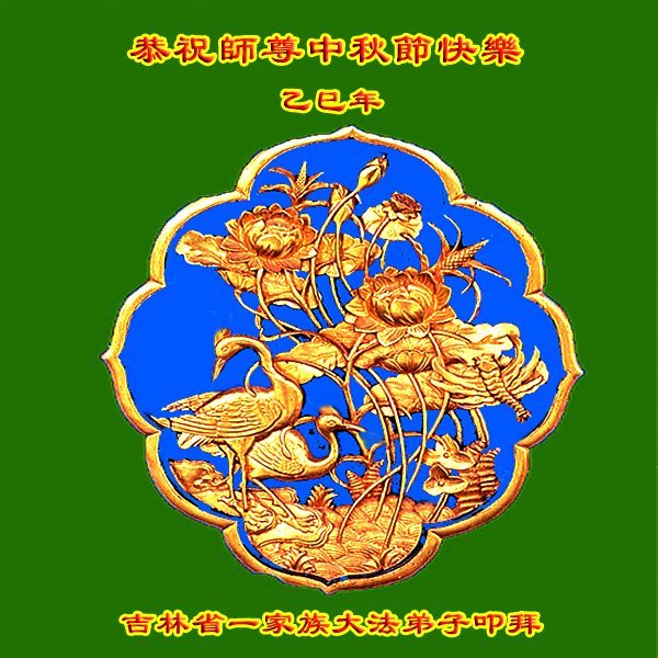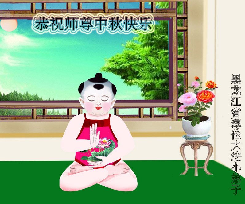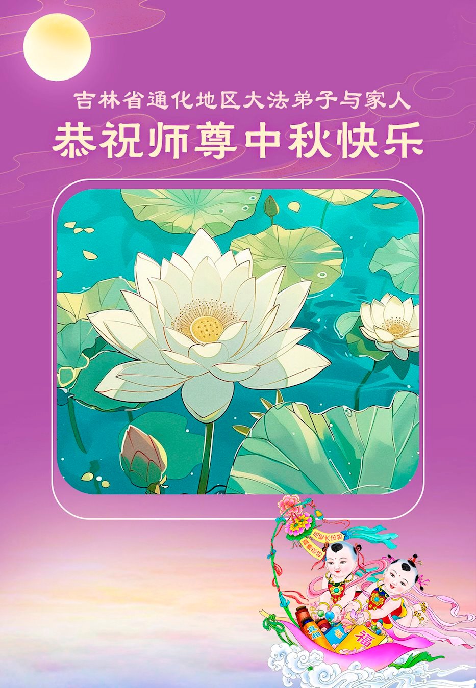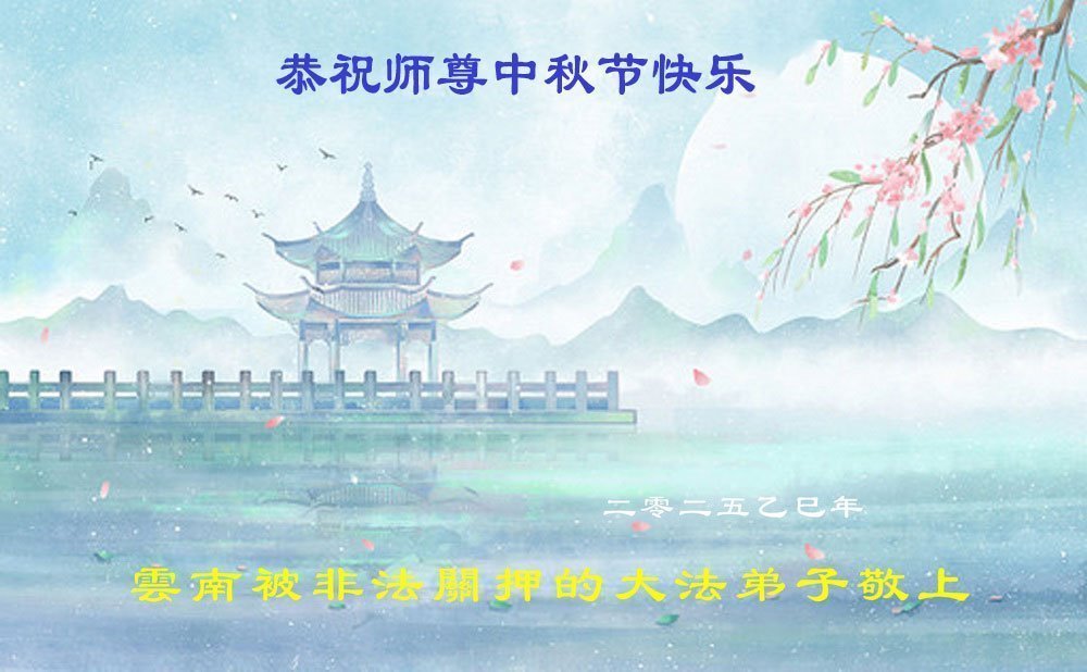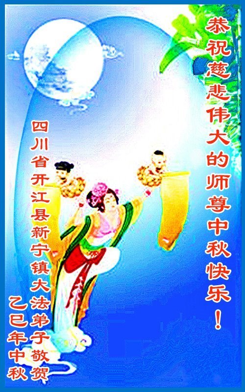 我們大法弟子攜家人和明真相的世人恭祝師尊中秋節快樂!師尊辛苦了!謝謝師尊的慈悲苦度!弟子一定破除舊勢力的安排,消除間隔,形成強大的整體,反迫害,救度眾生。弟子們要多學法,學好法,發好正念,向內找,兌現自己的誓約,跟師父回家。