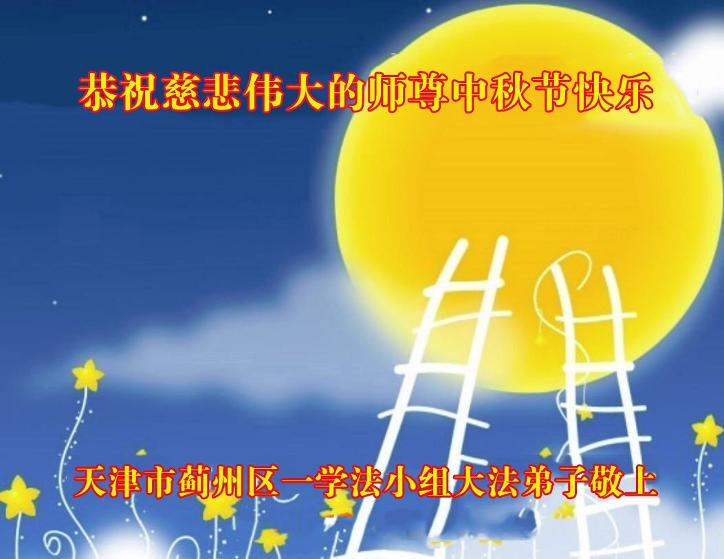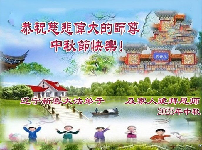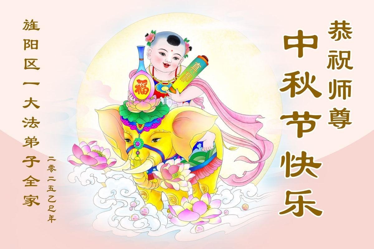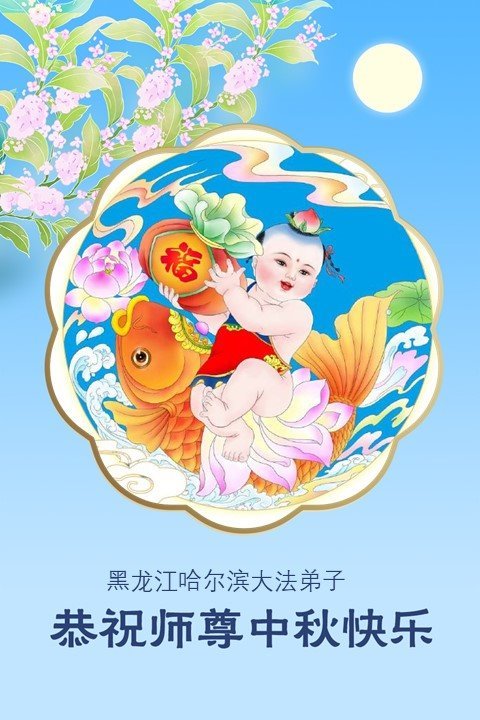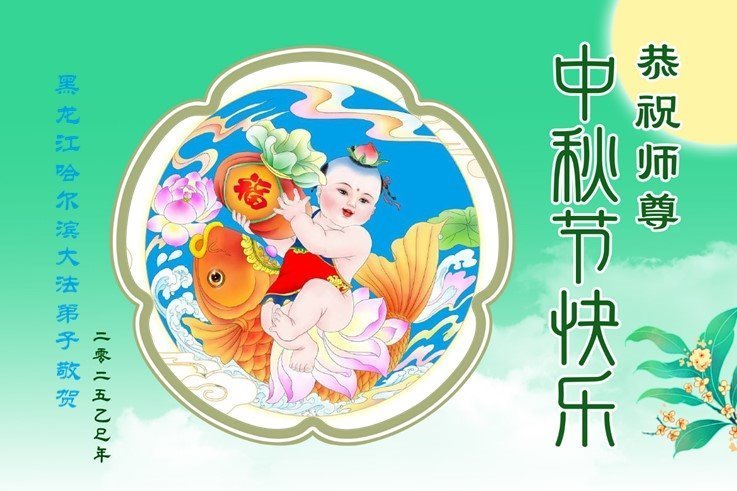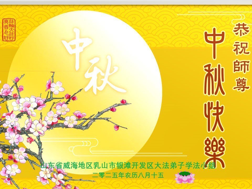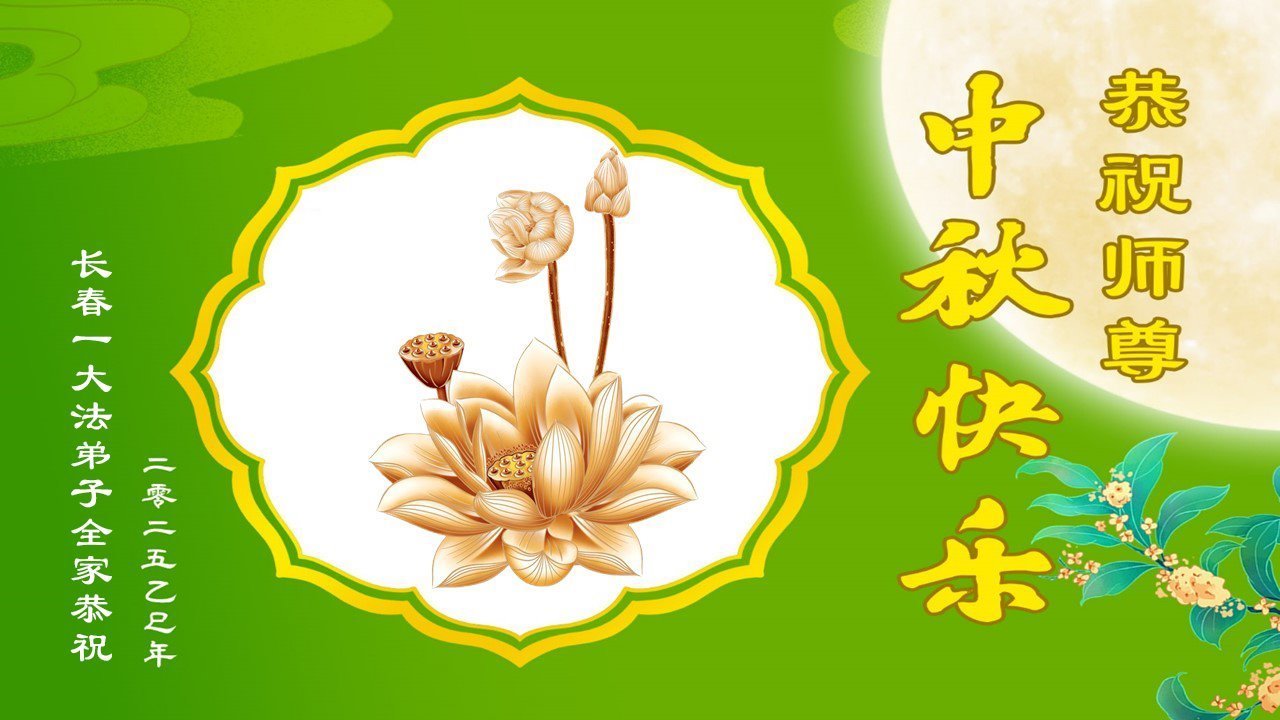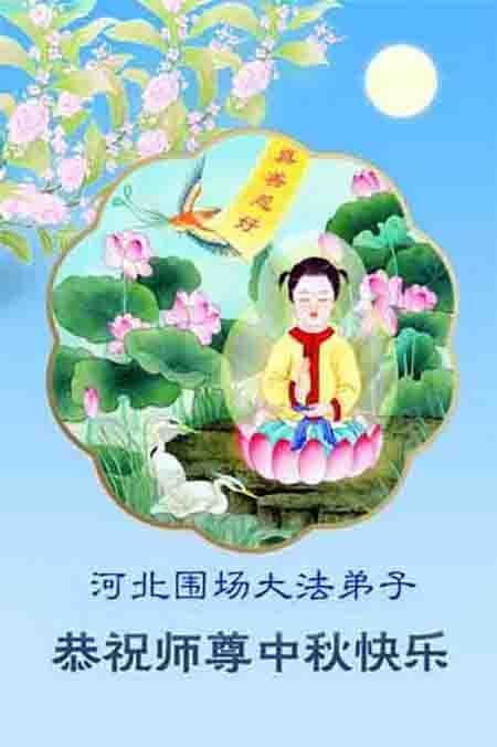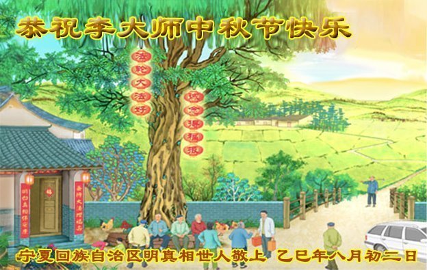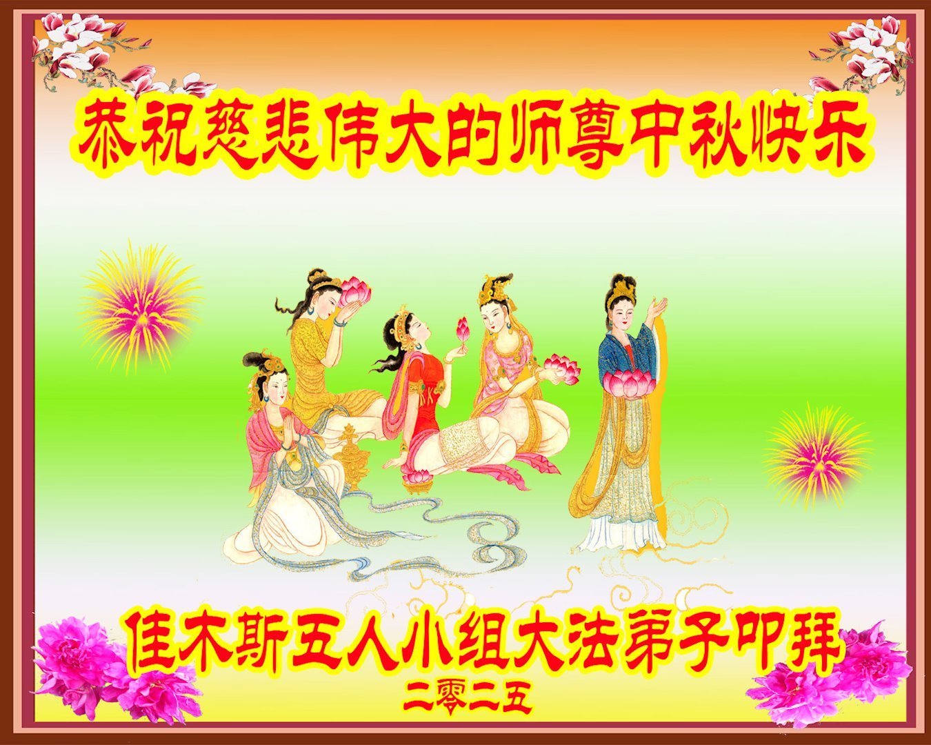 我們大法弟子攜家人和明真相的世人恭祝師尊中秋節快樂!師尊辛苦了!謝謝師尊的慈悲苦度!弟子一定破除舊勢力的安排,消除間隔,形成強大的整體,反迫害,救度眾生。弟子們要多學法,學好法,發好正念,向內找,兌現自己的誓約,跟師父回家。