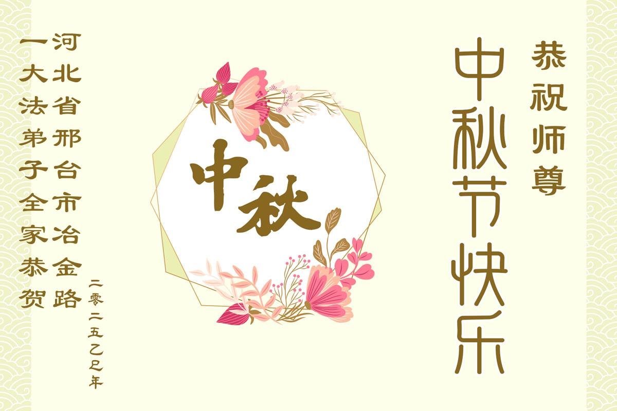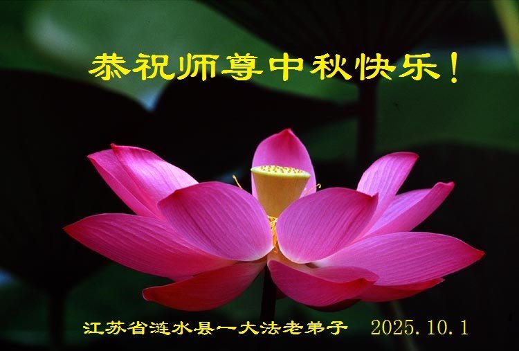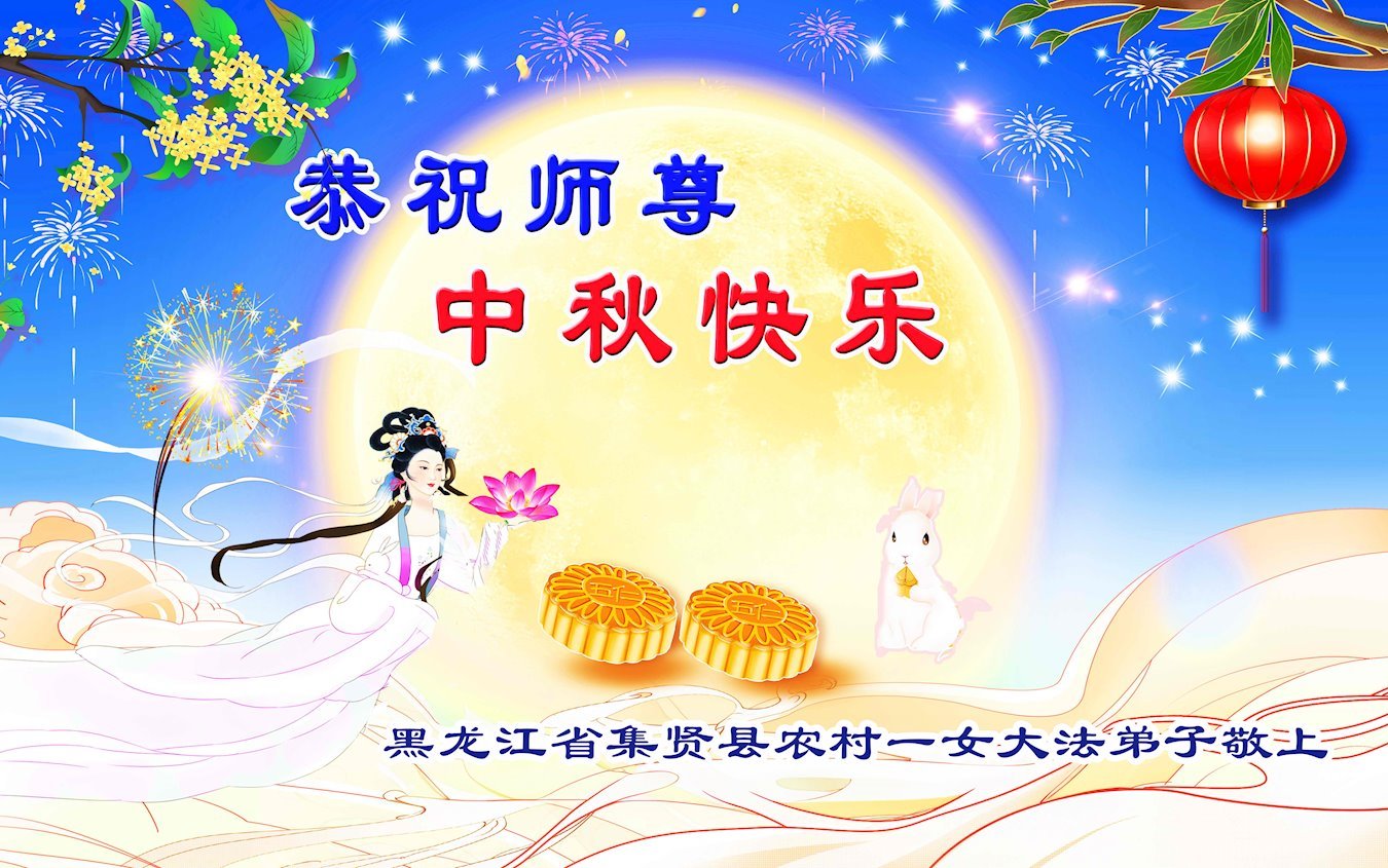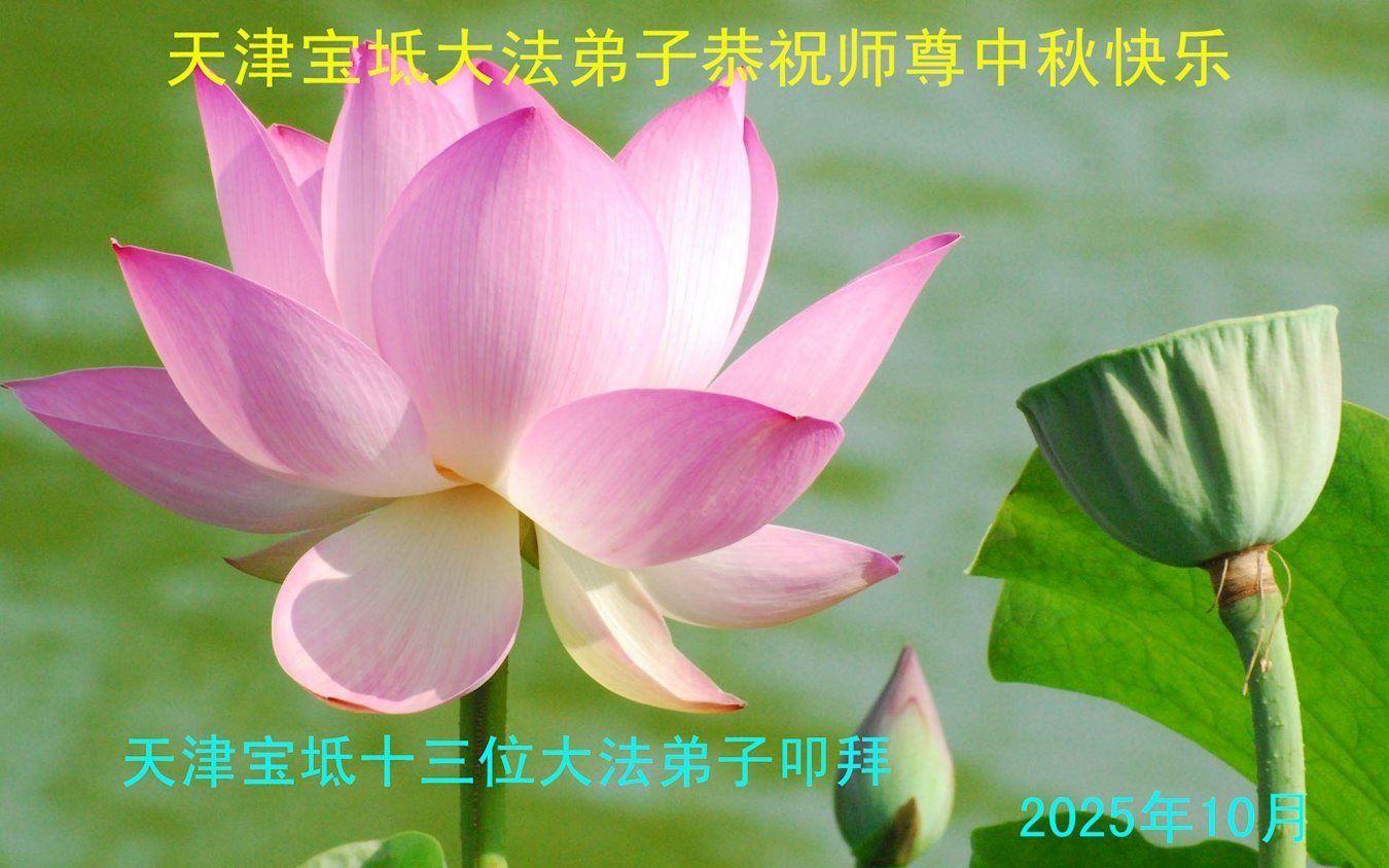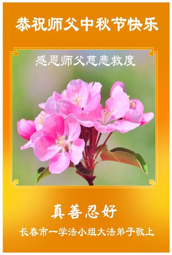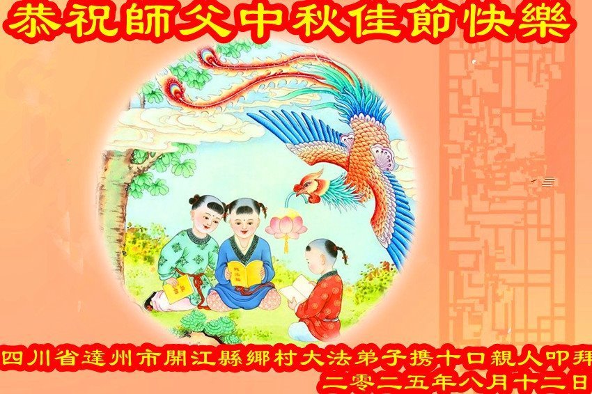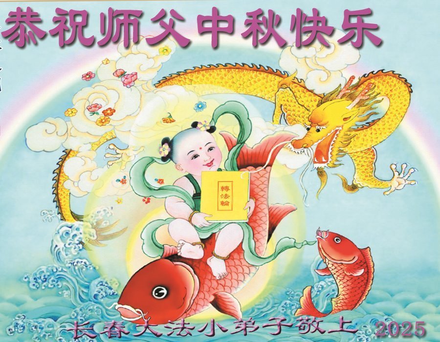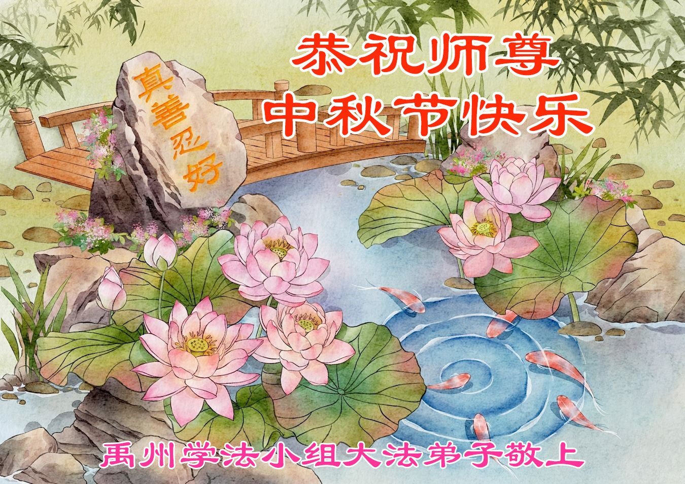 我們大法弟子攜家人和明真相的世人恭祝師尊中秋節快樂!師尊辛苦了!謝謝師尊的慈悲苦度!弟子一定破除舊勢力的安排,消除間隔,形成強大的整體,反迫害,救度眾生。弟子們要多學法,學好法,發好正念,向內找,兌現自己的誓約,跟師父回家。