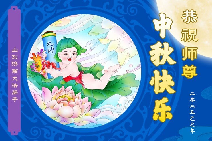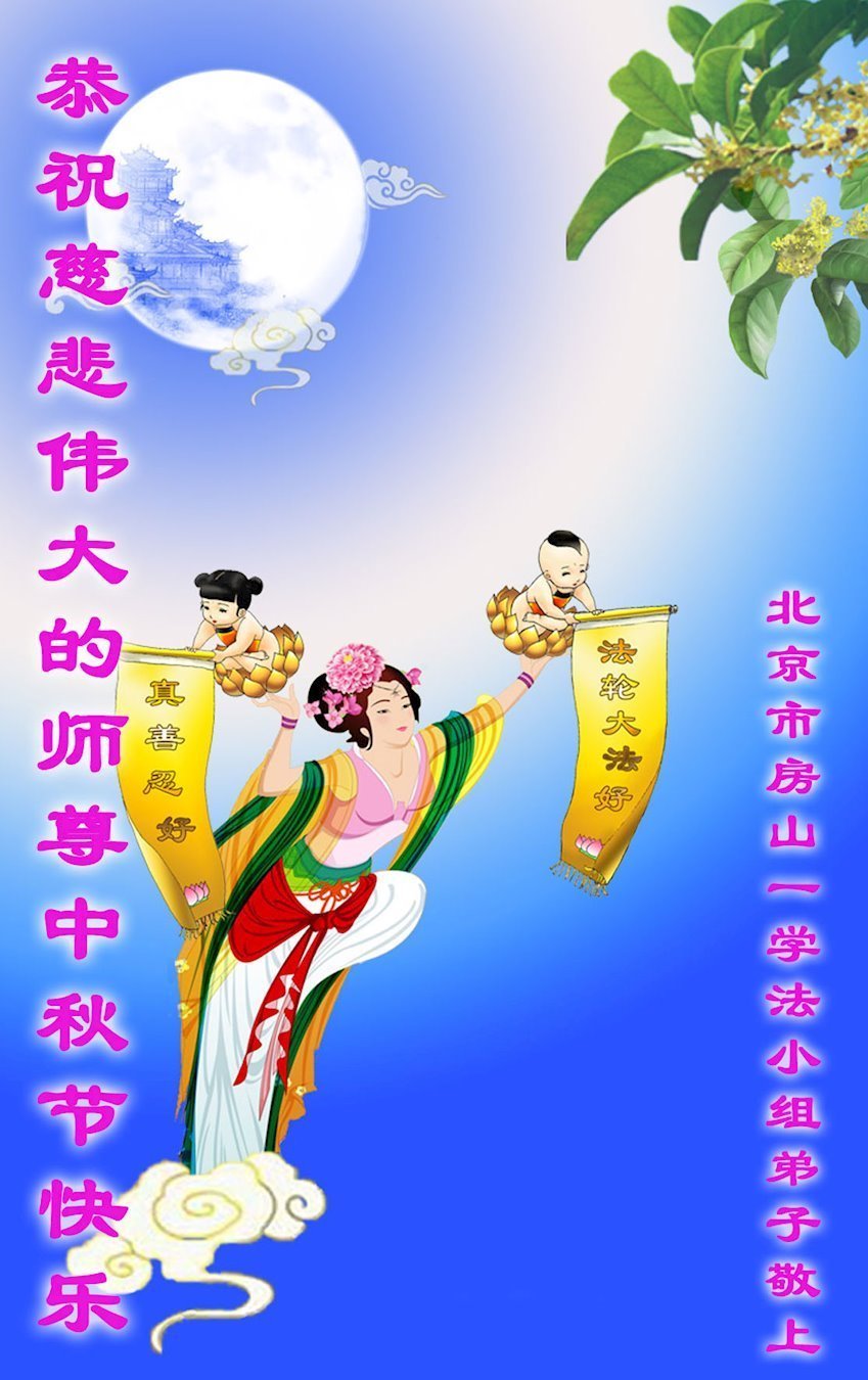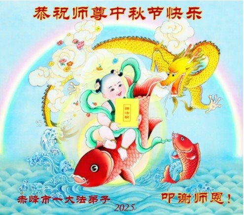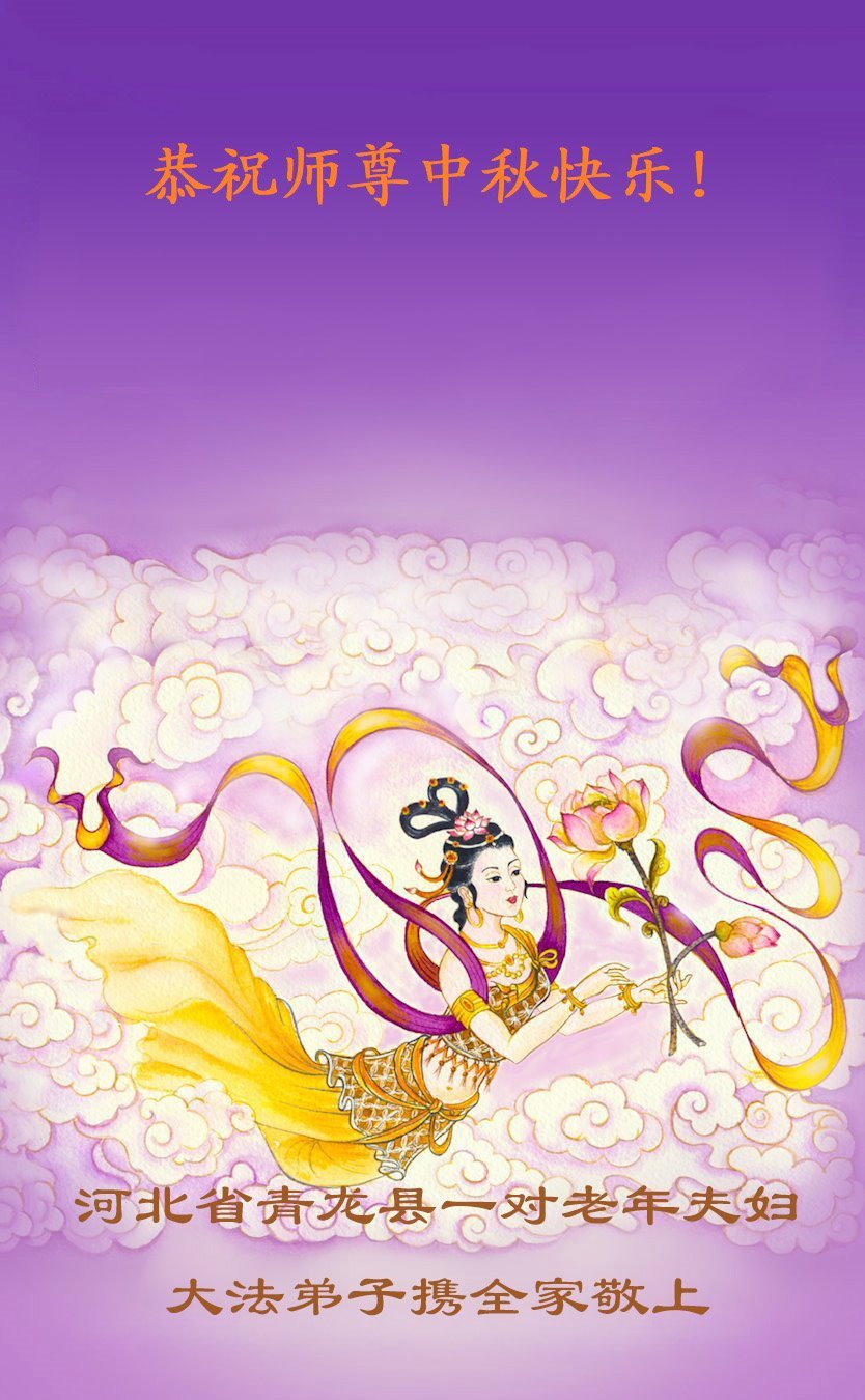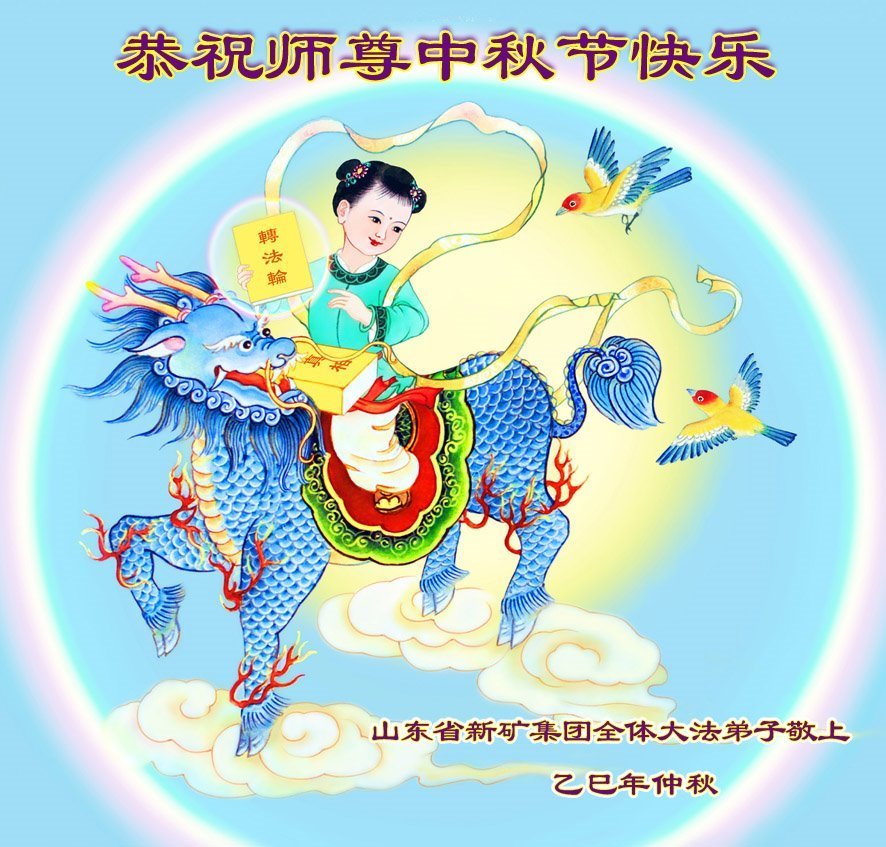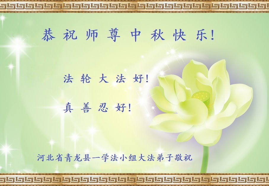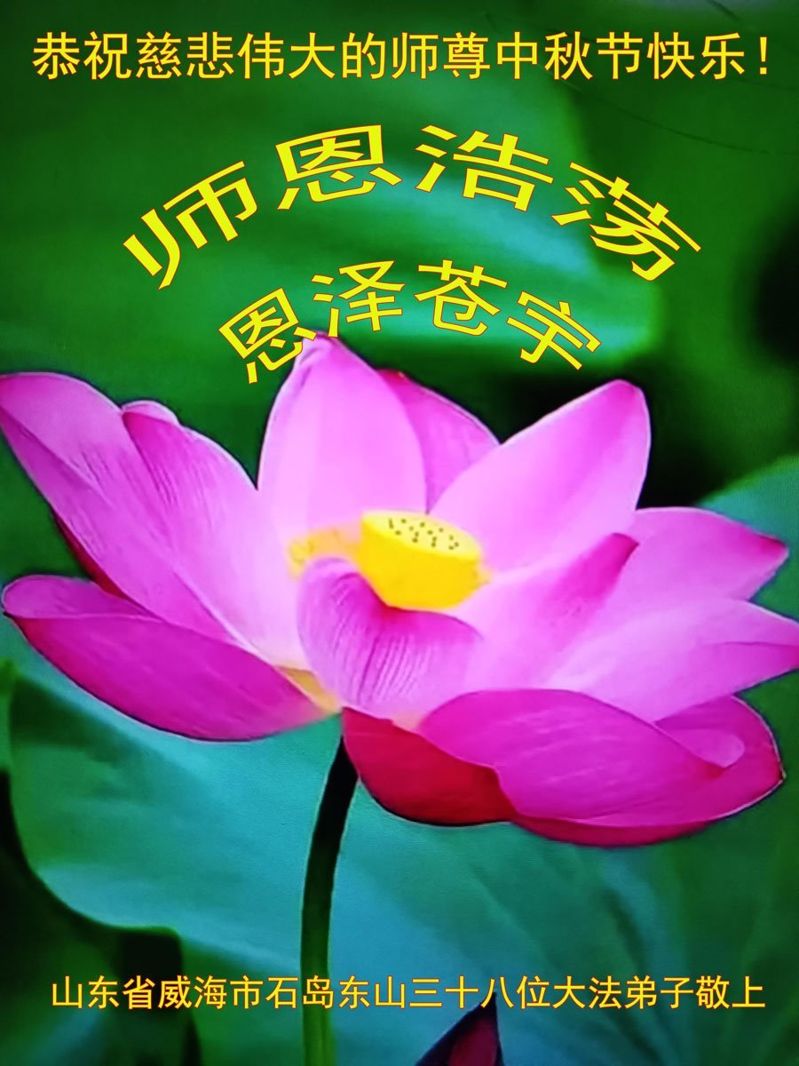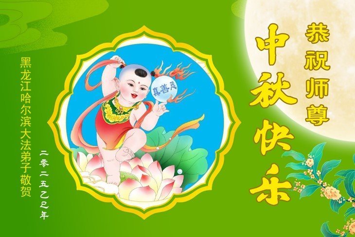 我們大法弟子攜家人和明真相的世人恭祝師尊中秋節快樂!師尊辛苦了!謝謝師尊的慈悲苦度!弟子一定破除舊勢力的安排,消除間隔,形成強大的整體,反迫害,救度眾生。弟子們要多學法,學好法,發好正念,向內找,兌現自己的誓約,跟師父回家。