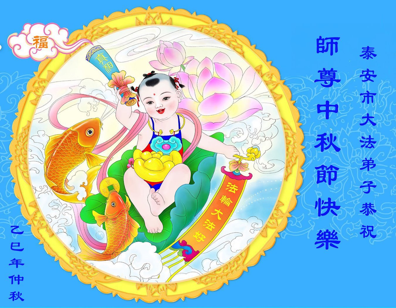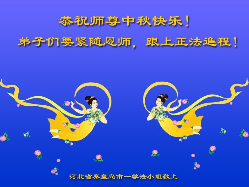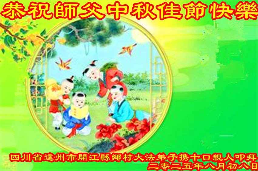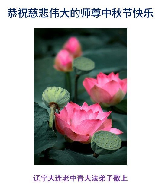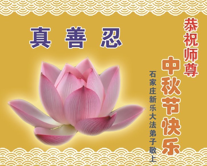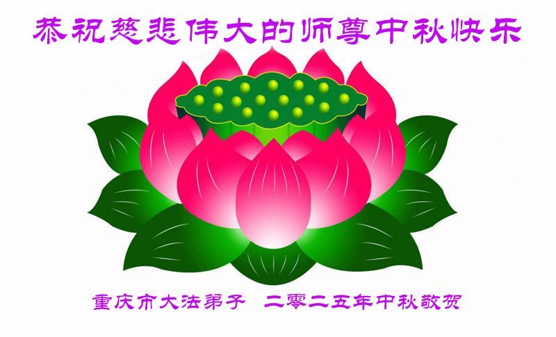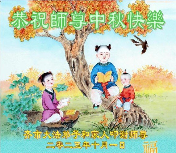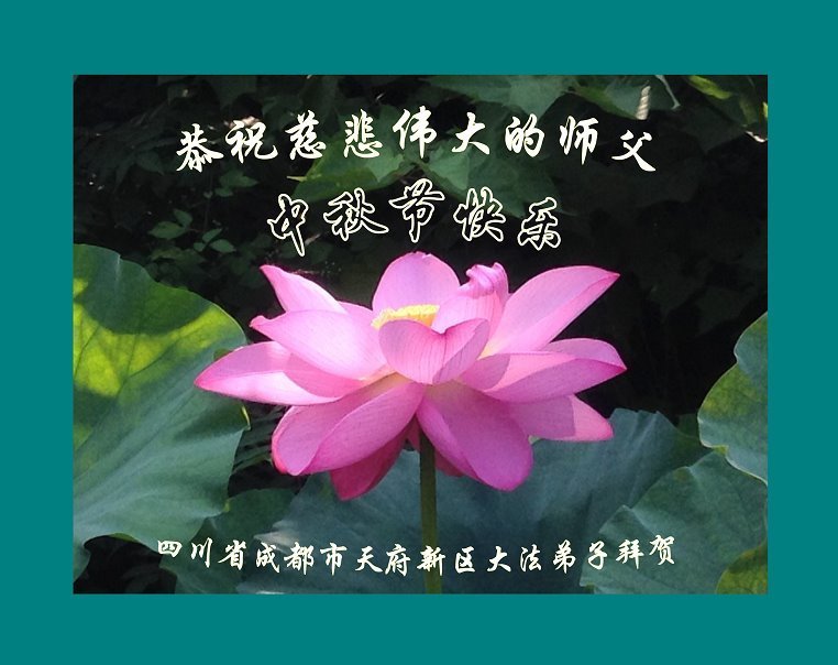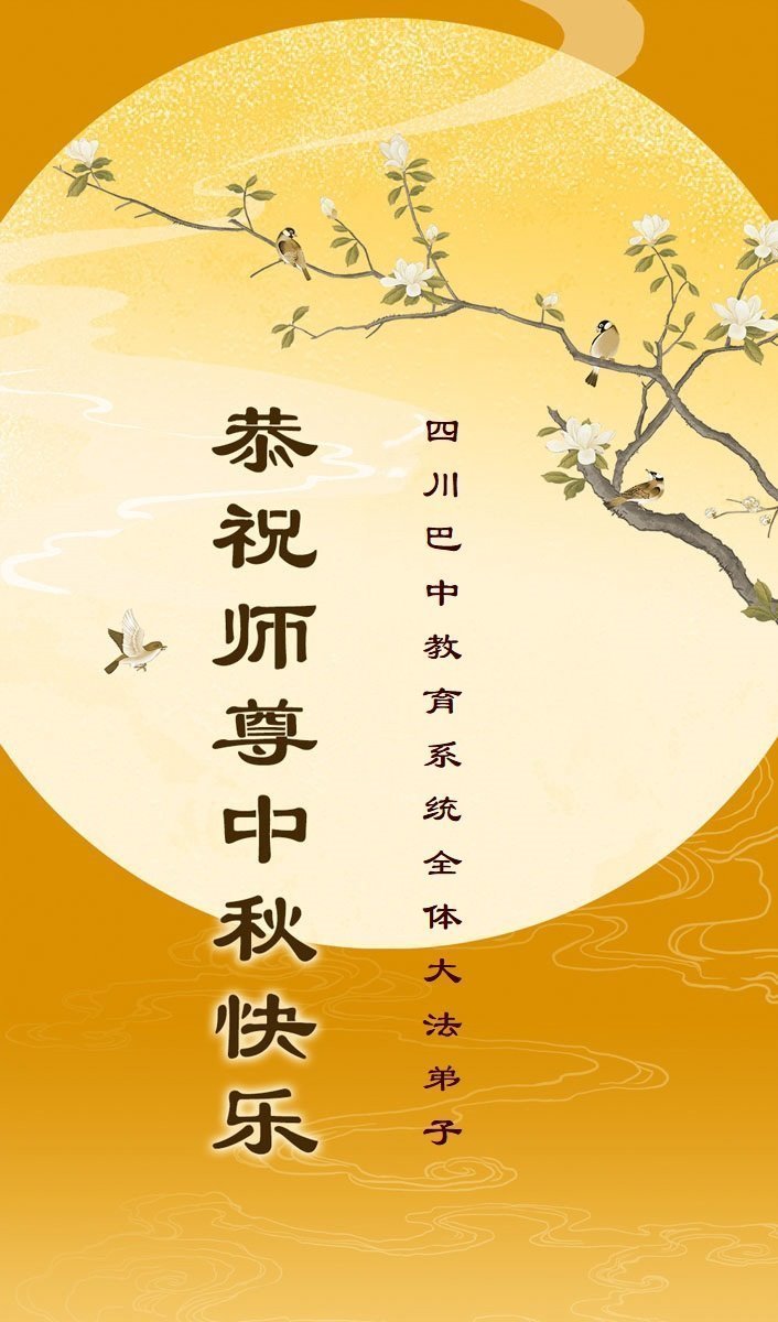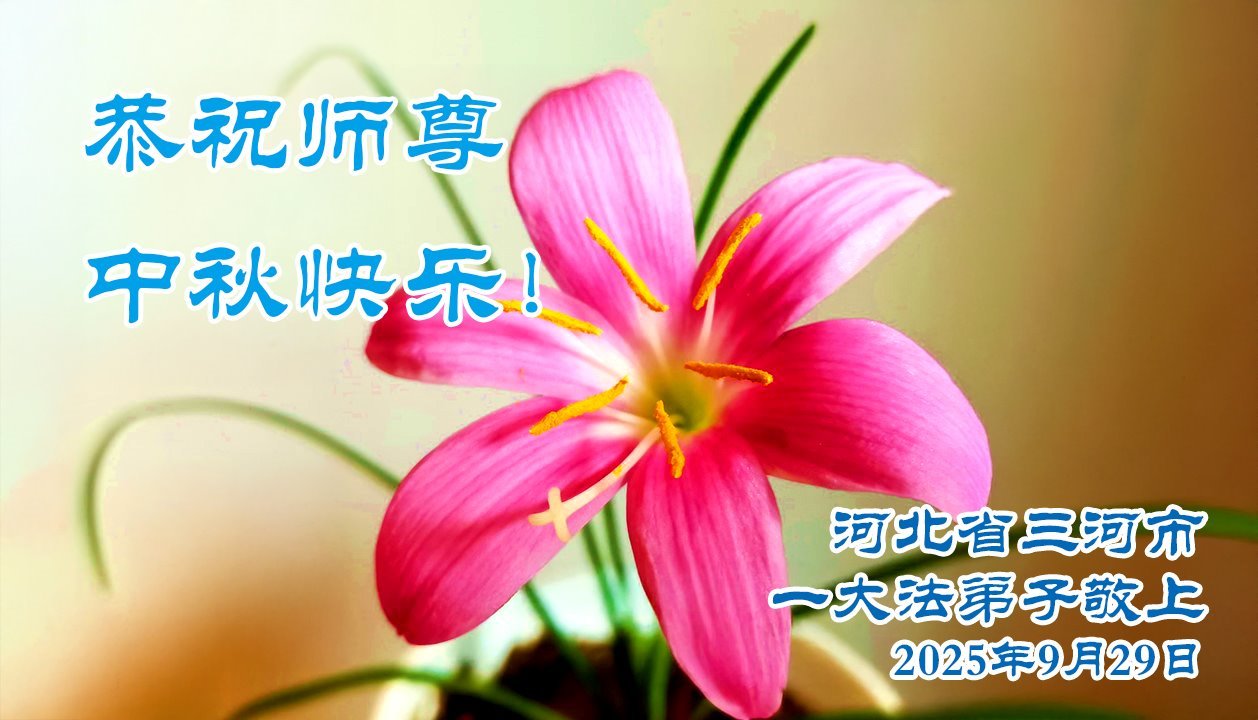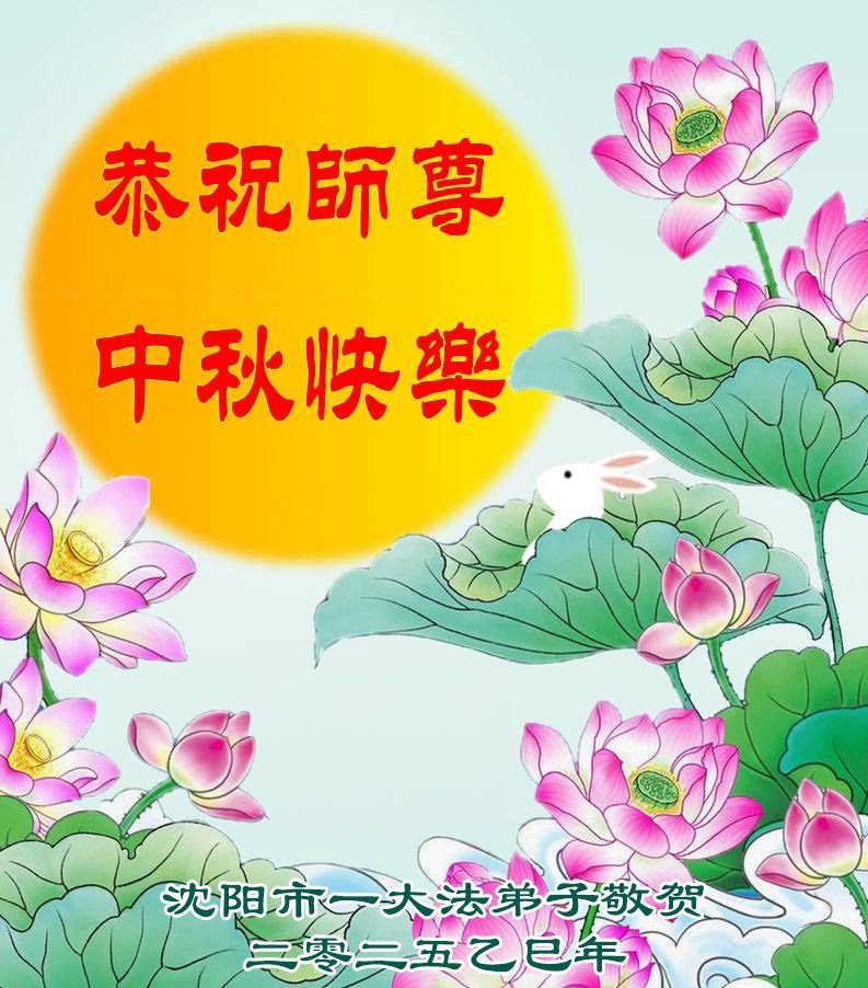 我們大法弟子攜家人和明真相的世人恭祝師尊中秋節快樂!師尊辛苦了!謝謝師尊的慈悲苦度!弟子一定破除舊勢力的安排,消除間隔,形成強大的整體,反迫害,救度眾生。弟子們要多學法,學好法,發好正念,向內找,兌現自己的誓約,跟師父回家。