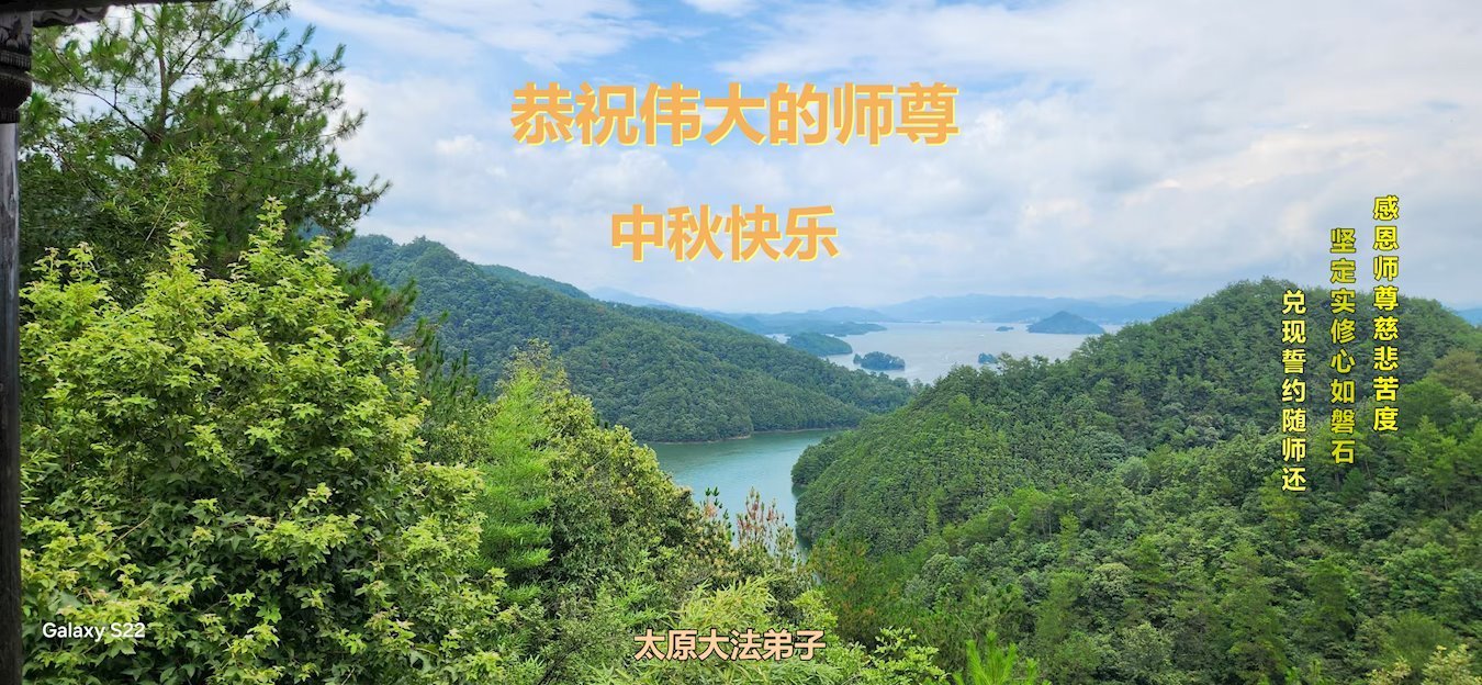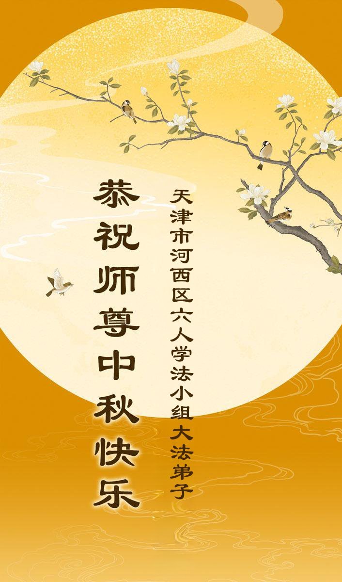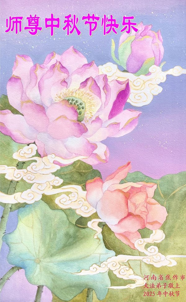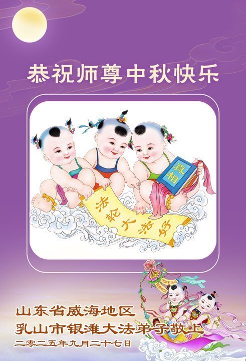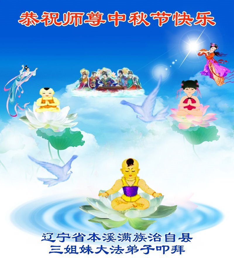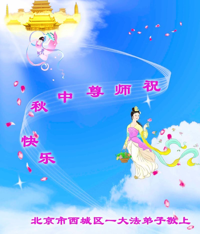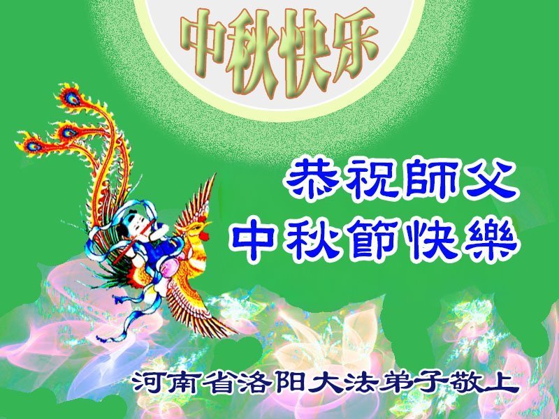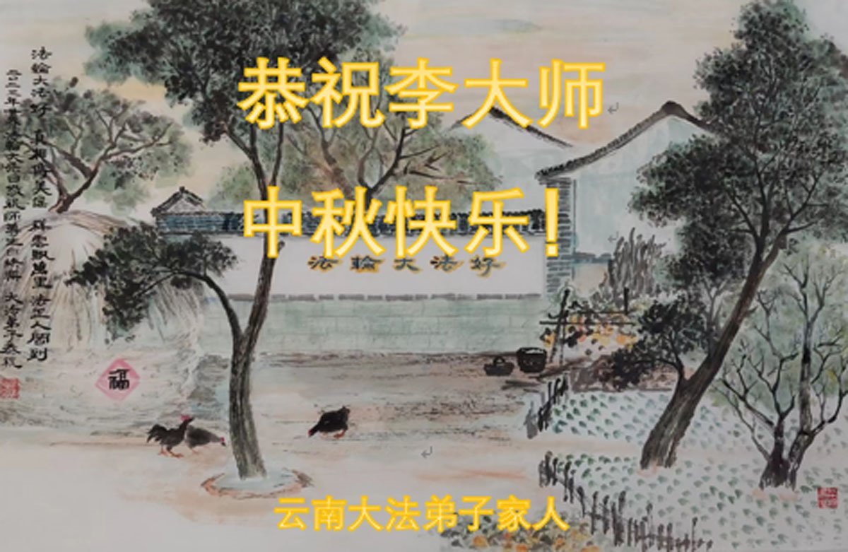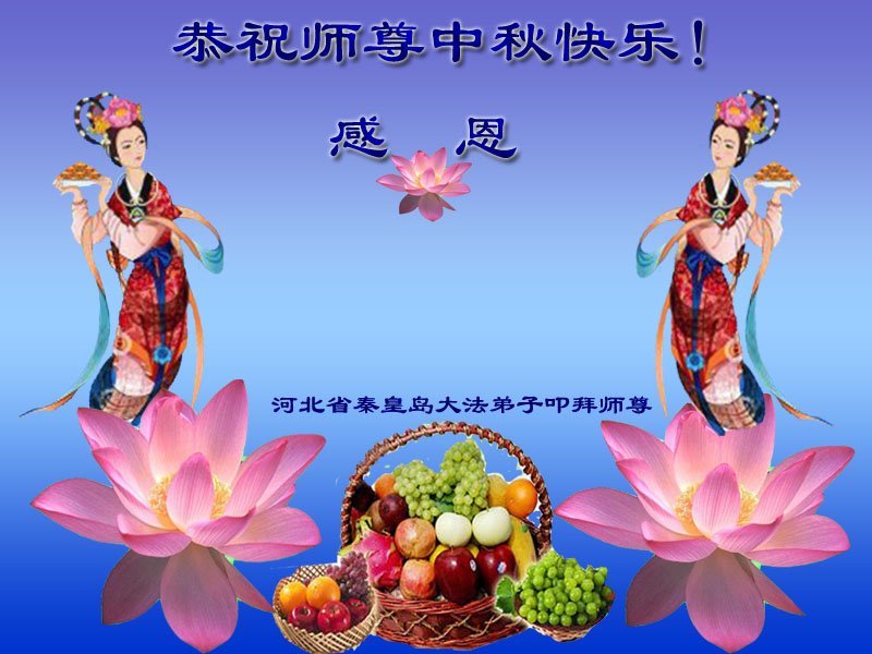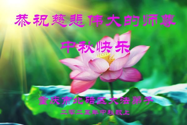 我們大法弟子攜家人和明真相的世人恭祝師尊中秋節快樂!師尊辛苦了!謝謝師尊的慈悲苦度!弟子一定破除舊勢力的安排,消除間隔,形成強大的整體,反迫害,救度眾生。弟子們要多學法,學好法,發好正念,向內找,兌現自己的誓約,跟師父回家。