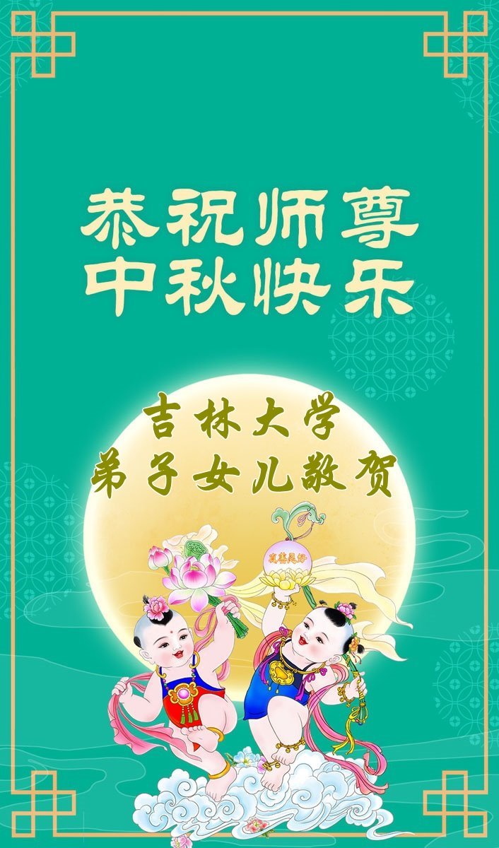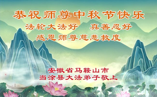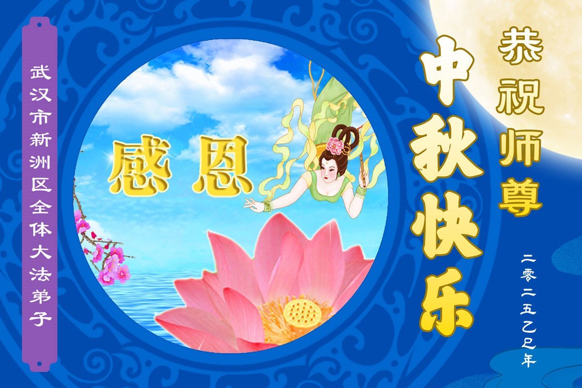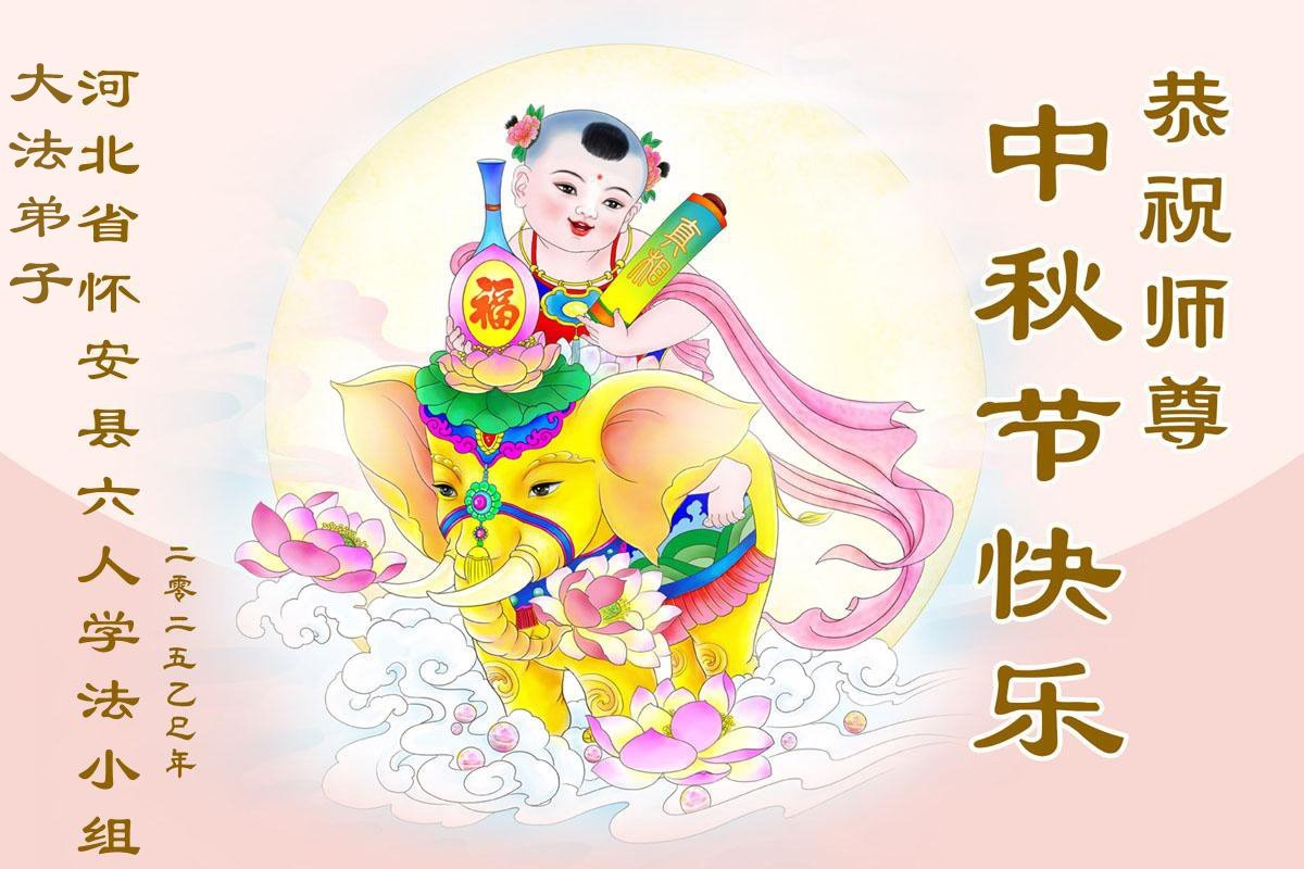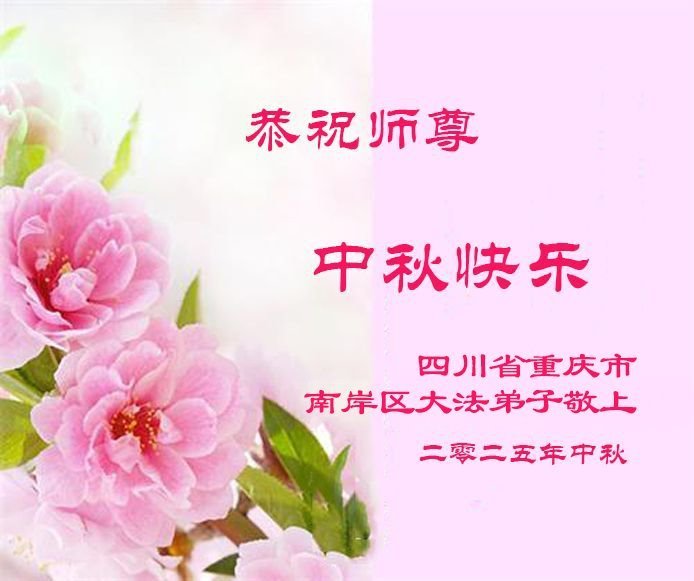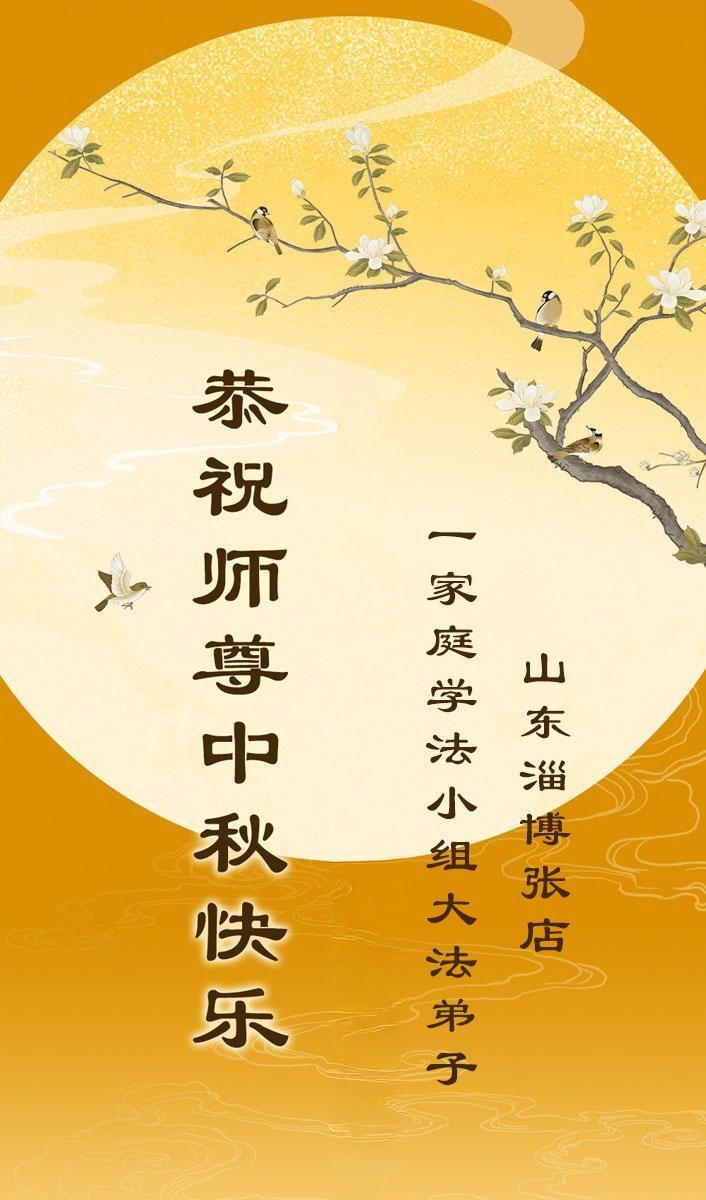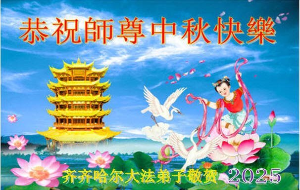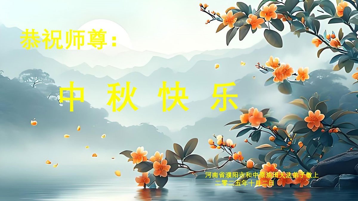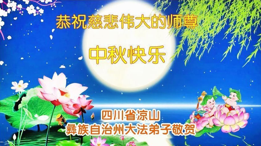 我們大法弟子攜家人和明真相的世人恭祝師尊中秋節快樂!師尊辛苦了!謝謝師尊的慈悲苦度!弟子一定破除舊勢力的安排,消除間隔,形成強大的整體,反迫害,救度眾生。弟子們要多學法,學好法,發好正念,向內找,兌現自己的誓約,跟師父回家。