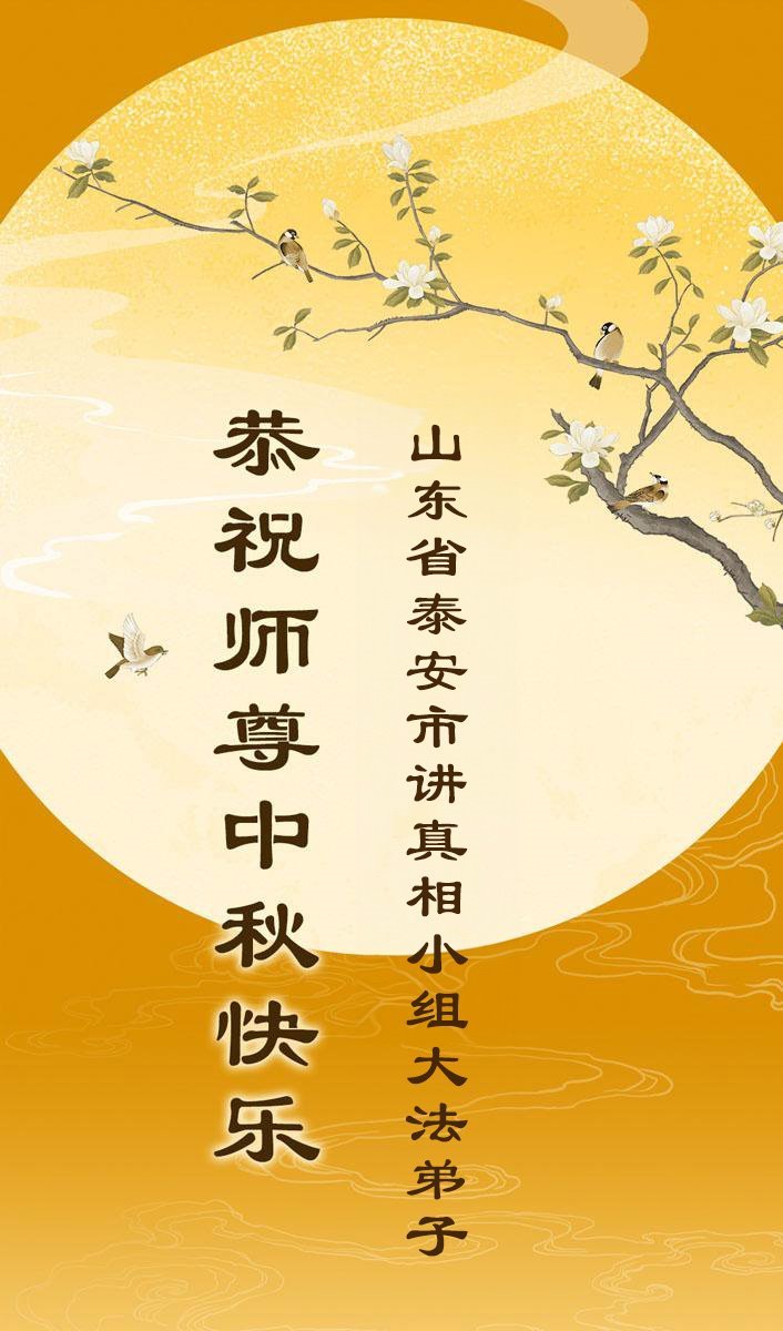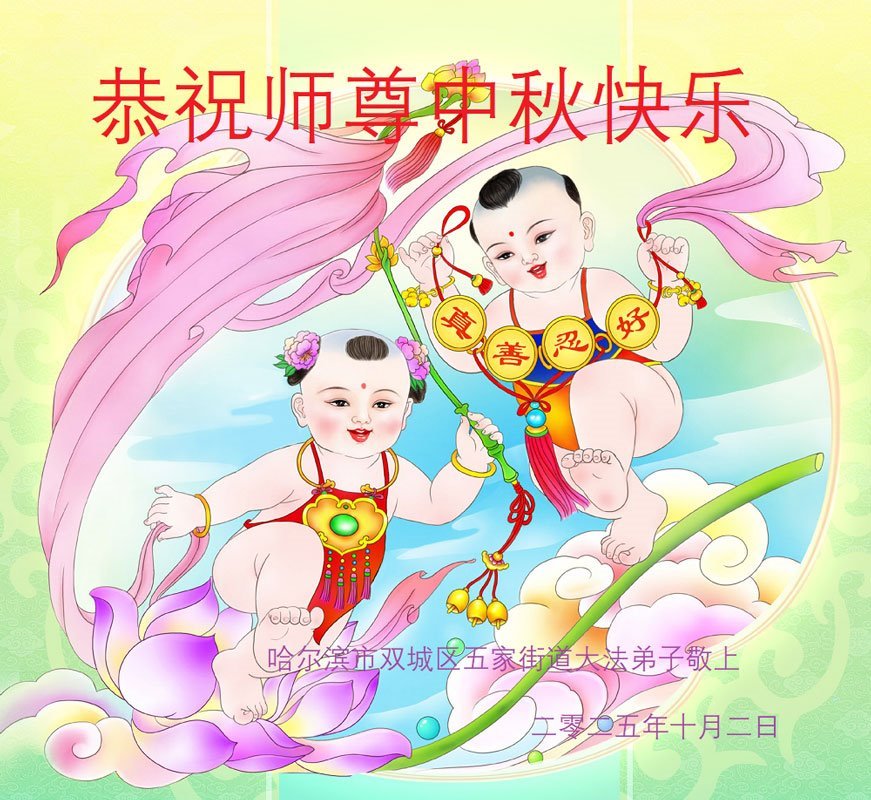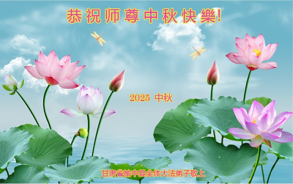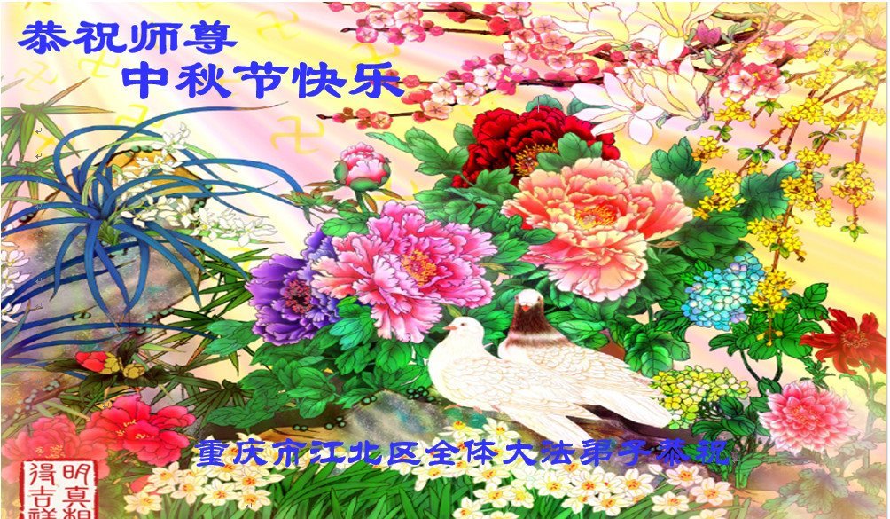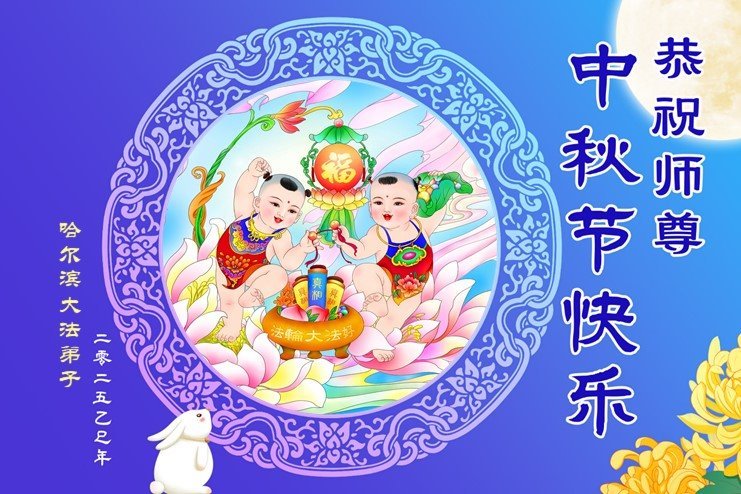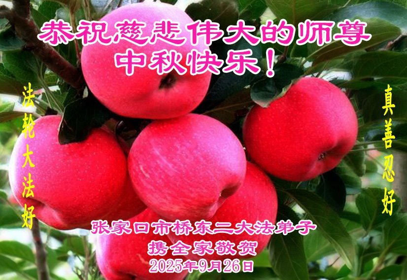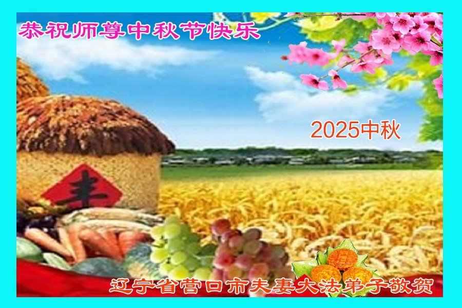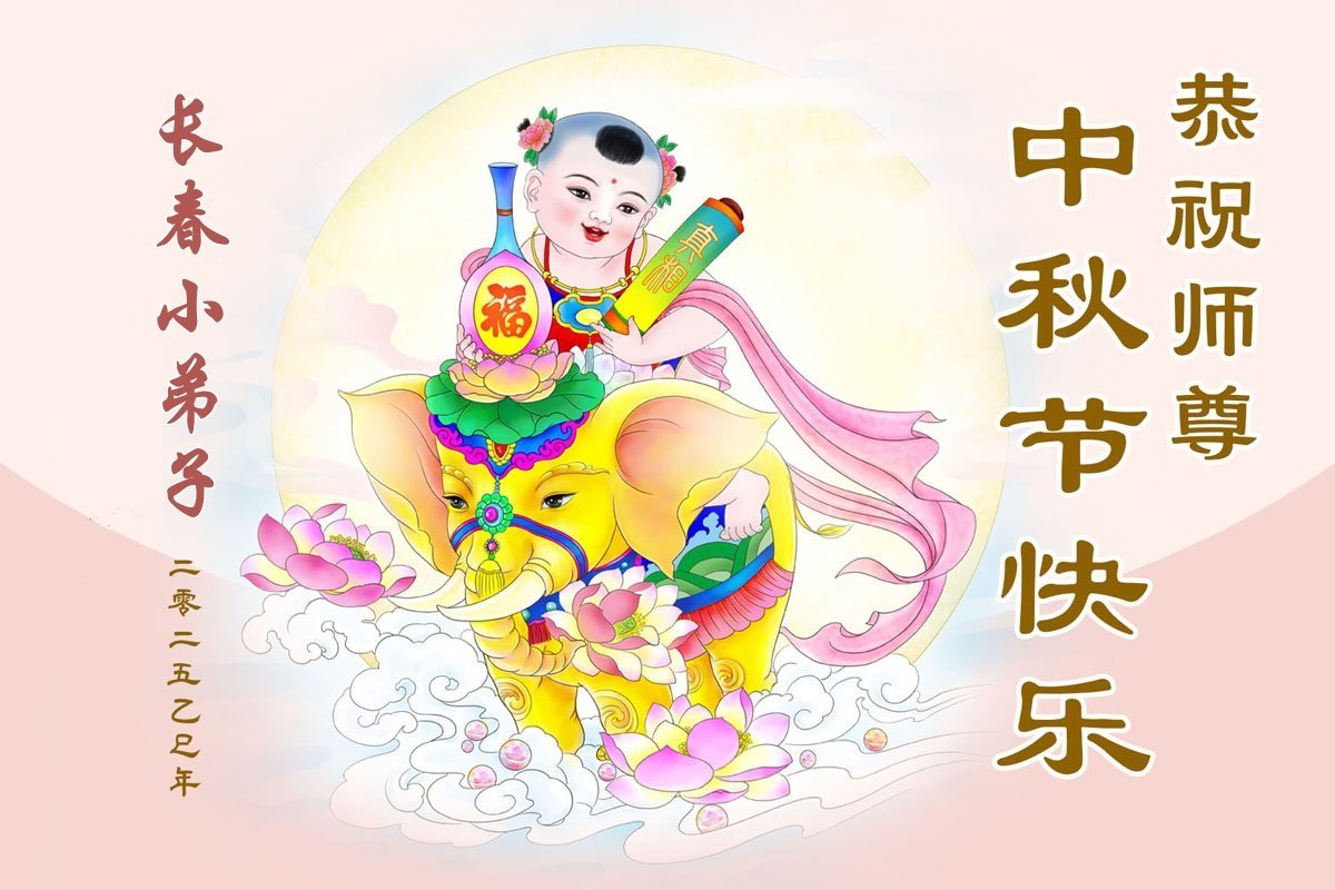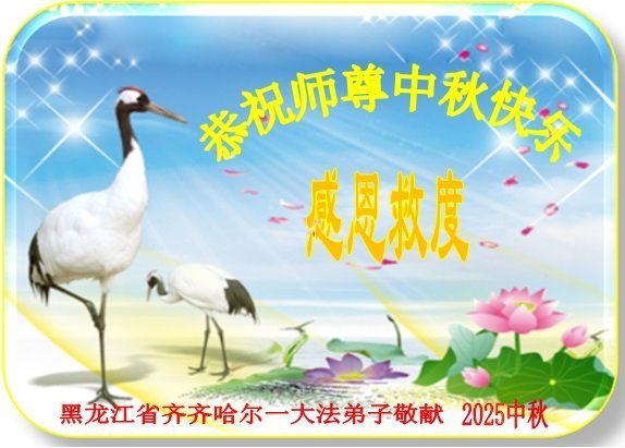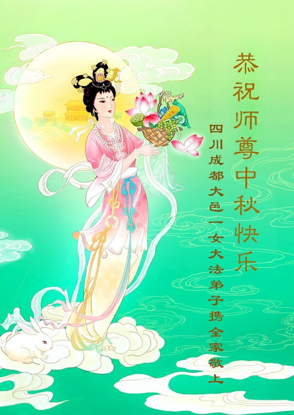 我們大法弟子攜家人和明真相的世人恭祝師尊中秋節快樂!師尊辛苦了!謝謝師尊的慈悲苦度!弟子一定破除舊勢力的安排,消除間隔,形成強大的整體,反迫害,救度眾生。弟子們要多學法,學好法,發好正念,向內找,兌現自己的誓約,跟師父回家。