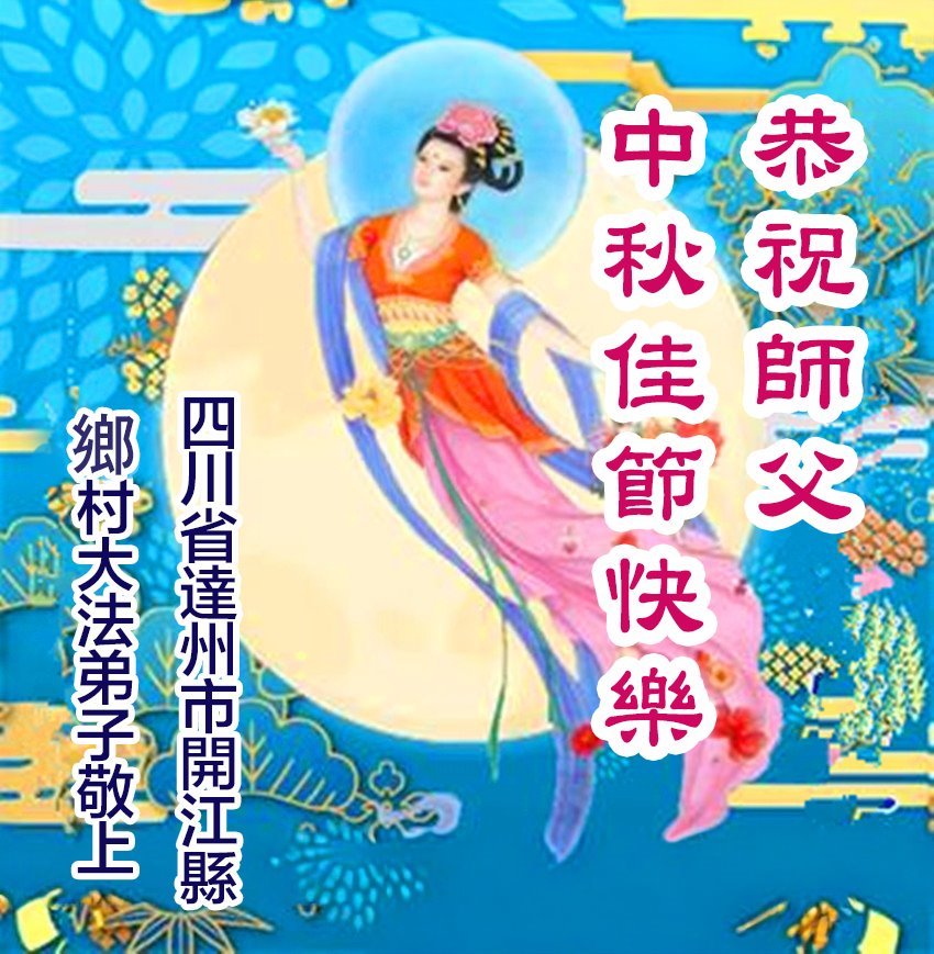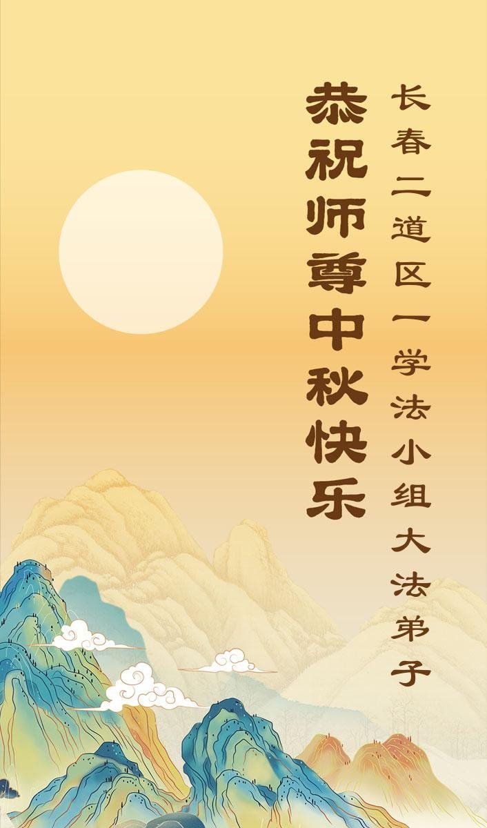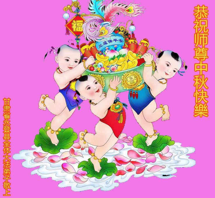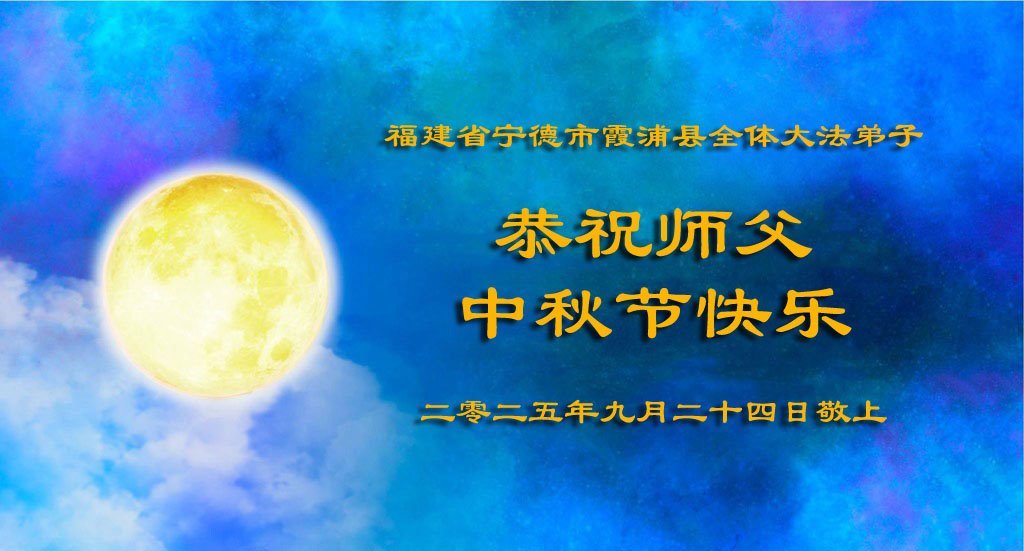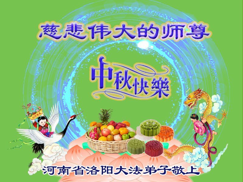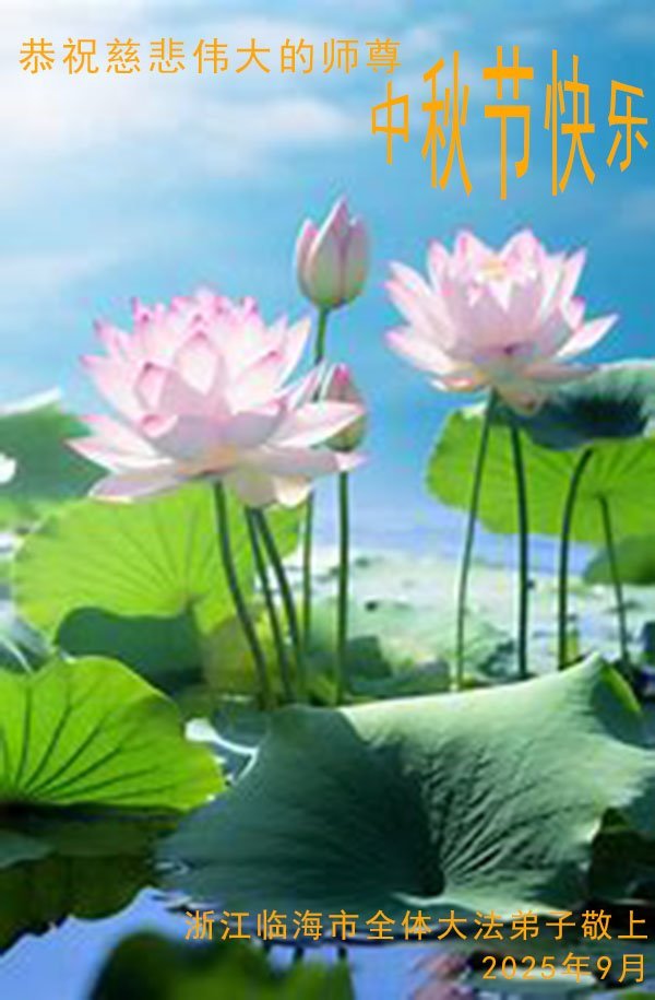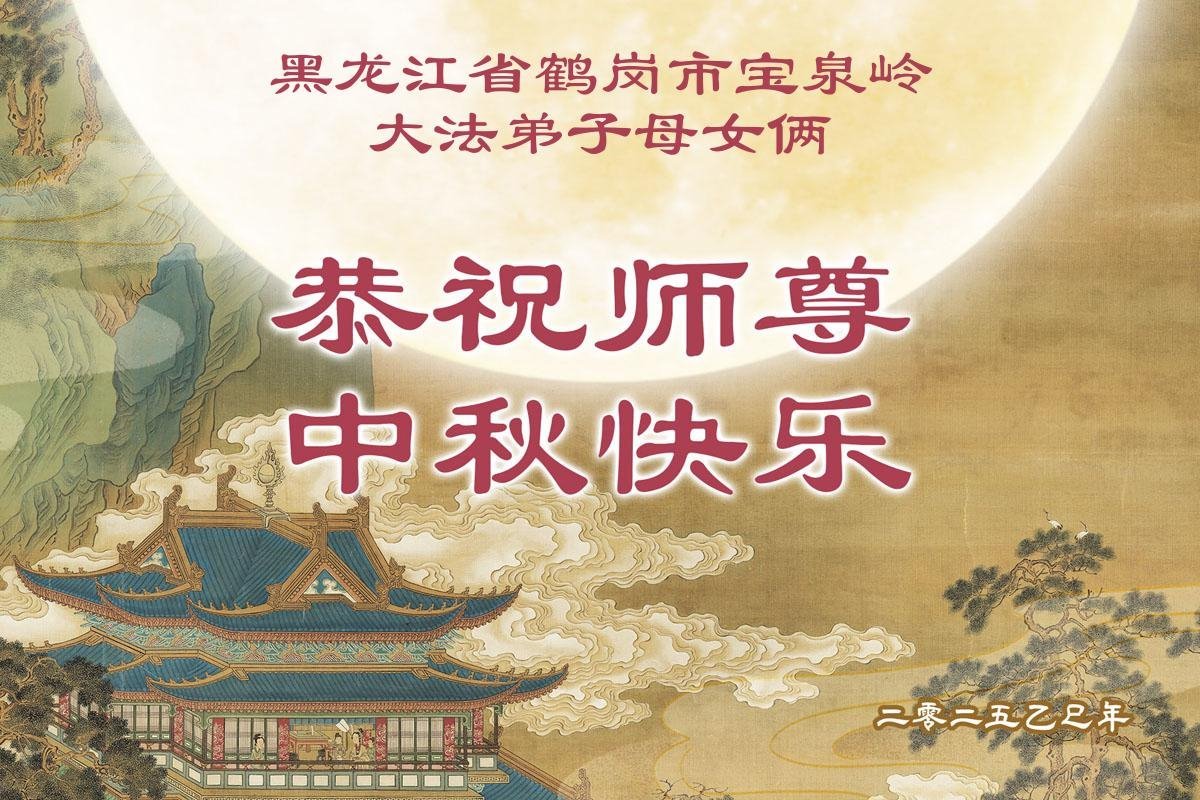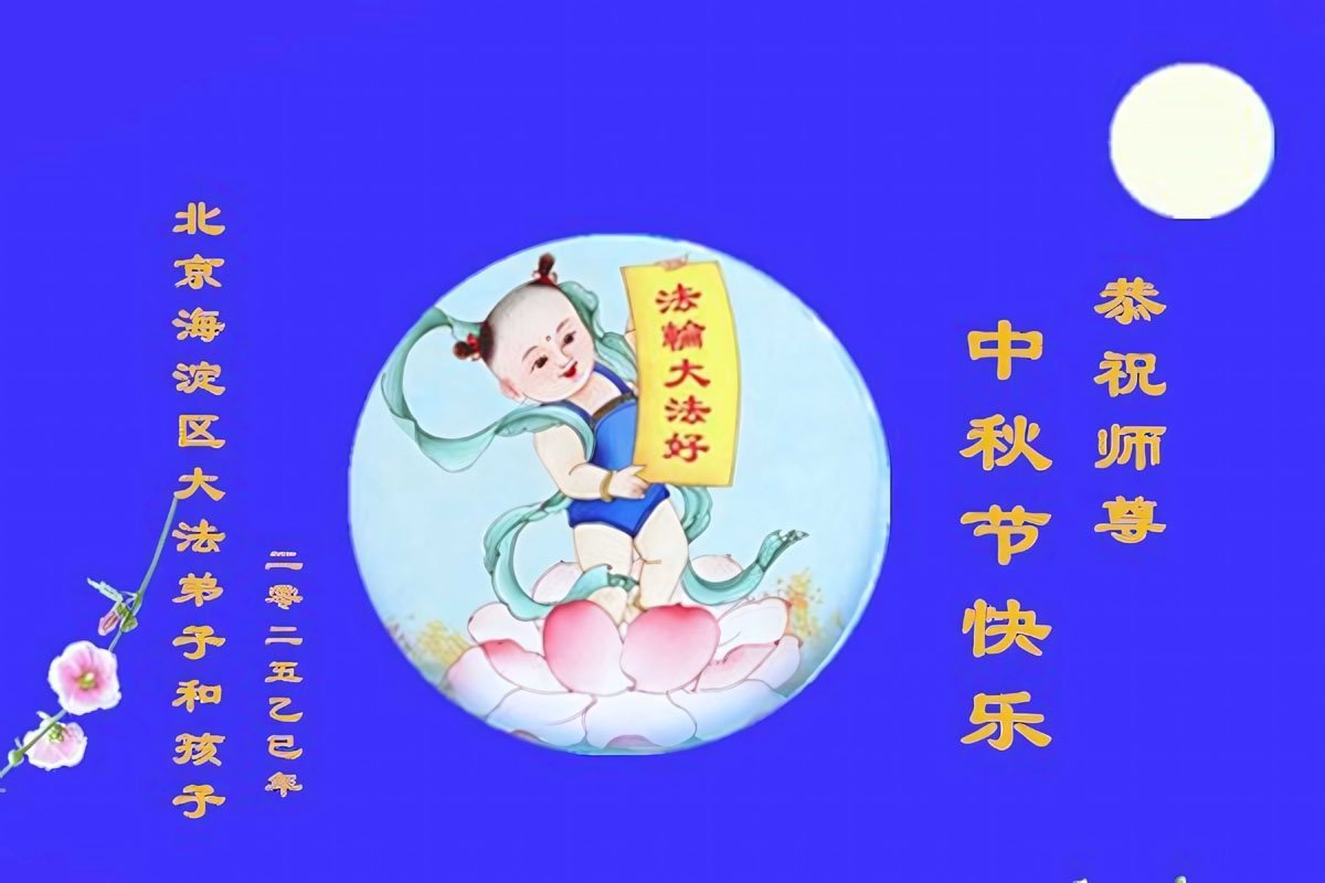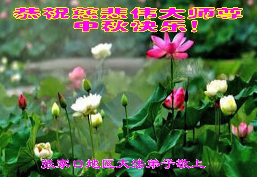 我們大法弟子攜家人和明真相的世人恭祝師尊中秋節快樂!師尊辛苦了!謝謝師尊的慈悲苦度!弟子一定破除舊勢力的安排,消除間隔,形成強大的整體,反迫害,救度眾生。弟子們要多學法,學好法,發好正念,向內找,兌現自己的誓約,跟師父回家。