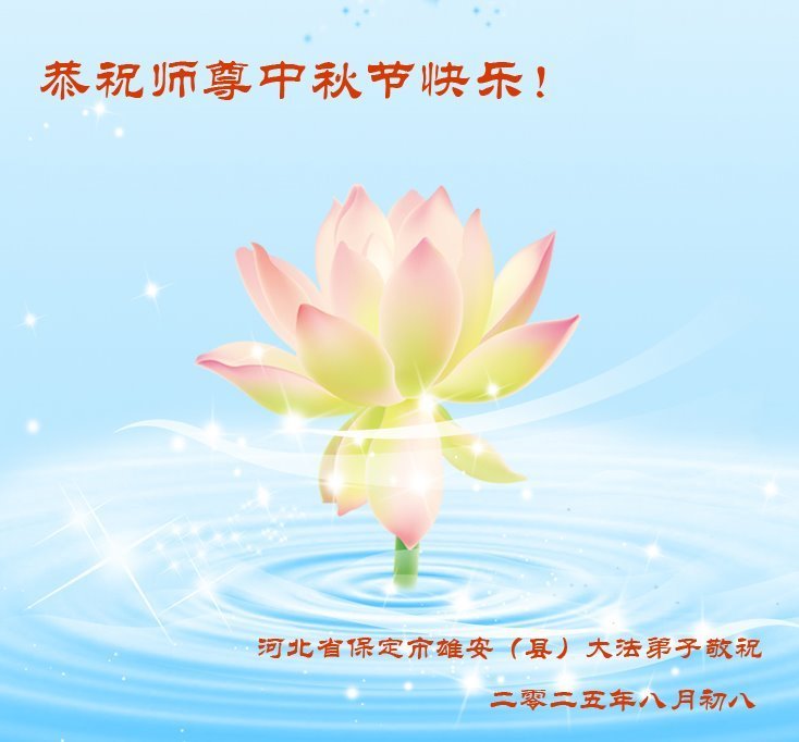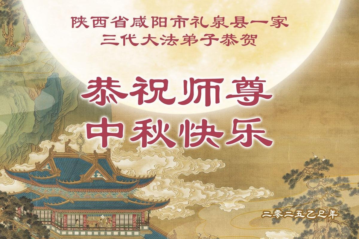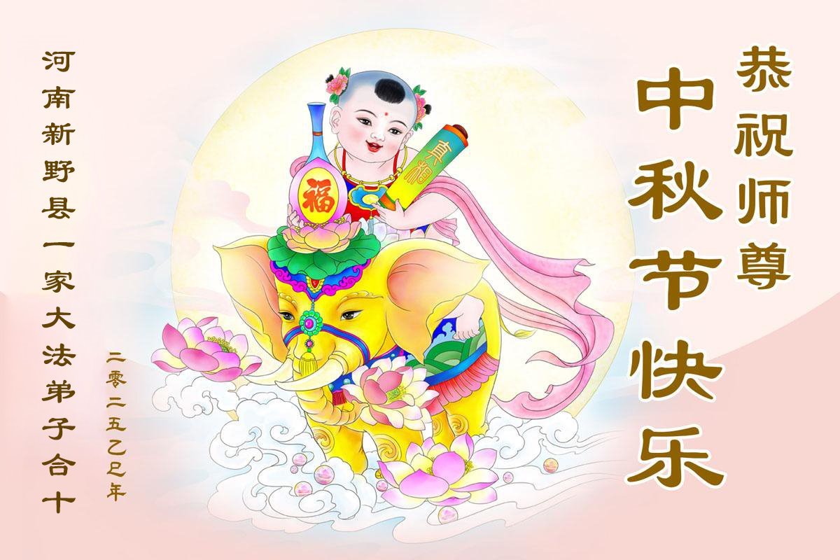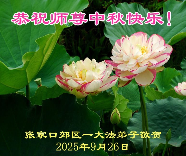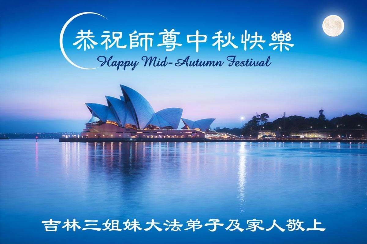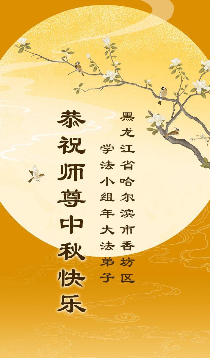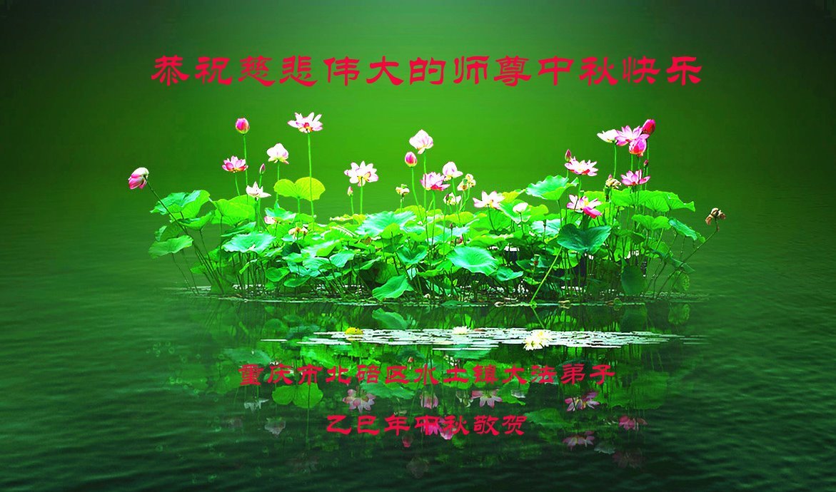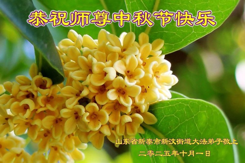 我們大法弟子攜家人和明真相的世人恭祝師尊中秋節快樂!師尊辛苦了!謝謝師尊的慈悲苦度!弟子一定破除舊勢力的安排,消除間隔,形成強大的整體,反迫害,救度眾生。弟子們要多學法,學好法,發好正念,向內找,兌現自己的誓約,跟師父回家。
