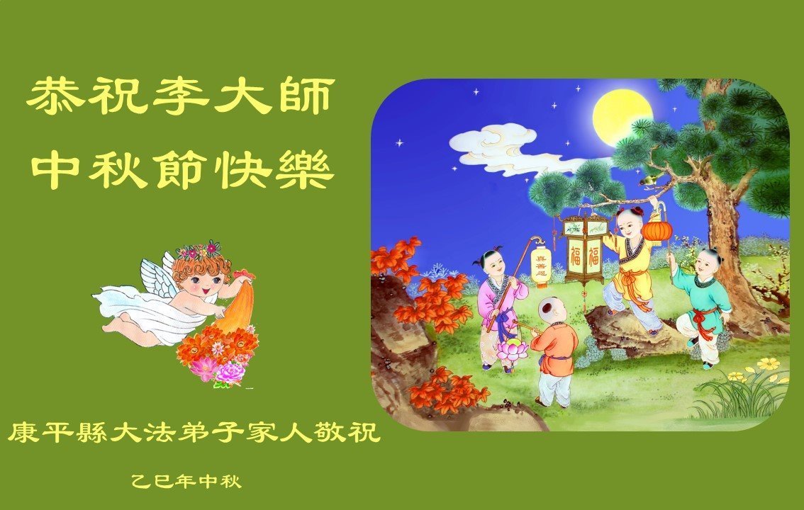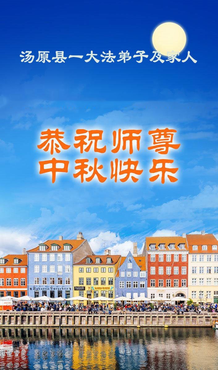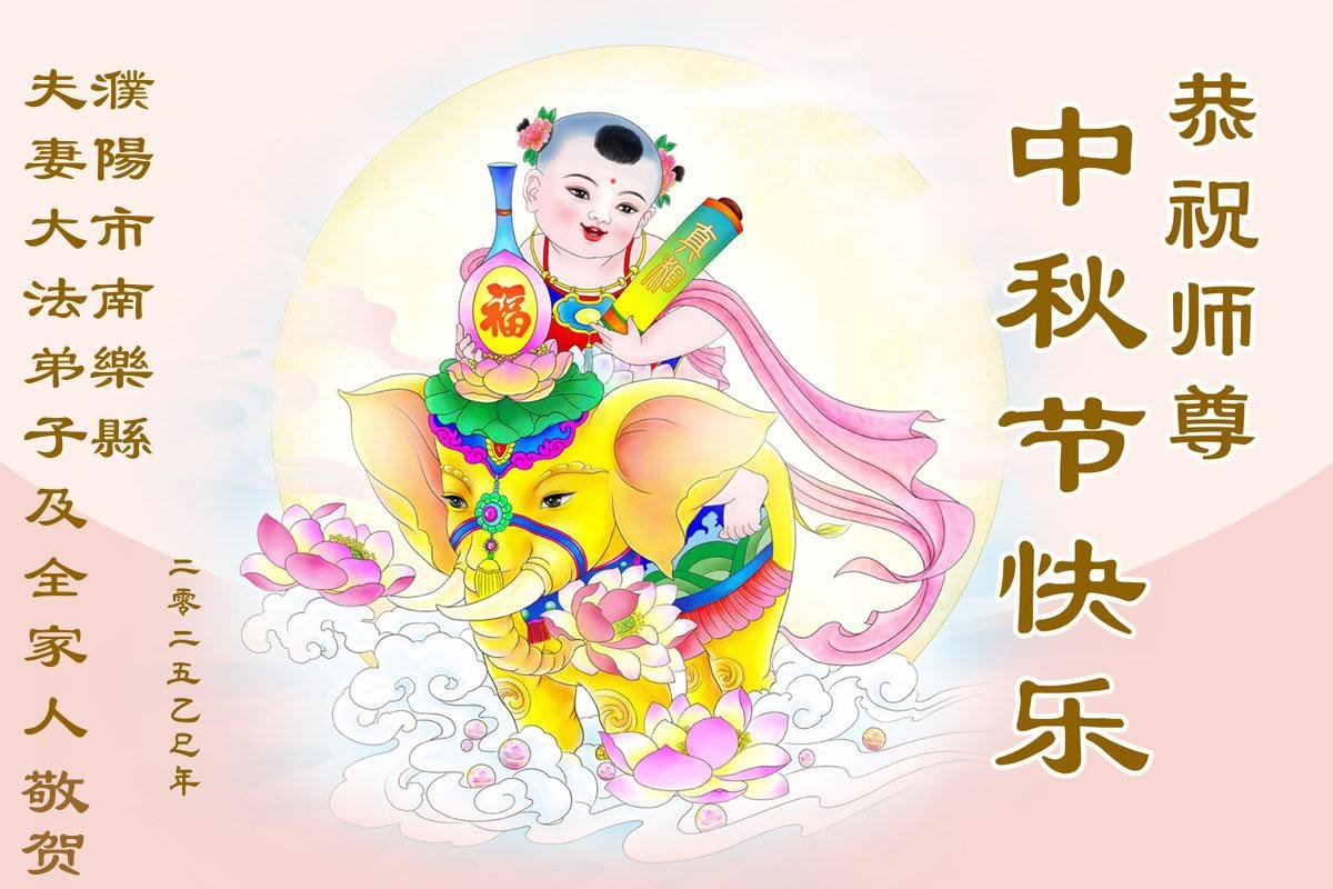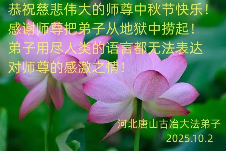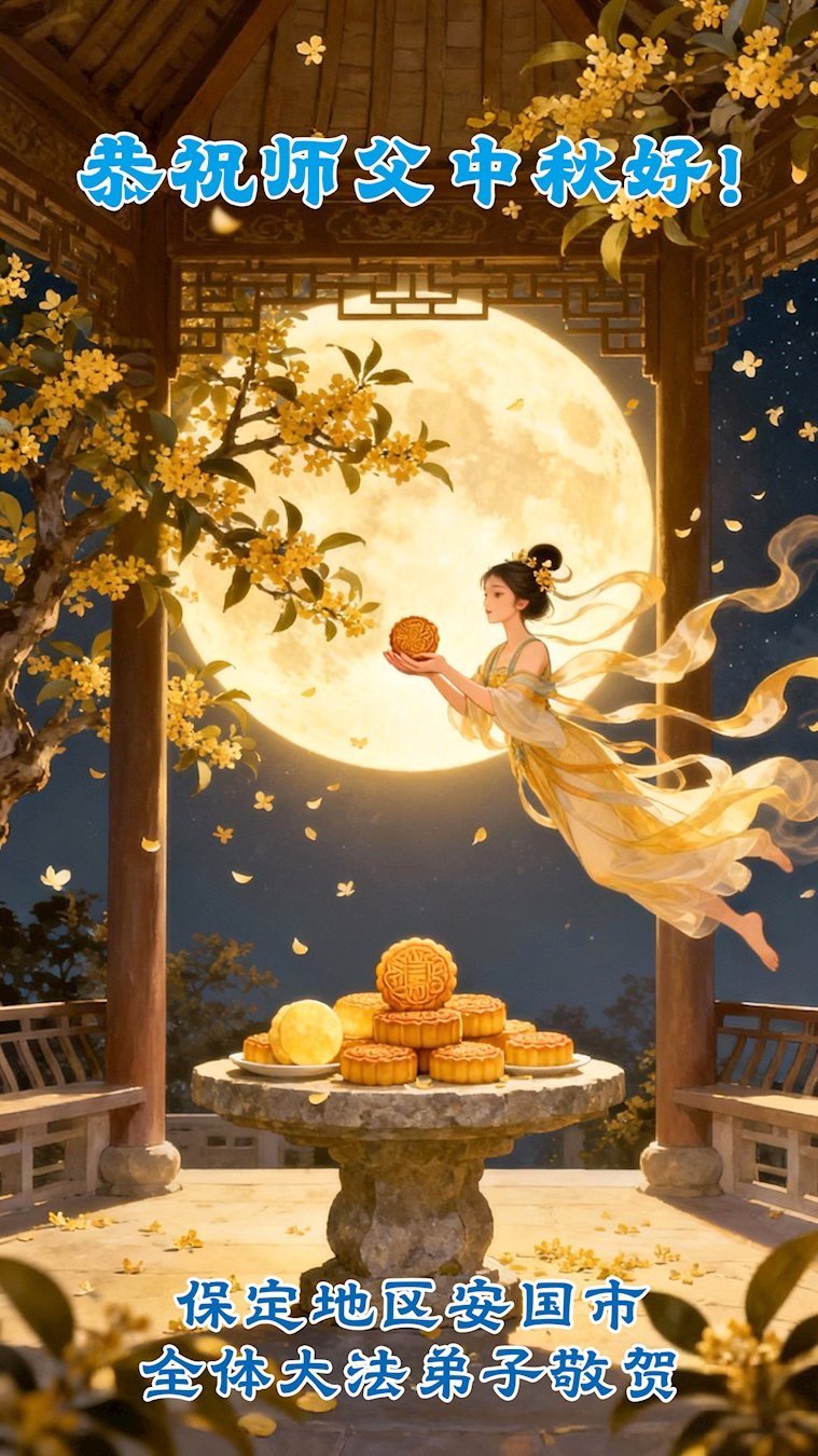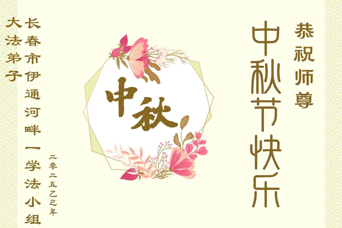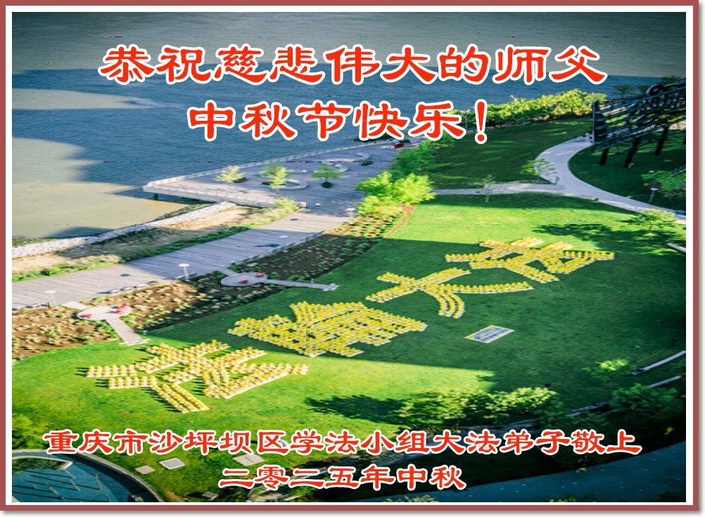 我們大法弟子攜家人和明真相的世人恭祝師尊中秋節快樂!師尊辛苦了!謝謝師尊的慈悲苦度!弟子一定破除舊勢力的安排,消除間隔,形成強大的整體,反迫害,救度眾生。弟子們要多學法,學好法,發好正念,向內找,兌現自己的誓約,跟師父回家。