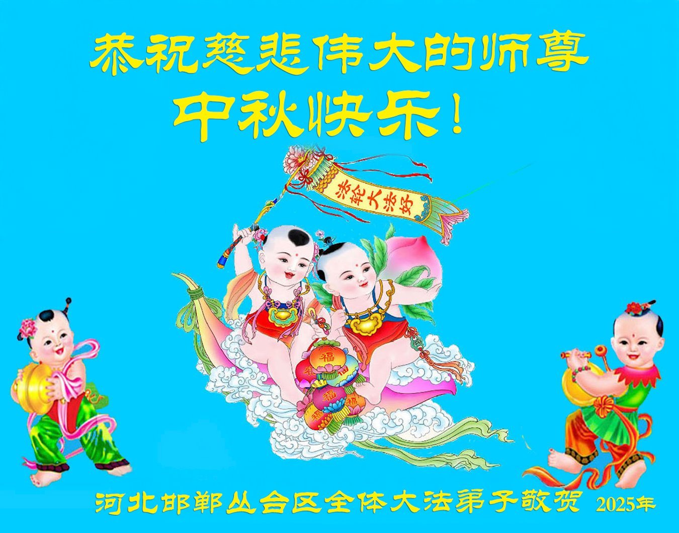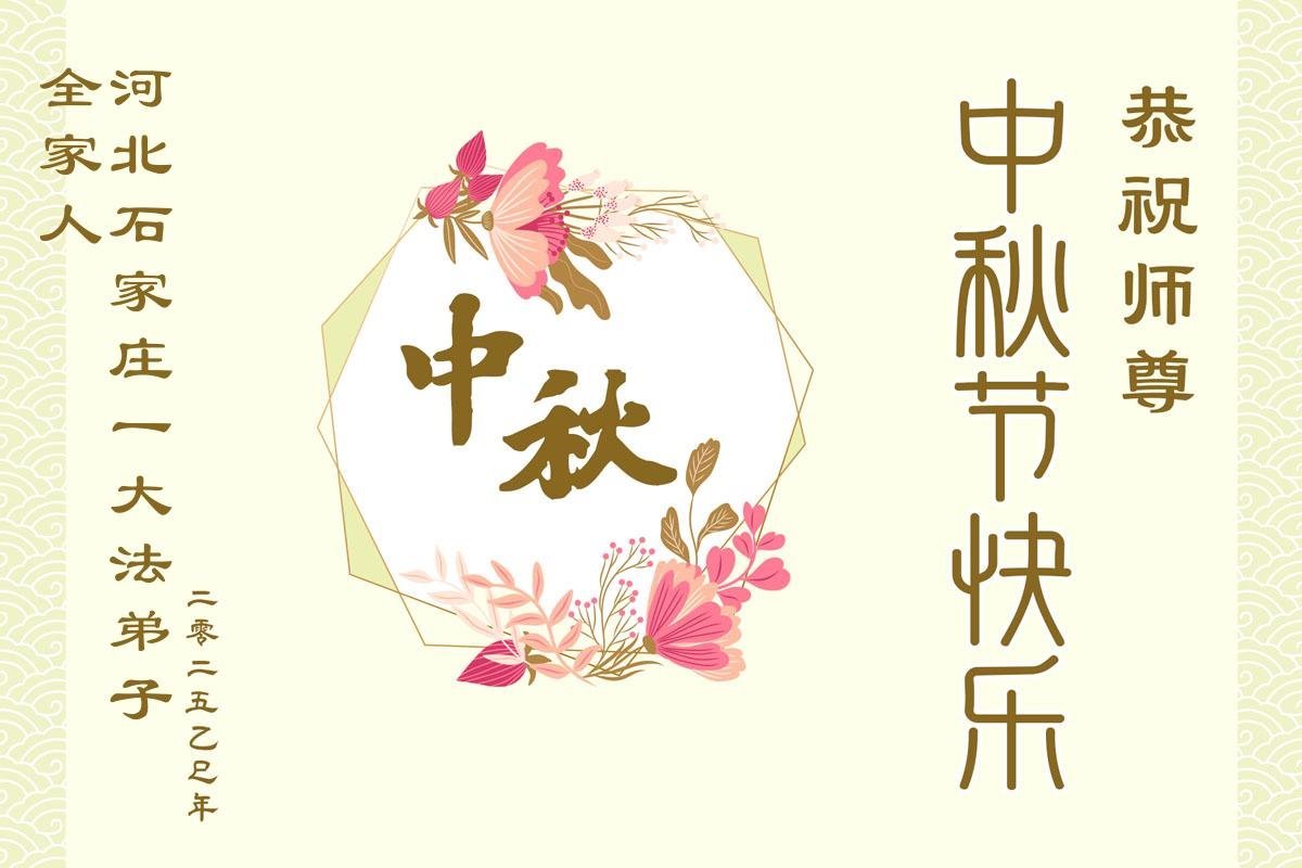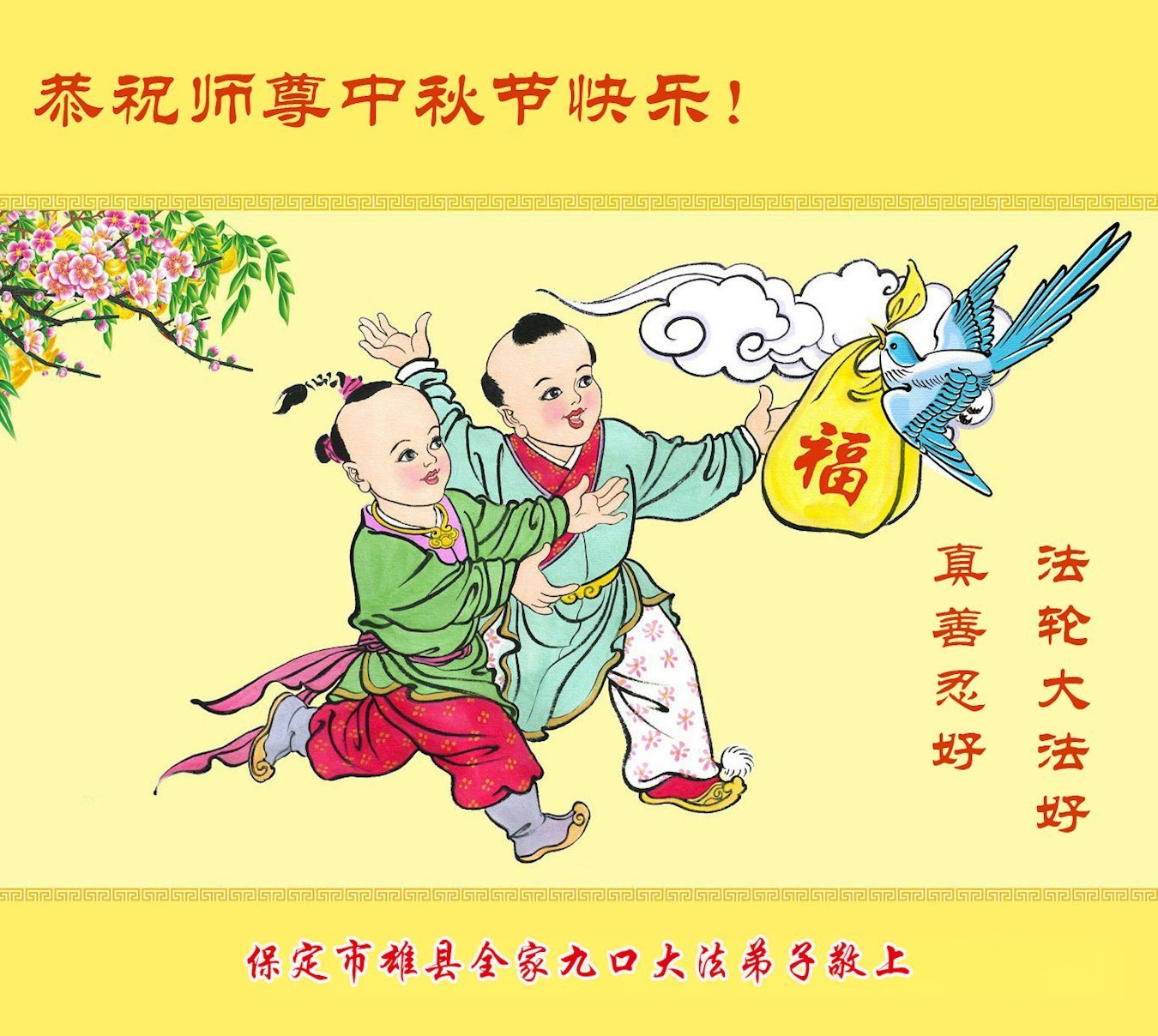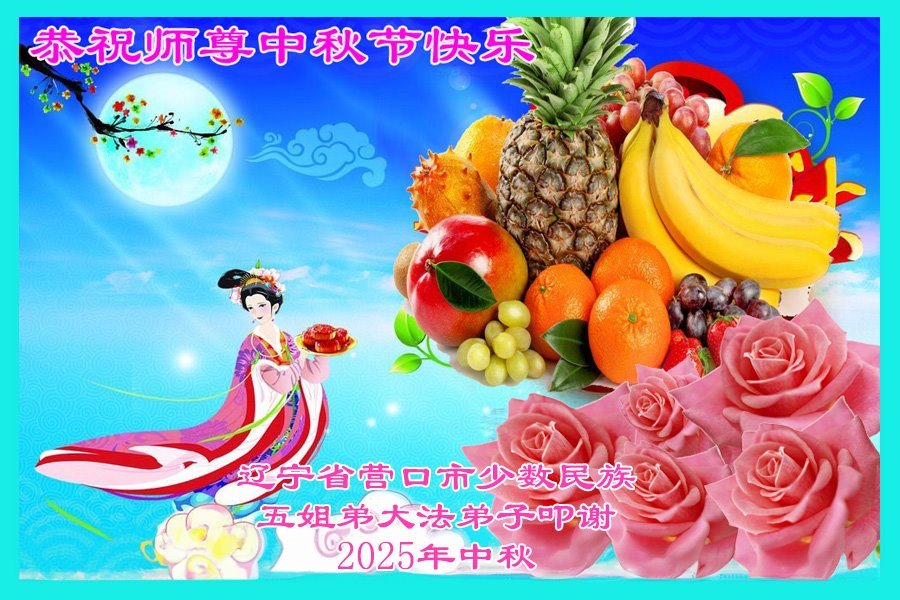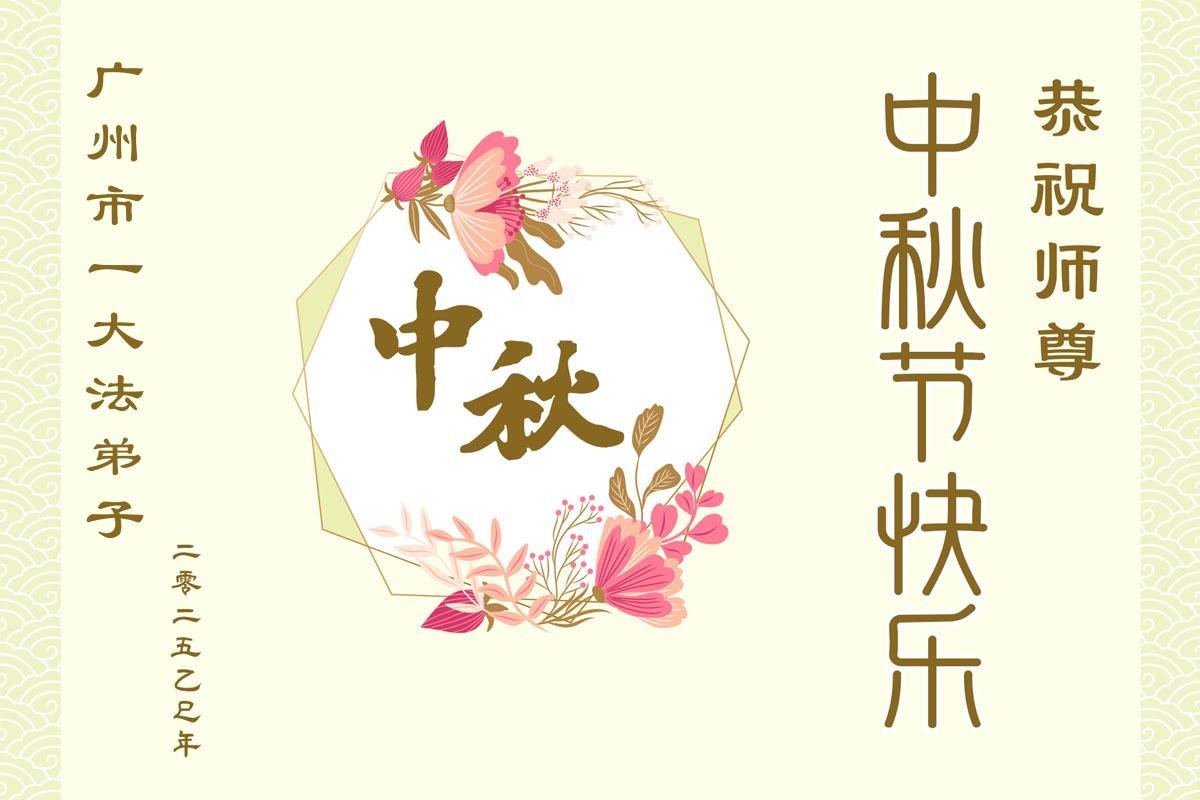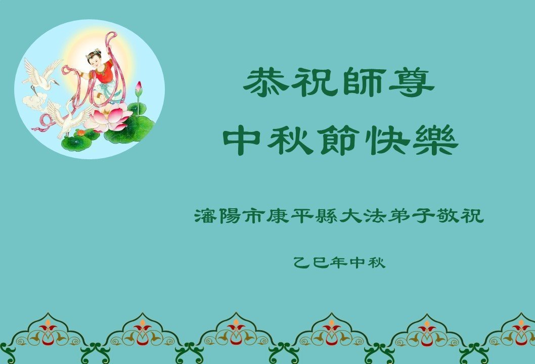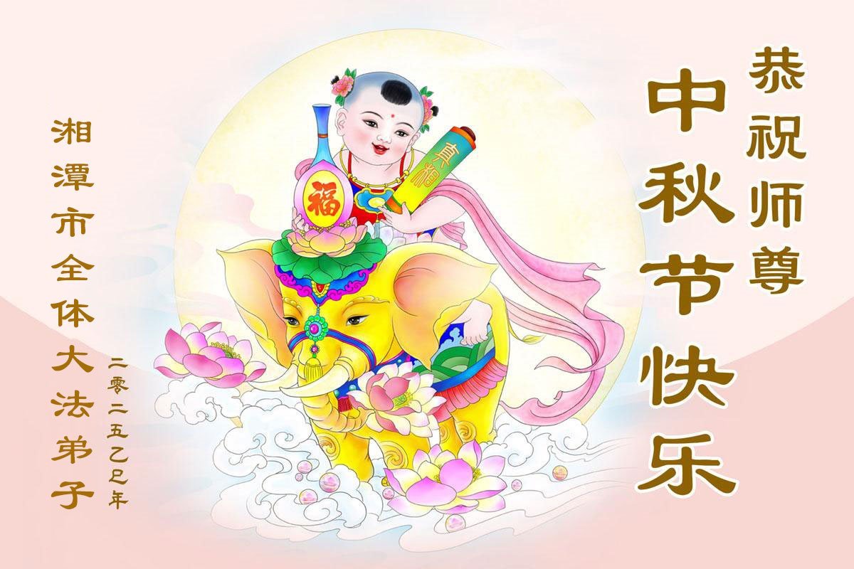 我們大法弟子攜家人和明真相的世人恭祝師尊中秋節快樂!師尊辛苦了!謝謝師尊的慈悲苦度!弟子一定破除舊勢力的安排,消除間隔,形成強大的整體,反迫害,救度眾生。弟子們要多學法,學好法,發好正念,向內找,兌現自己的誓約,跟師父回家。