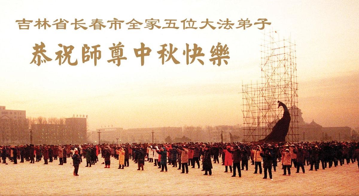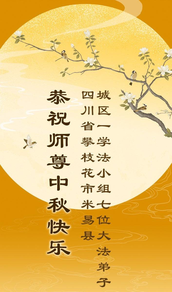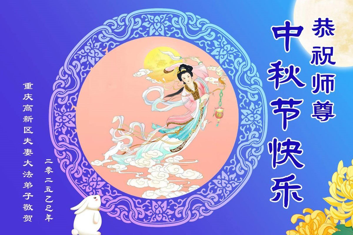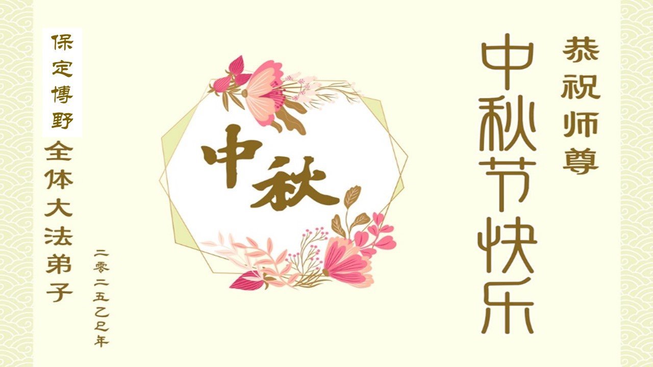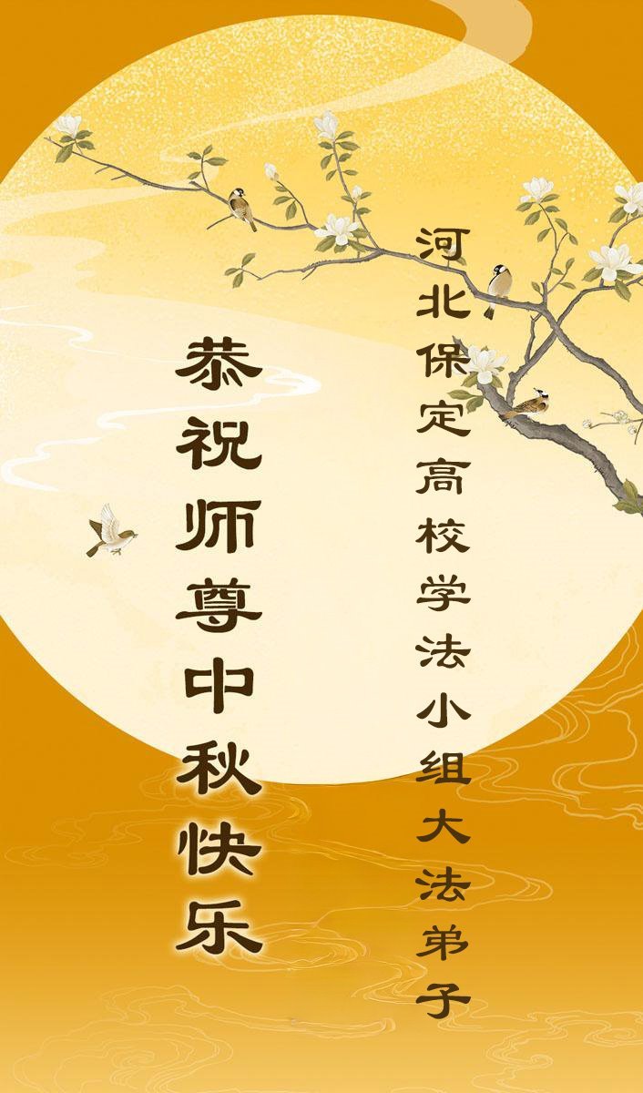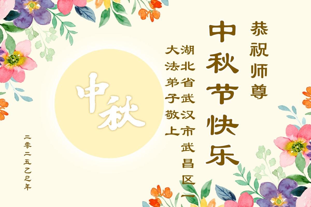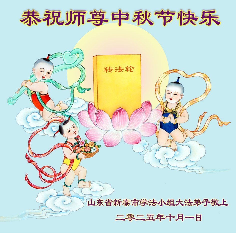 我們大法弟子攜家人和明真相的世人恭祝師尊中秋節快樂!師尊辛苦了!謝謝師尊的慈悲苦度!弟子一定破除舊勢力的安排,消除間隔,形成強大的整體,反迫害,救度眾生。弟子們要多學法,學好法,發好正念,向內找,兌現自己的誓約,跟師父回家。