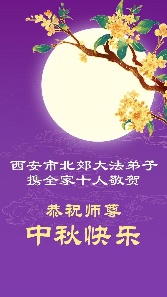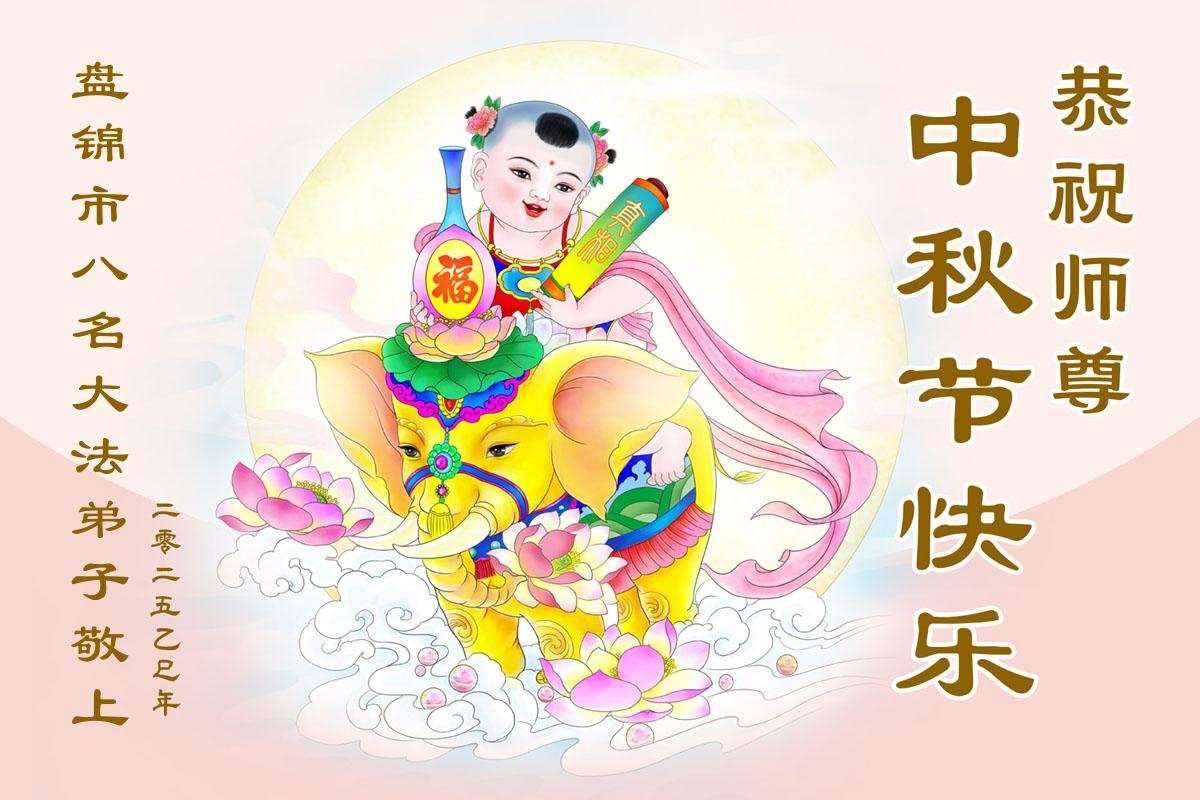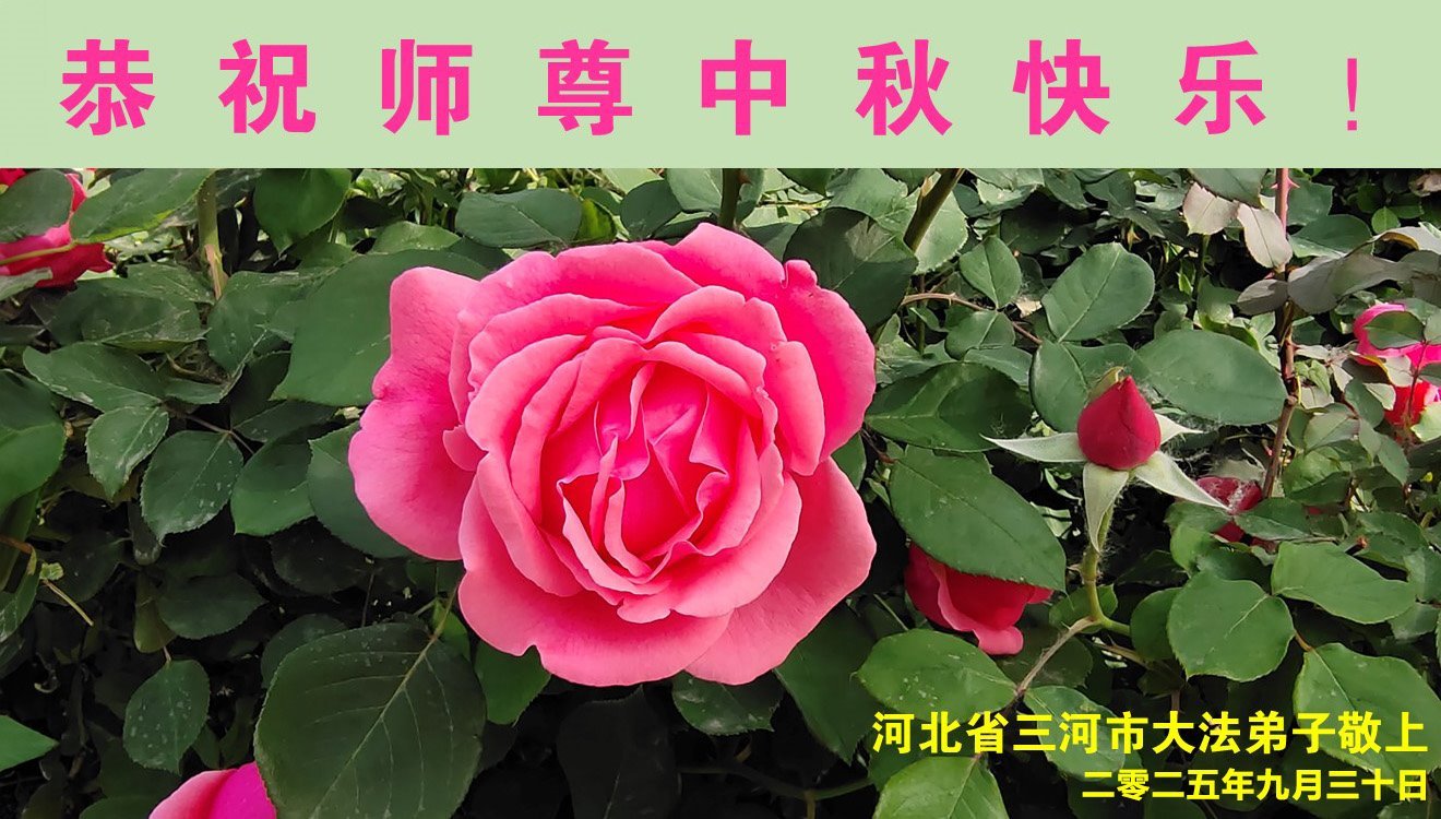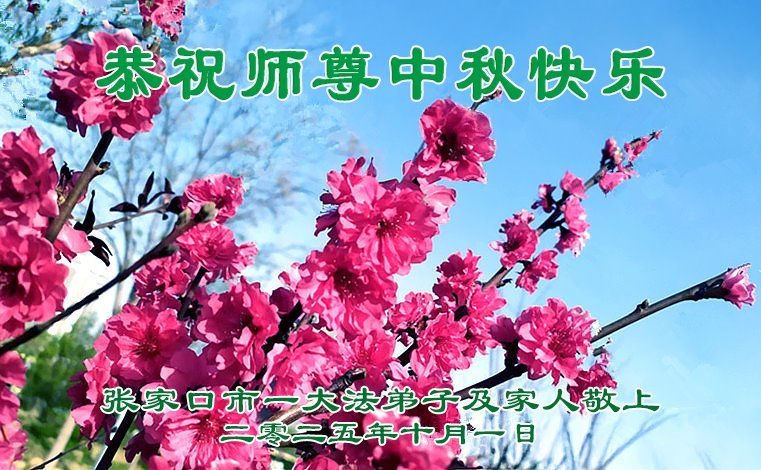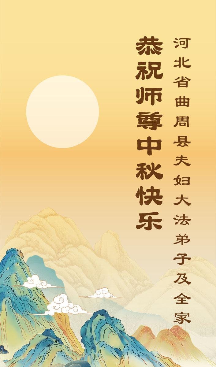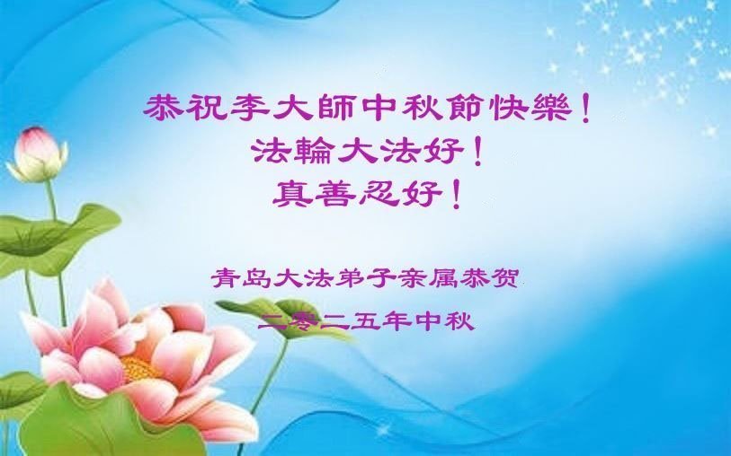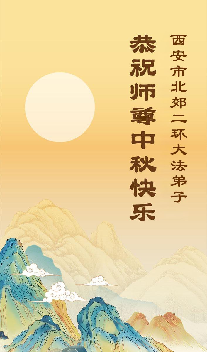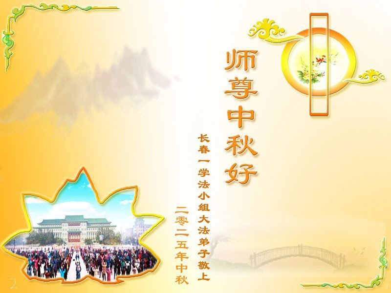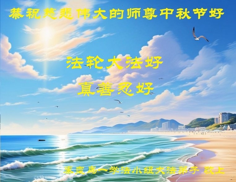 我們大法弟子攜家人和明真相的世人恭祝師尊中秋節快樂!師尊辛苦了!謝謝師尊的慈悲苦度!弟子一定破除舊勢力的安排,消除間隔,形成強大的整體,反迫害,救度眾生。弟子們要多學法,學好法,發好正念,向內找,兌現自己的誓約,跟師父回家。