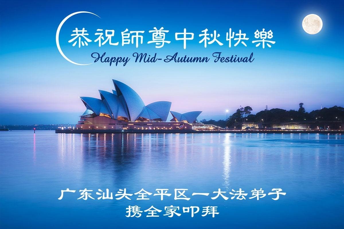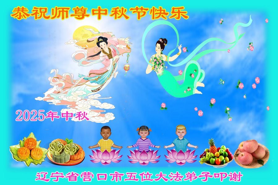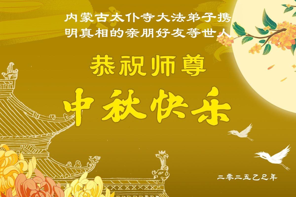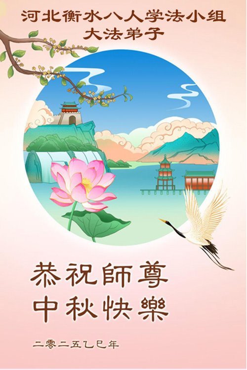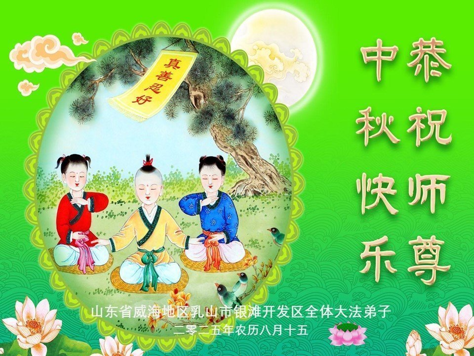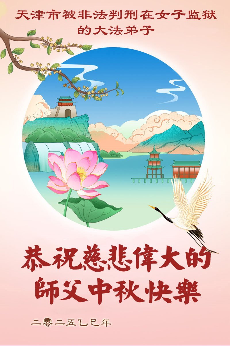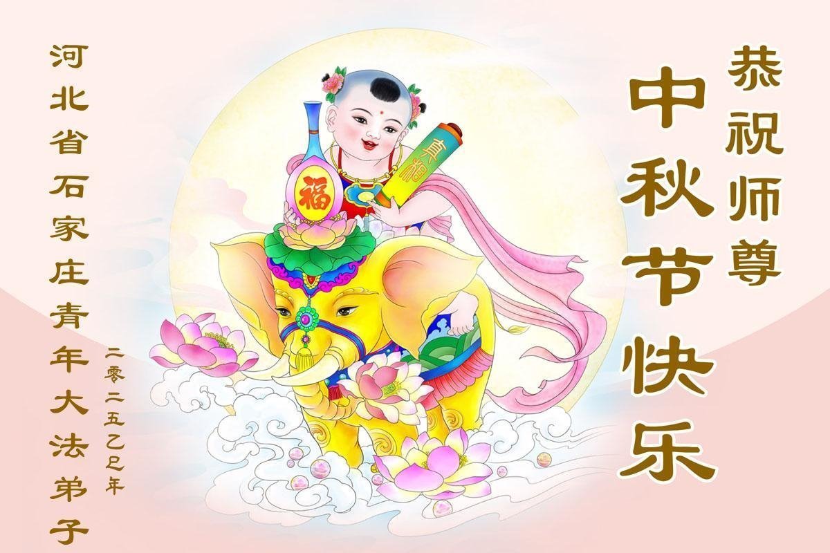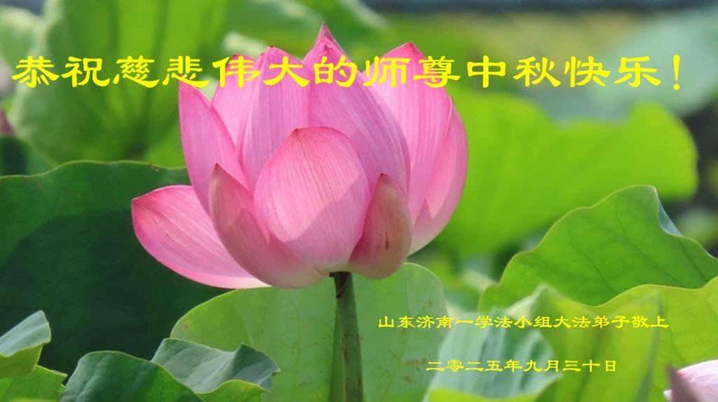 我們大法弟子攜家人和明真相的世人恭祝師尊中秋節快樂!師尊辛苦了!謝謝師尊的慈悲苦度!弟子一定破除舊勢力的安排,消除間隔,形成強大的整體,反迫害,救度眾生。弟子們要多學法,學好法,發好正念,向內找,兌現自己的誓約,跟師父回家。
