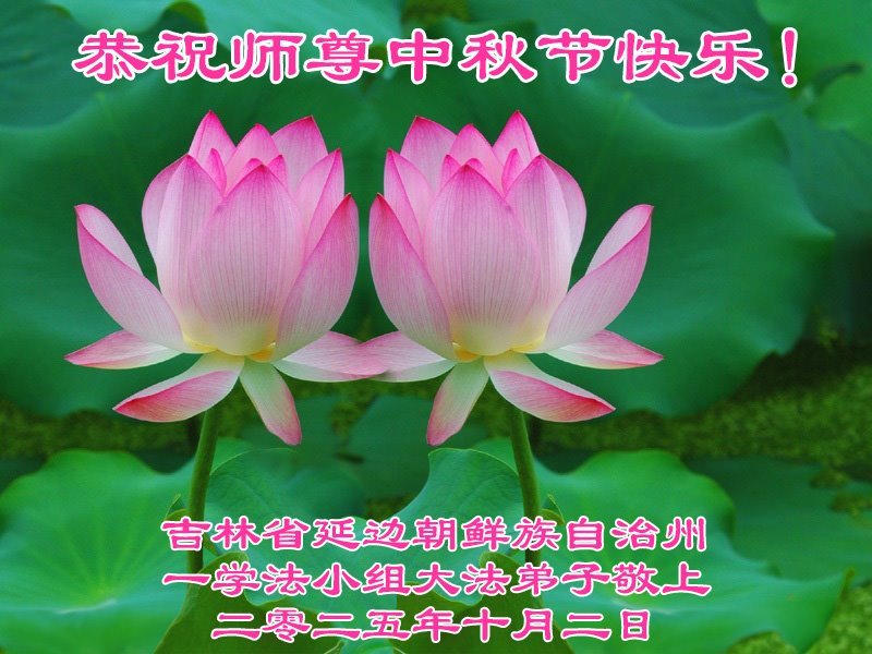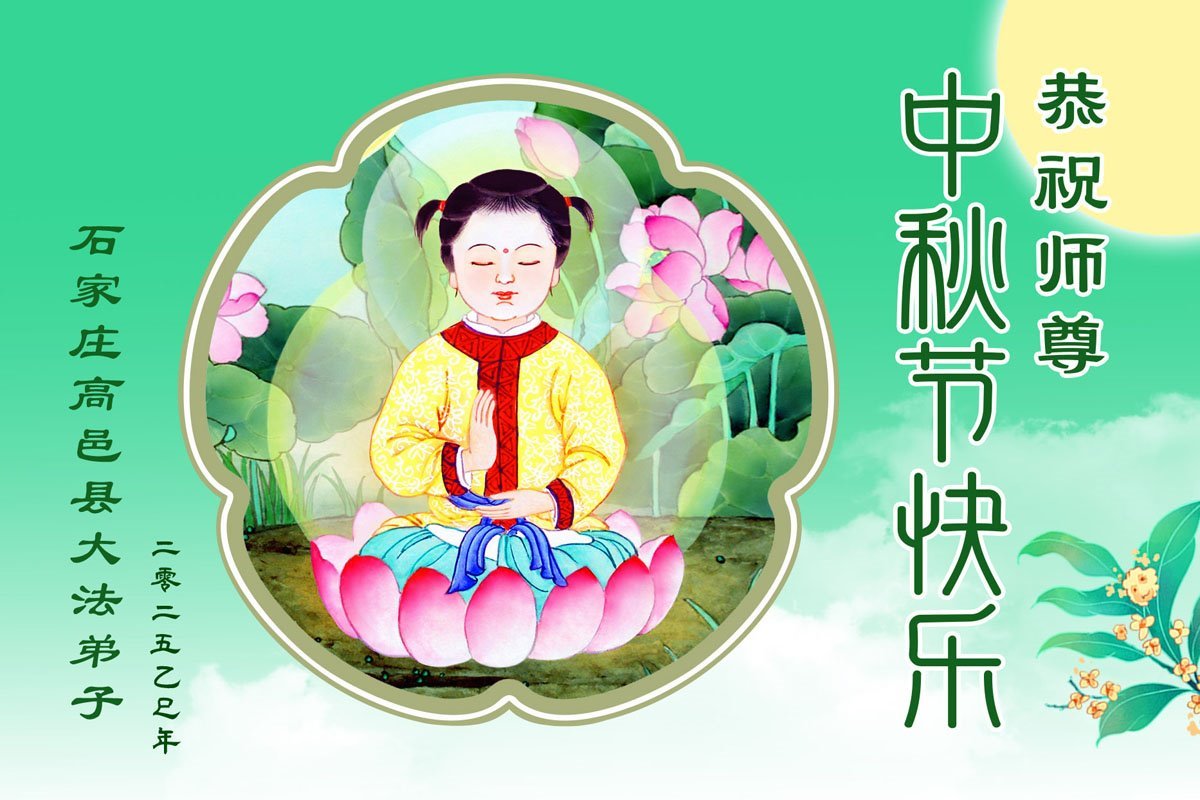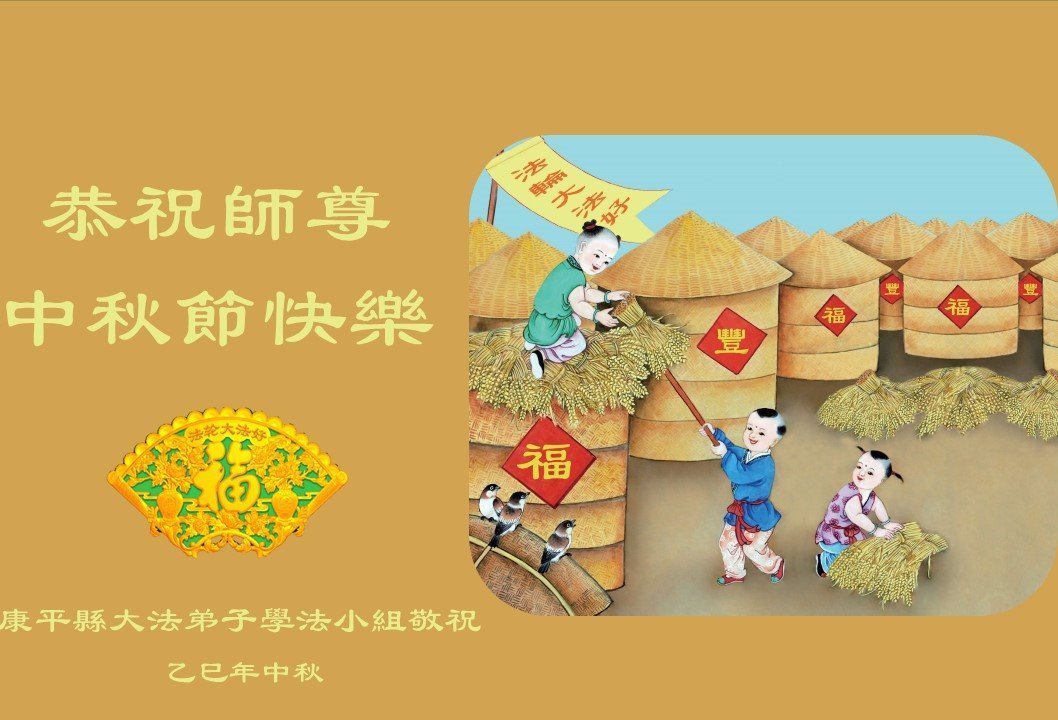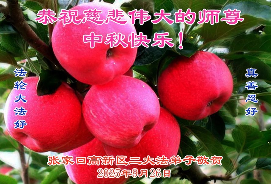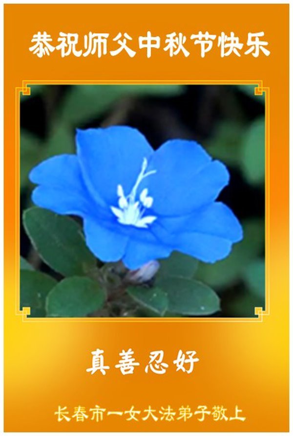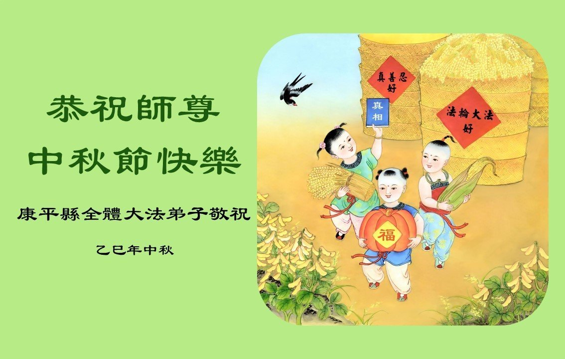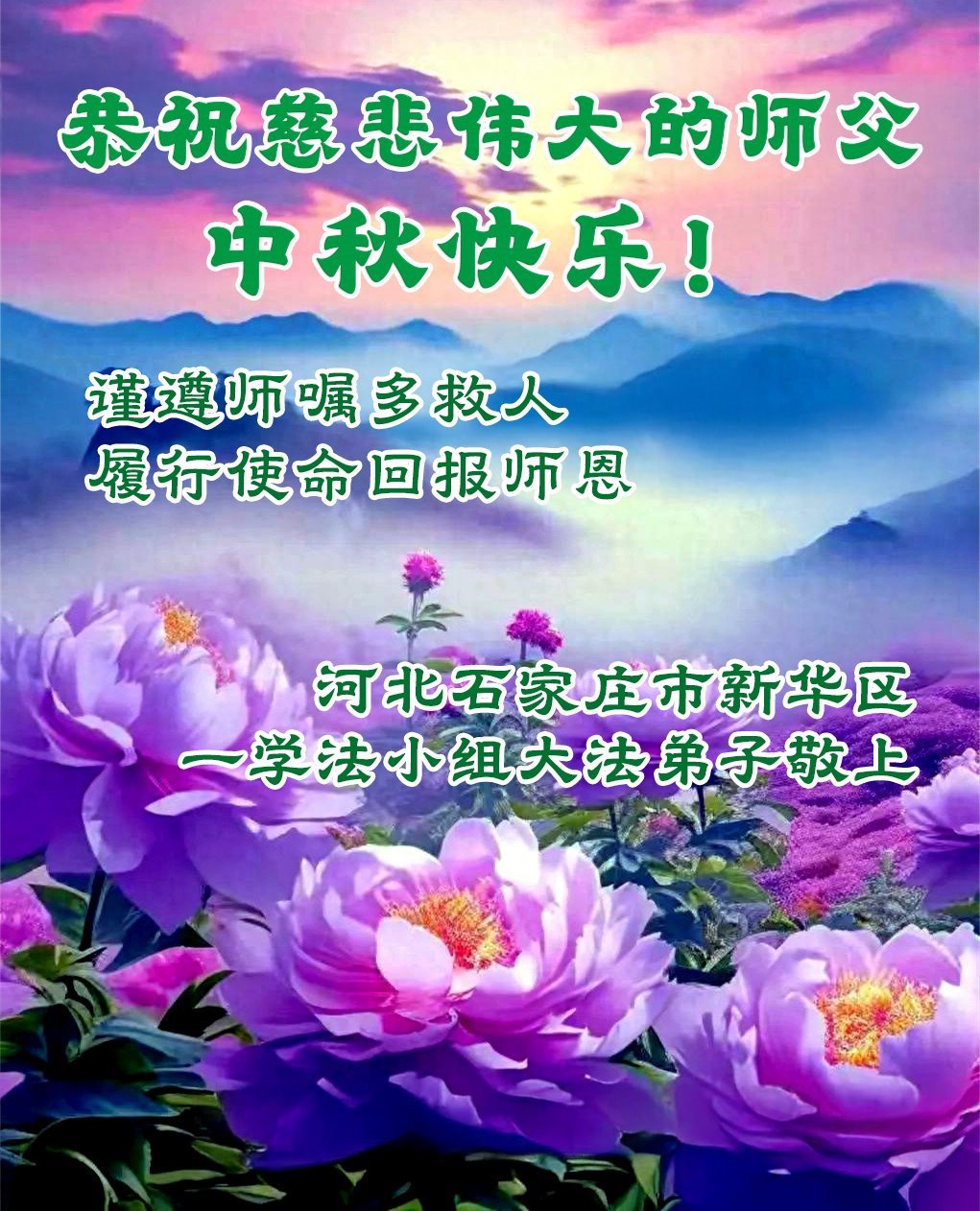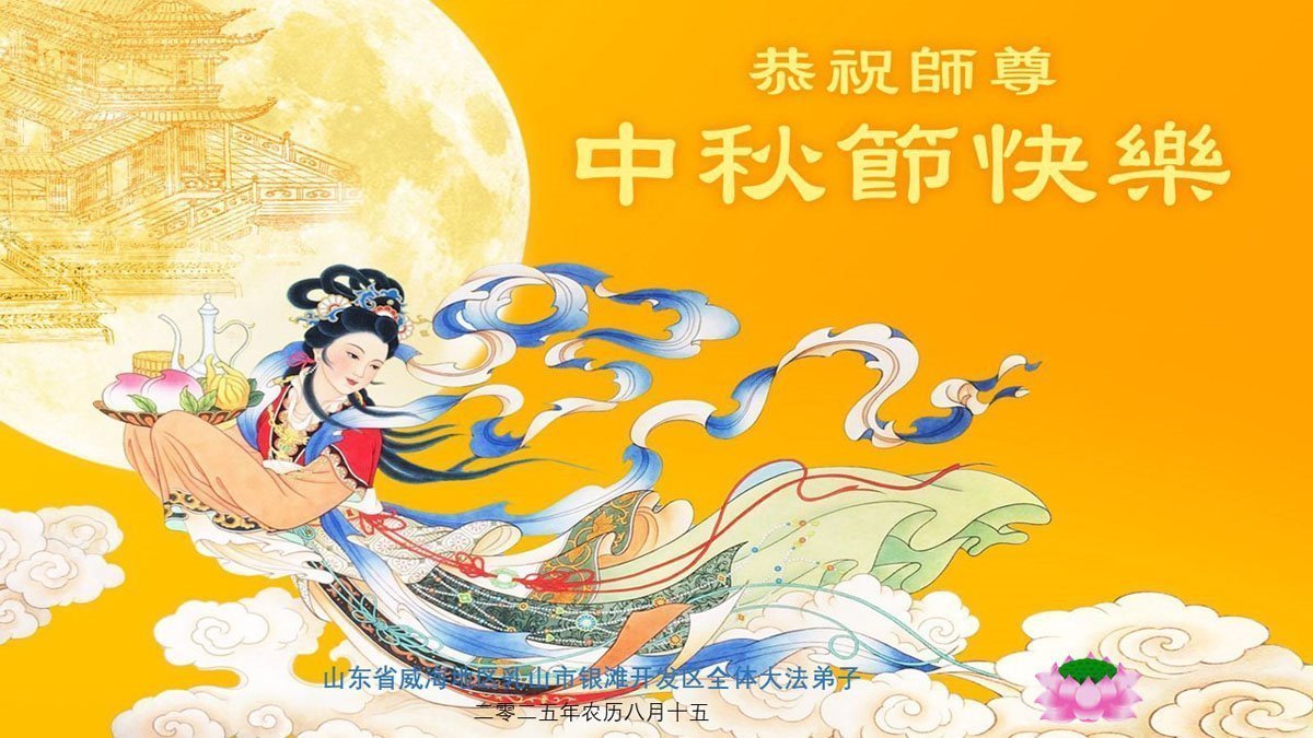 我們大法弟子攜家人和明真相的世人恭祝師尊中秋節快樂!師尊辛苦了!謝謝師尊的慈悲苦度!弟子一定破除舊勢力的安排,消除間隔,形成強大的整體,反迫害,救度眾生。弟子們要多學法,學好法,發好正念,向內找,兌現自己的誓約,跟師父回家。