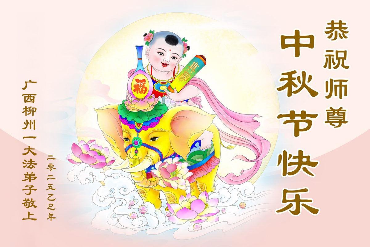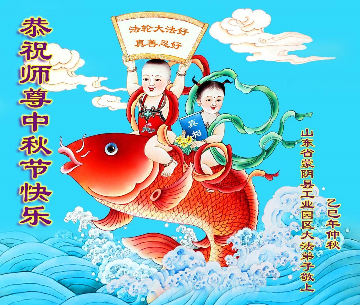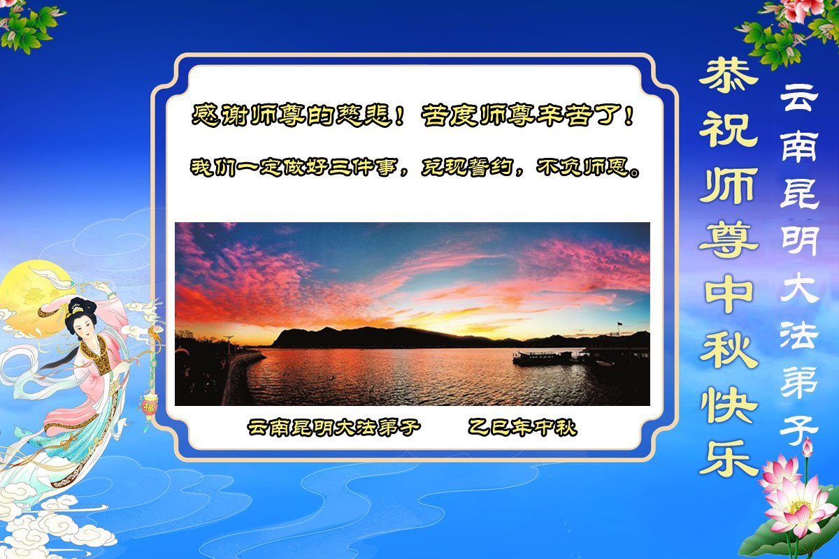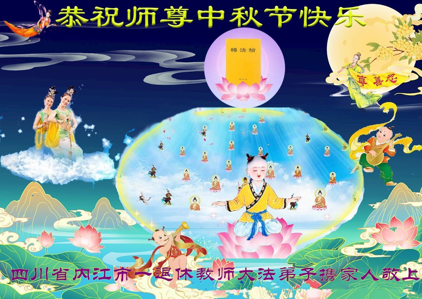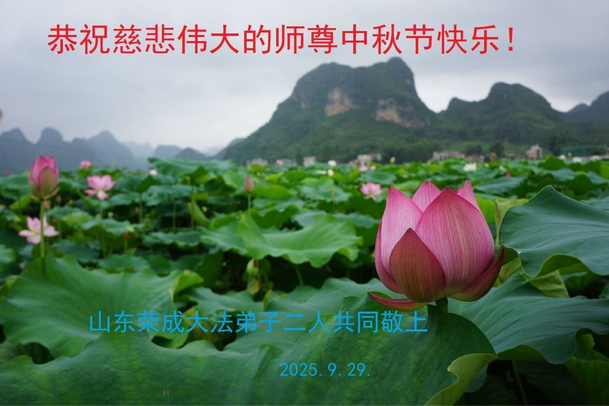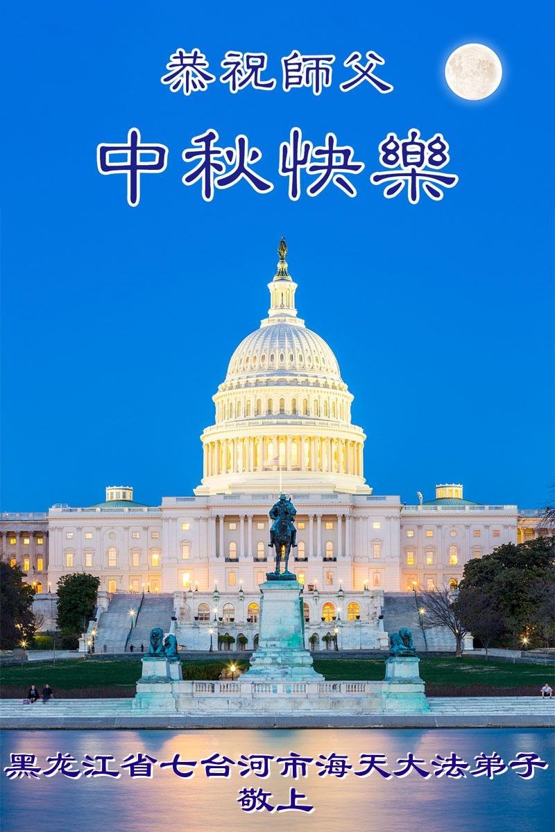 我們大法弟子攜家人和明真相的世人恭祝師尊中秋節快樂!師尊辛苦了!謝謝師尊的慈悲苦度!弟子一定破除舊勢力的安排,消除間隔,形成強大的整體,反迫害,救度眾生。弟子們要多學法,學好法,發好正念,向內找,兌現自己的誓約,跟師父回家。