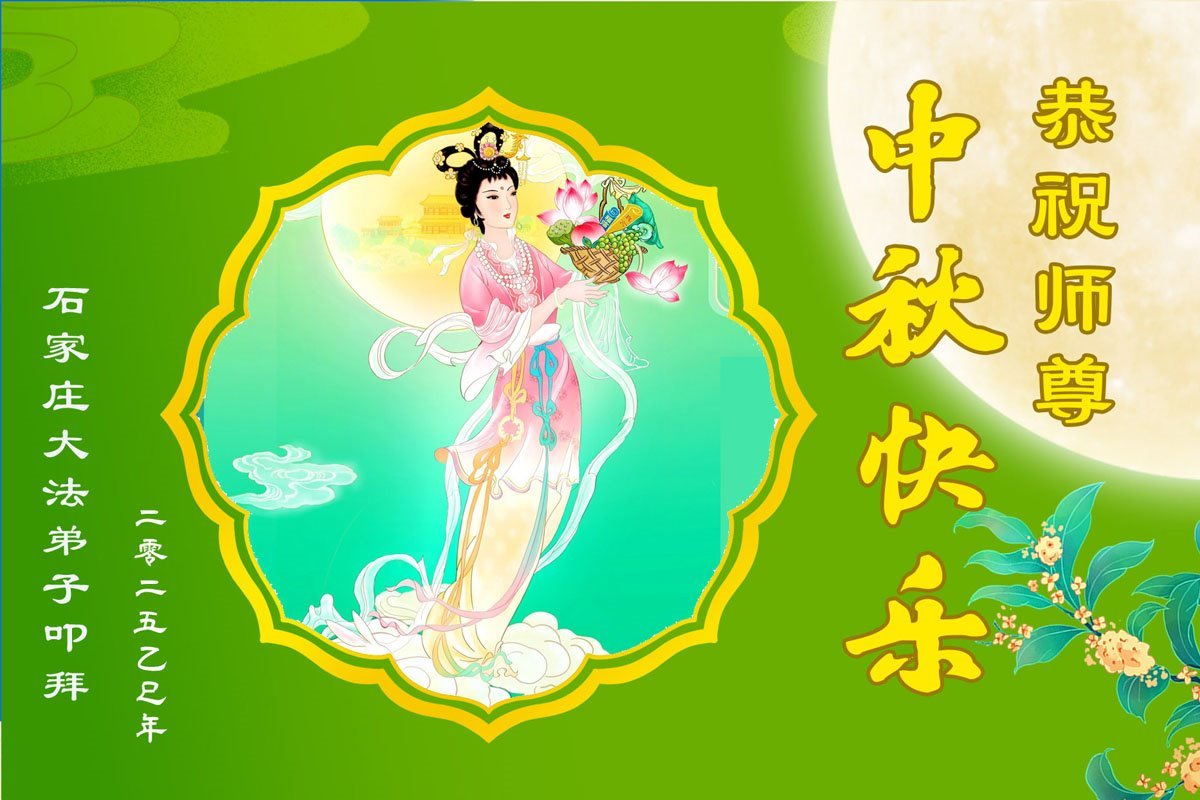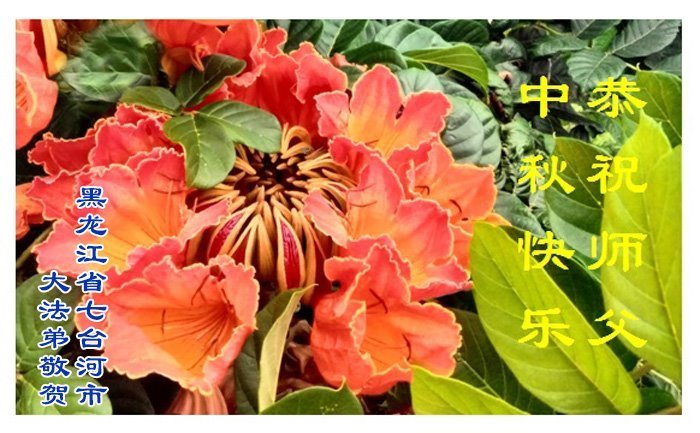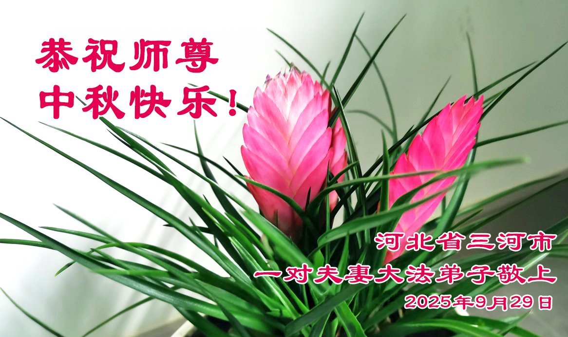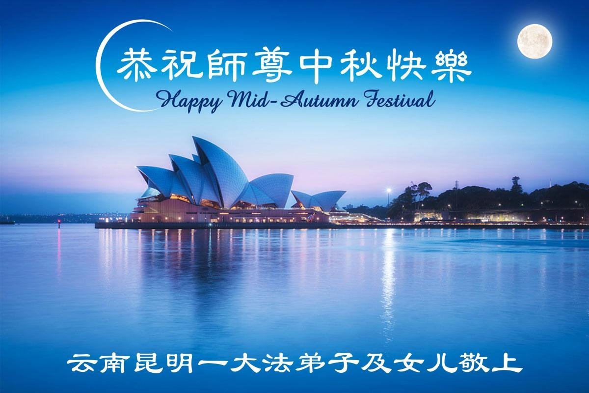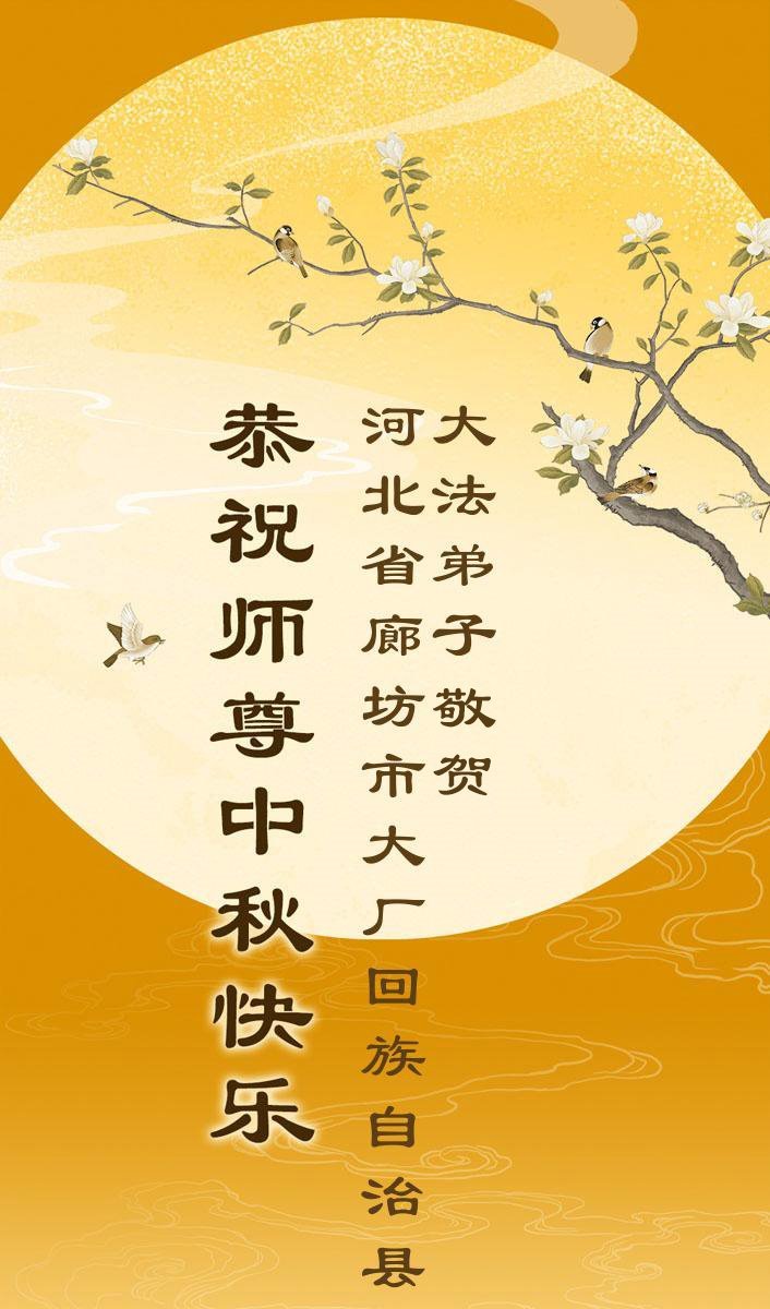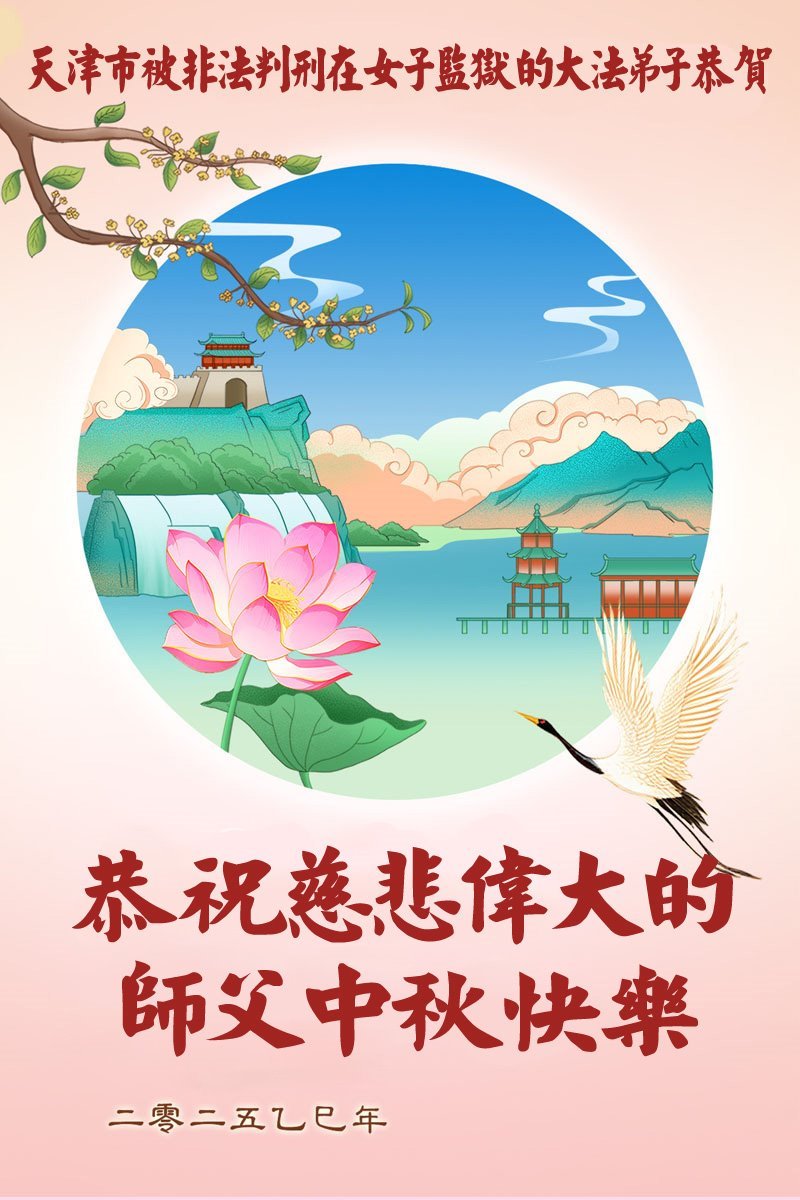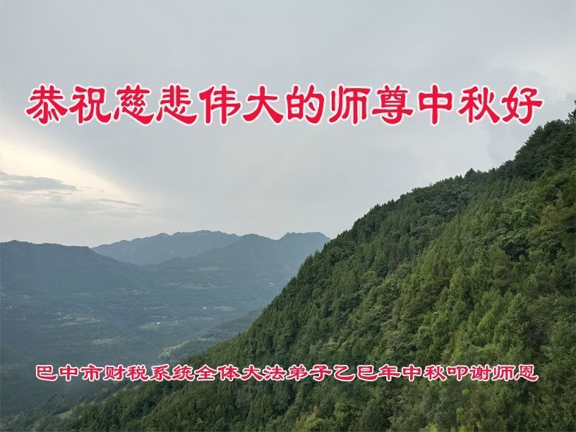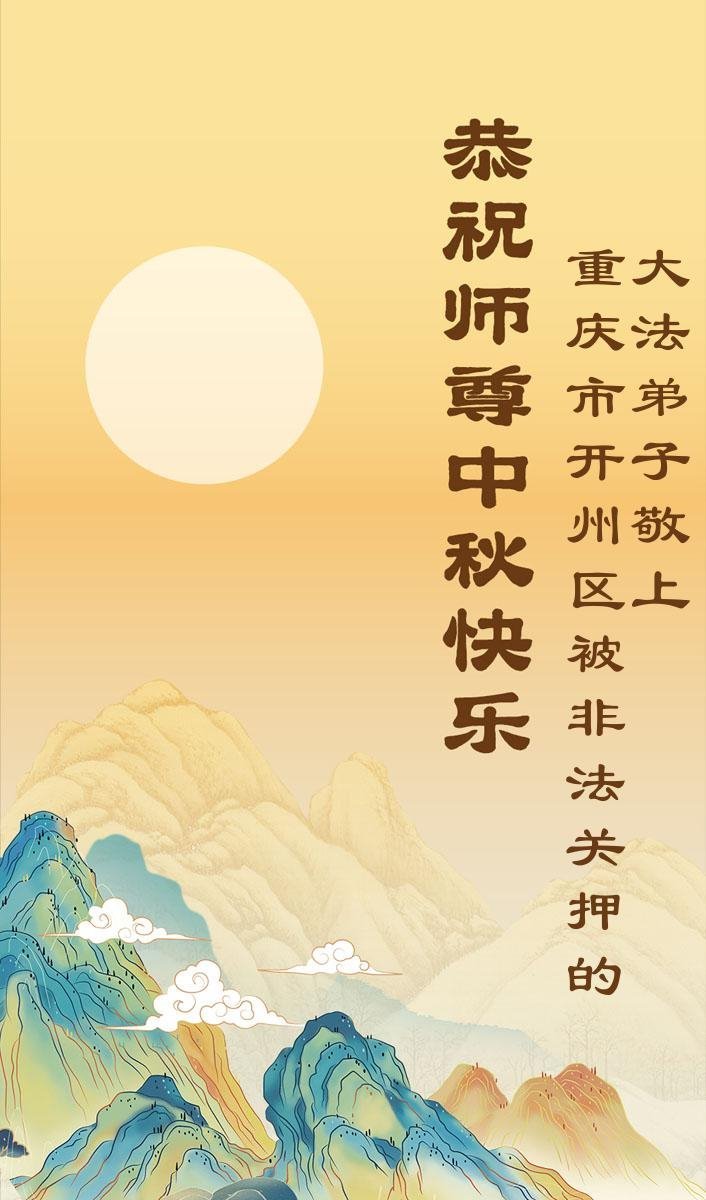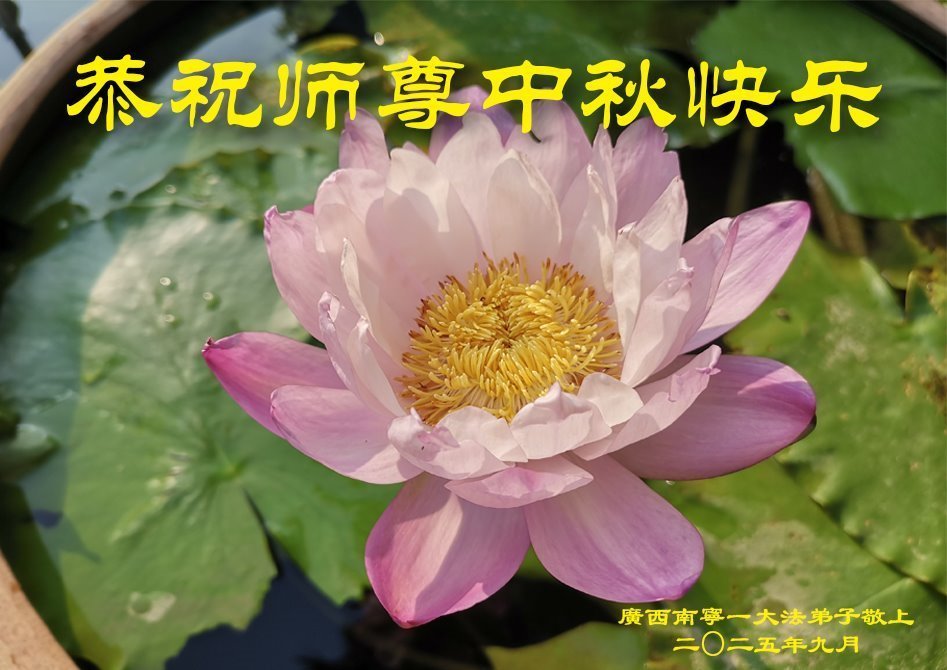 我們大法弟子攜家人和明真相的世人恭祝師尊中秋節快樂!師尊辛苦了!謝謝師尊的慈悲苦度!弟子一定破除舊勢力的安排,消除間隔,形成強大的整體,反迫害,救度眾生。弟子們要多學法,學好法,發好正念,向內找,兌現自己的誓約,跟師父回家。