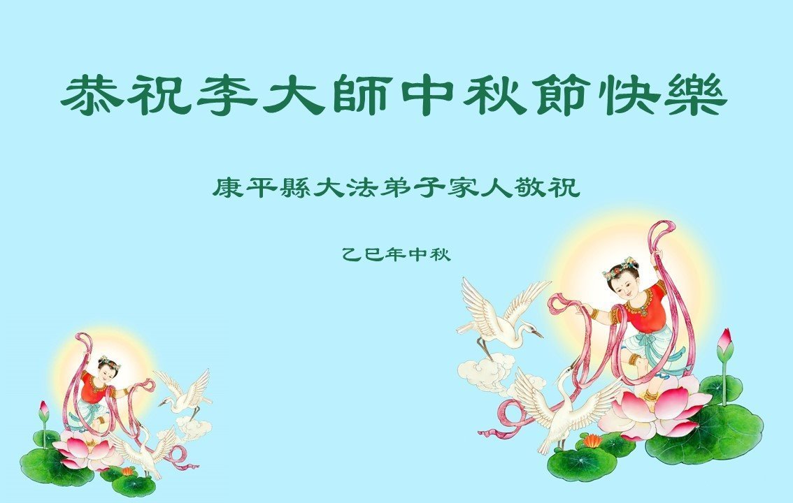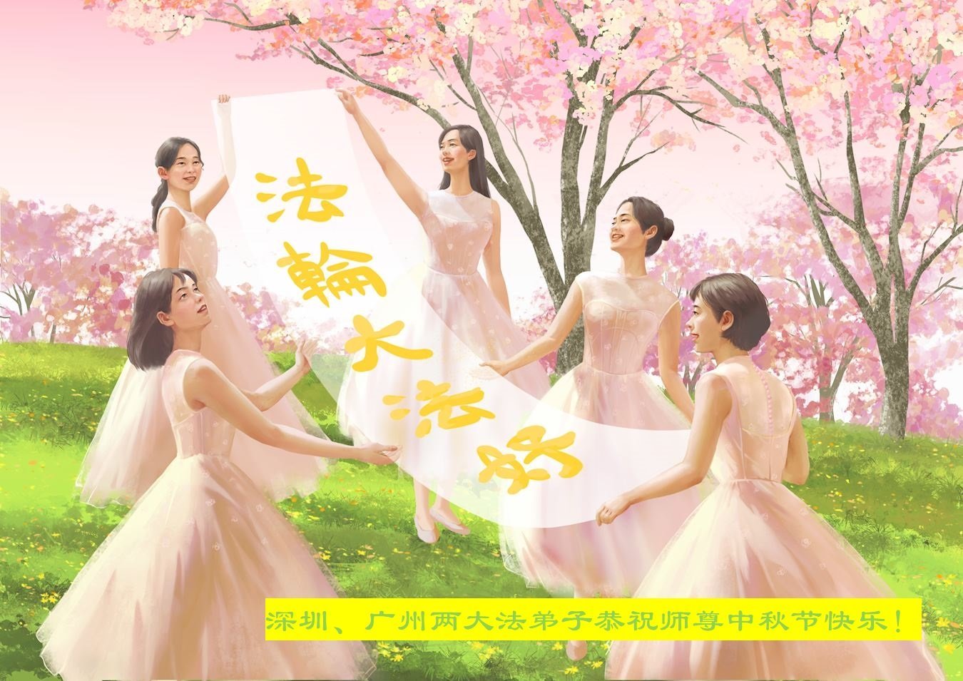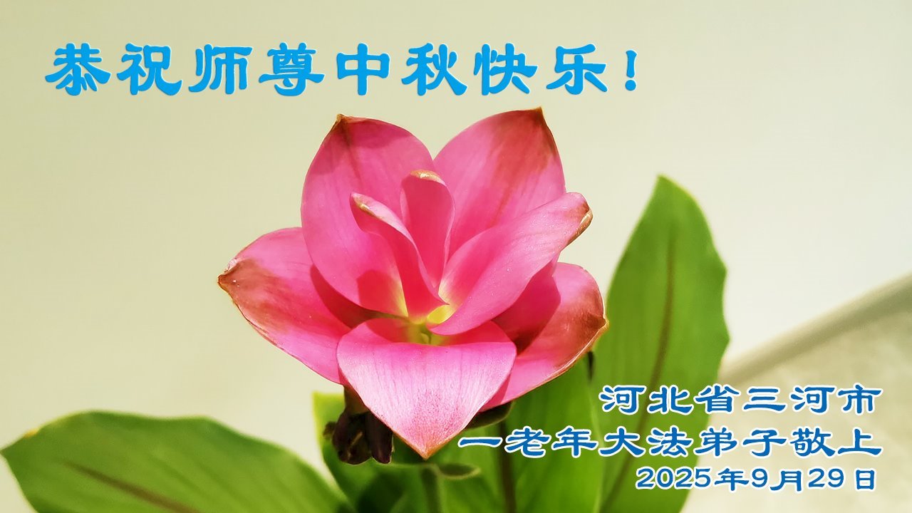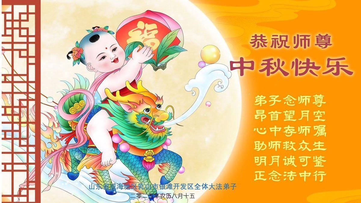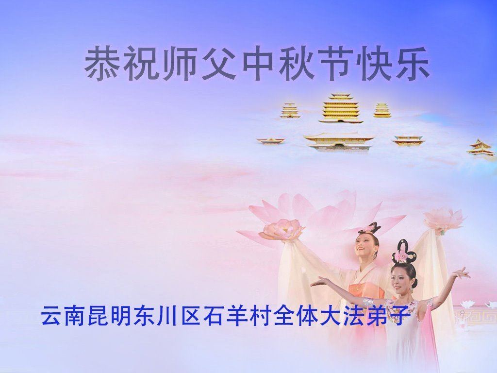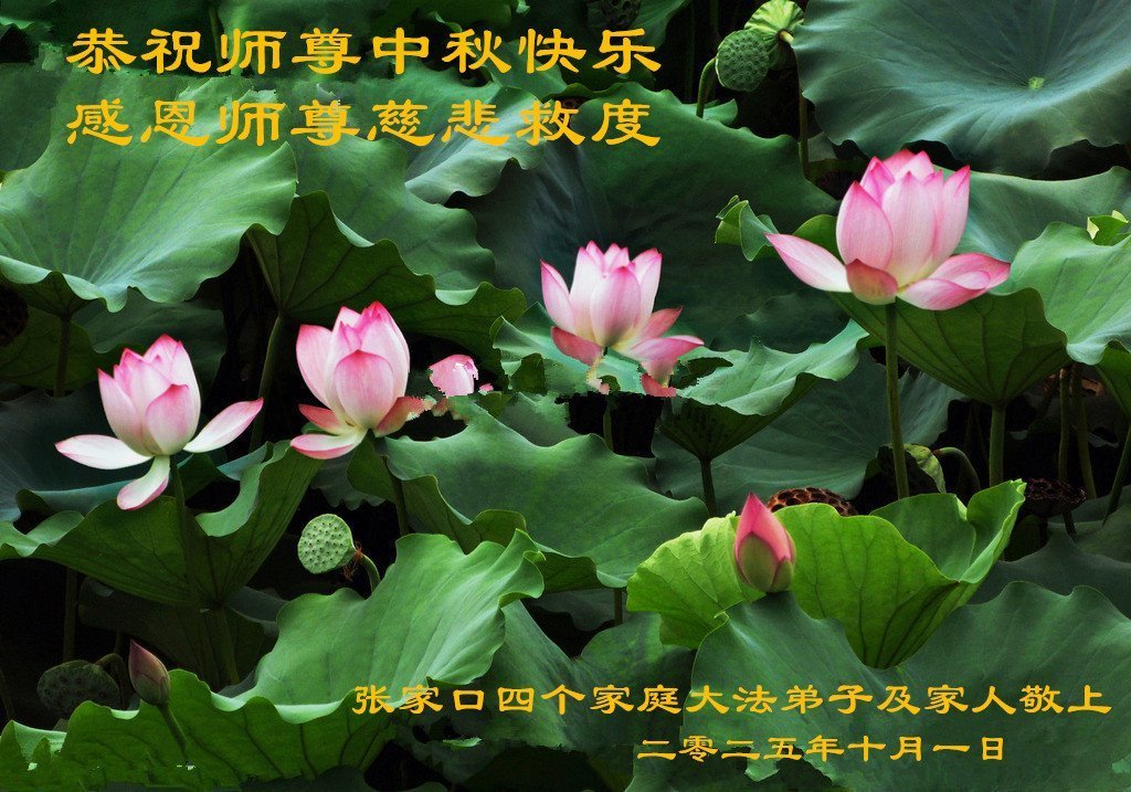 我們大法弟子攜家人和明真相的世人恭祝師尊中秋節快樂!師尊辛苦了!謝謝師尊的慈悲苦度!弟子一定破除舊勢力的安排,消除間隔,形成強大的整體,反迫害,救度眾生。弟子們要多學法,學好法,發好正念,向內找,兌現自己的誓約,跟師父回家。