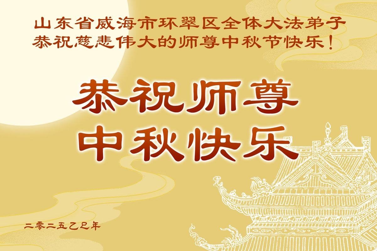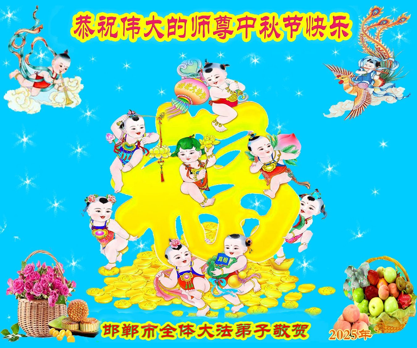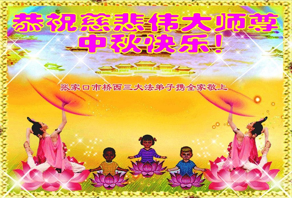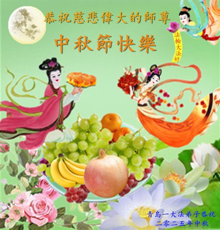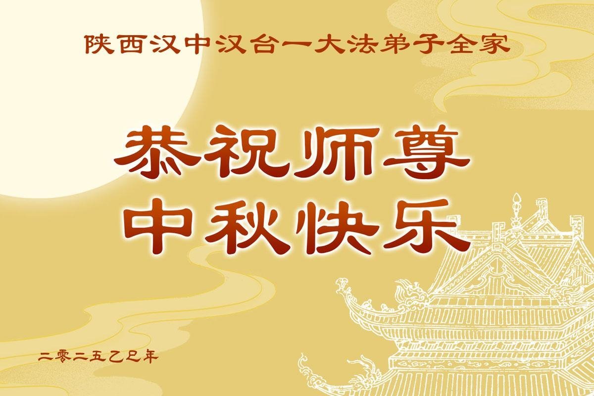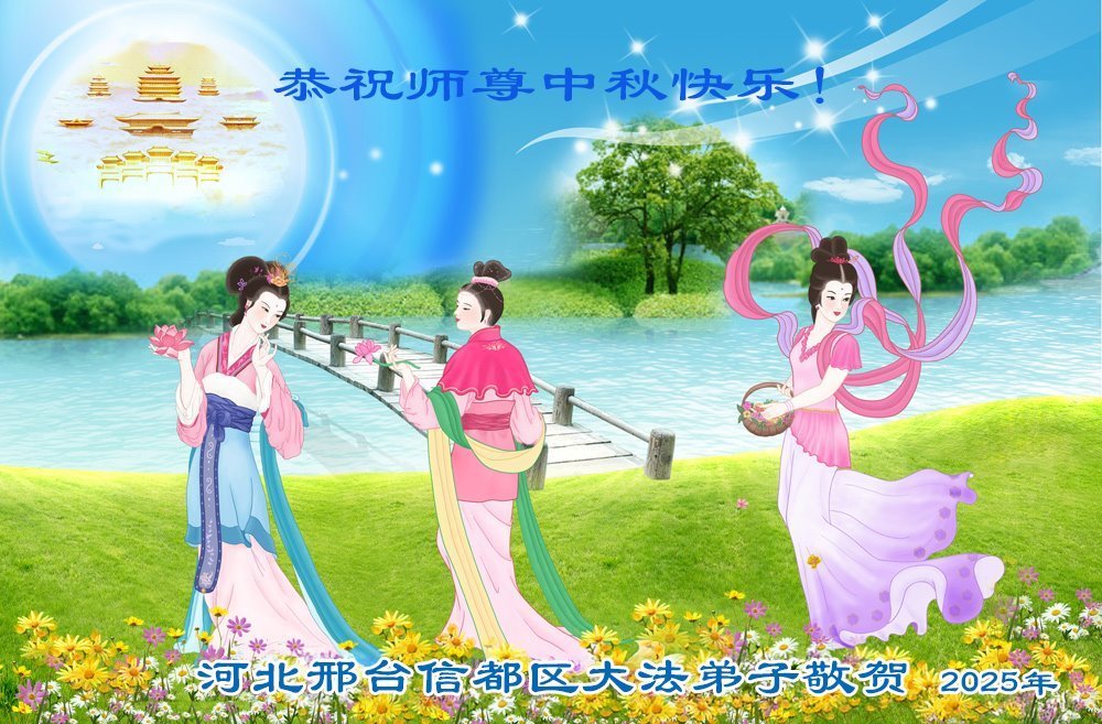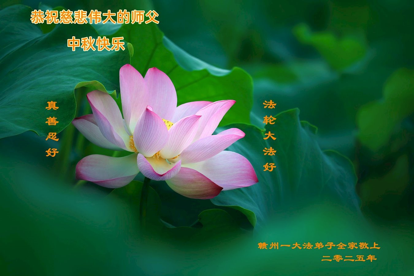 我們大法弟子攜家人和明真相的世人恭祝師尊中秋節快樂!師尊辛苦了!謝謝師尊的慈悲苦度!弟子一定破除舊勢力的安排,消除間隔,形成強大的整體,反迫害,救度眾生。弟子們要多學法,學好法,發好正念,向內找,兌現自己的誓約,跟師父回家。