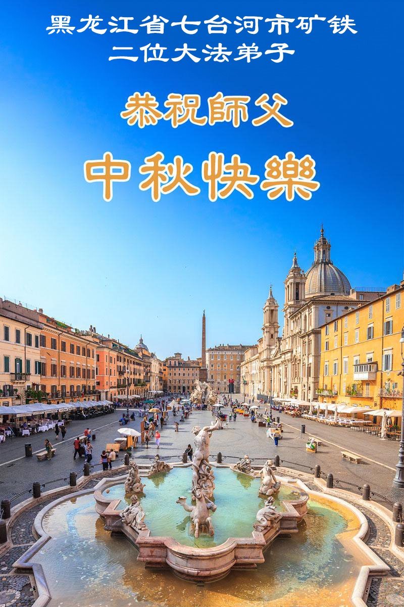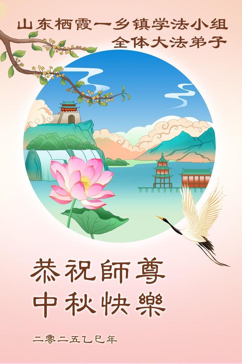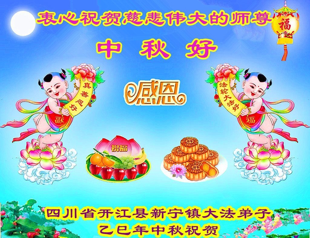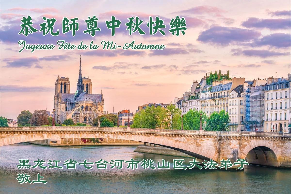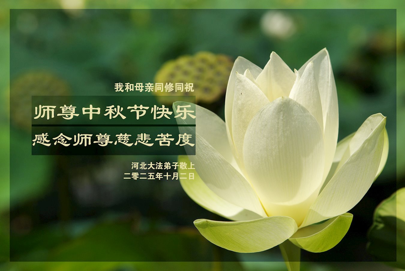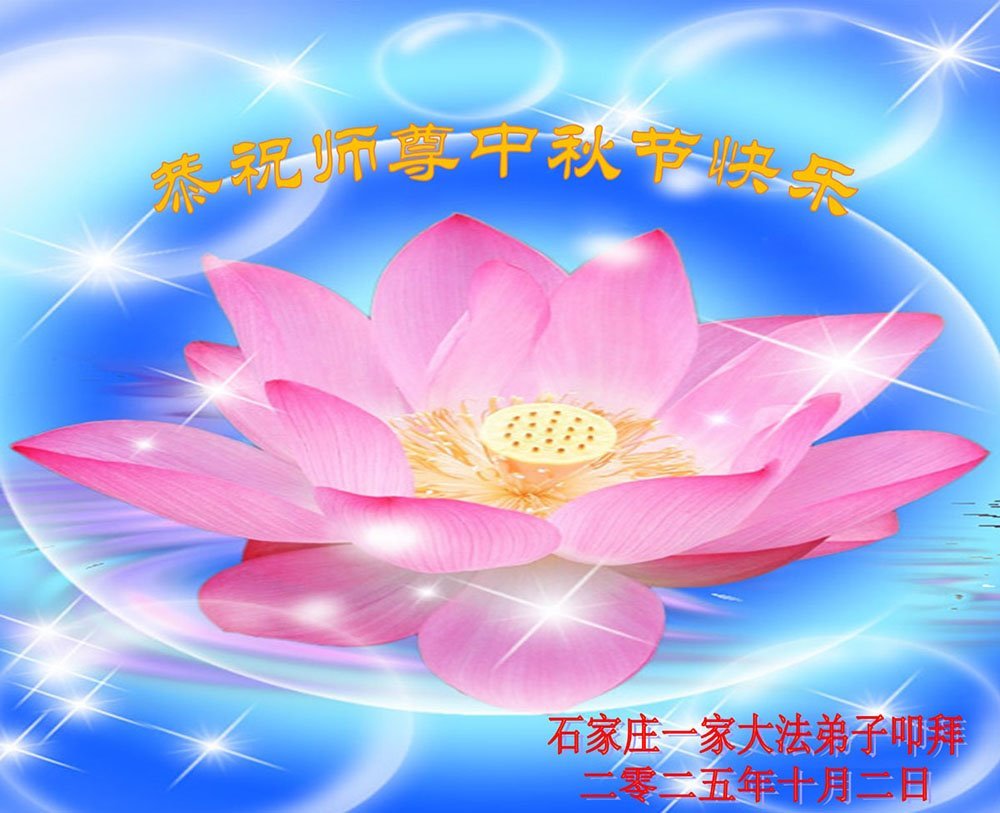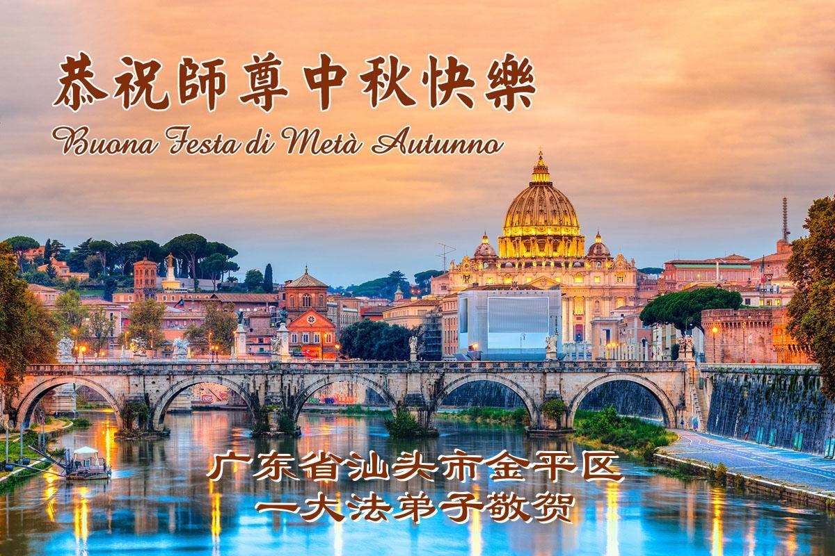 我們大法弟子攜家人和明真相的世人恭祝師尊中秋節快樂!師尊辛苦了!謝謝師尊的慈悲苦度!弟子一定破除舊勢力的安排,消除間隔,形成強大的整體,反迫害,救度眾生。弟子們要多學法,學好法,發好正念,向內找,兌現自己的誓約,跟師父回家。