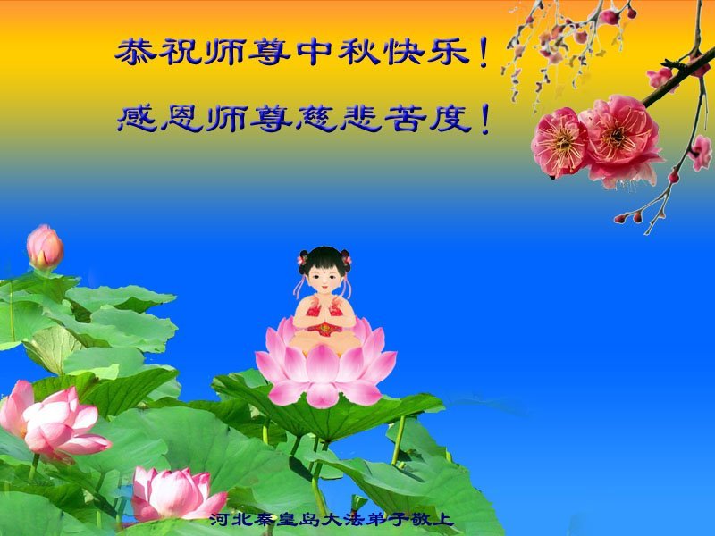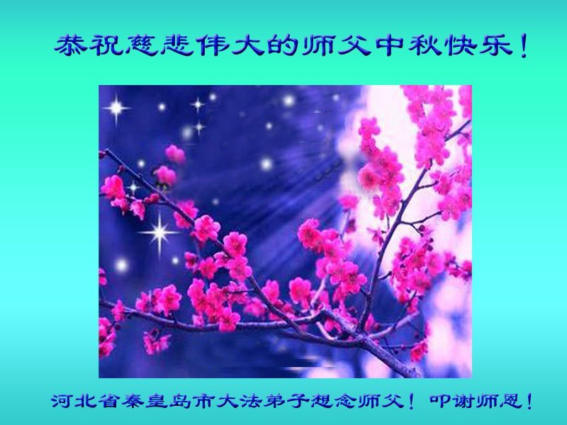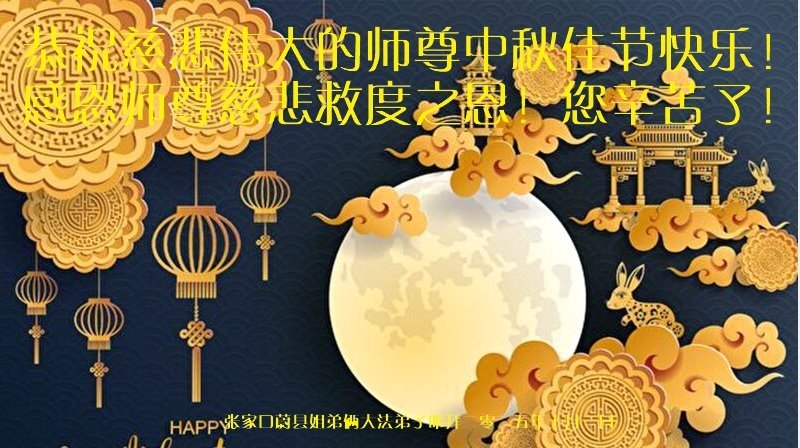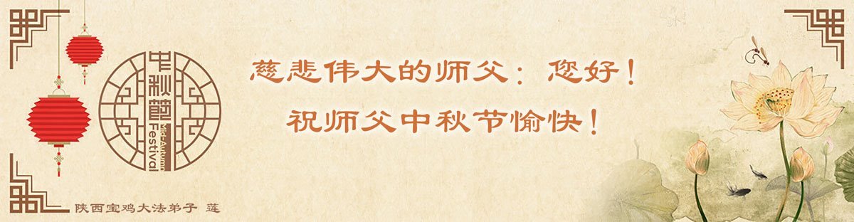 尊敬的師尊您好!弟子想念師尊!師尊為弟子操盡了心!每時每刻都在看護點悟著弟子,弟子才能跟著師尊走到今天!用盡人間的語言也無法道盡師尊對弟子的慈悲苦度!在中秋佳節即將來臨之際,弟子誠摯向偉大的師尊問好!恭祝師父中秋節好!