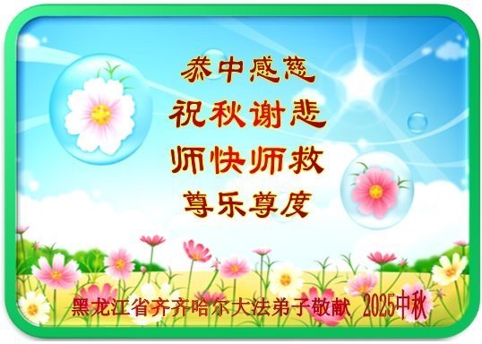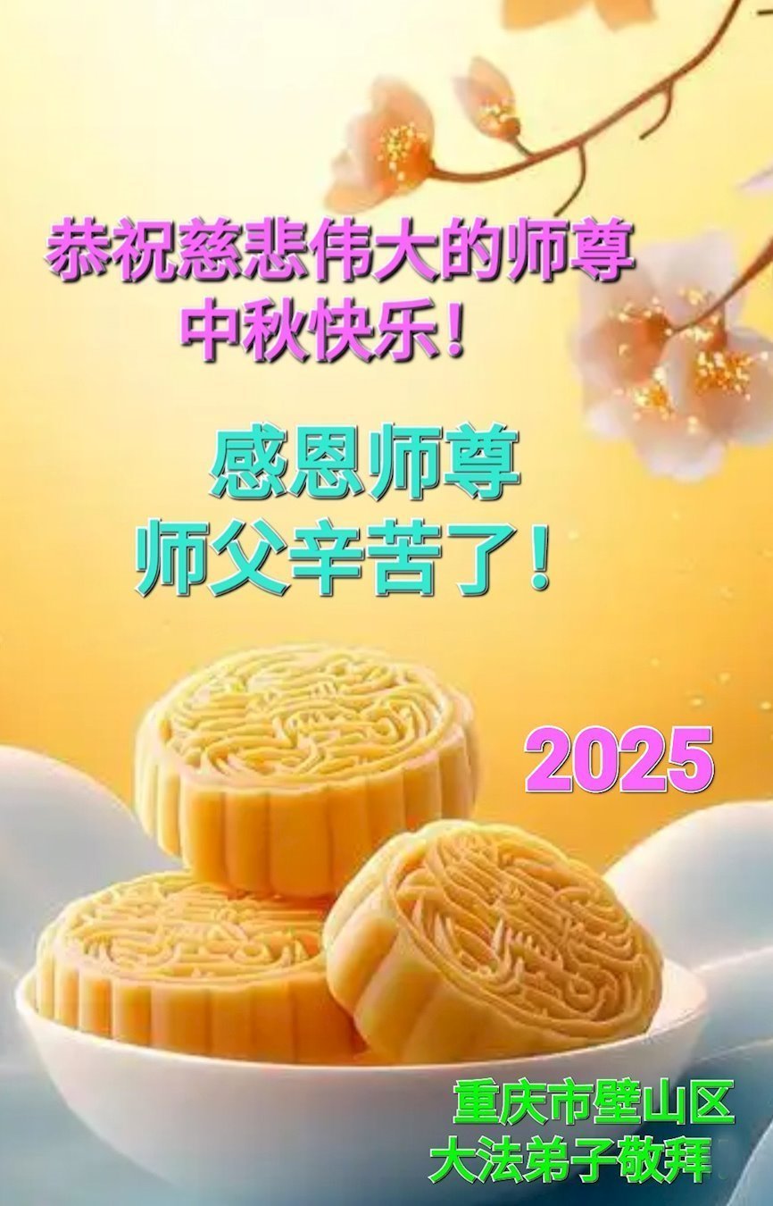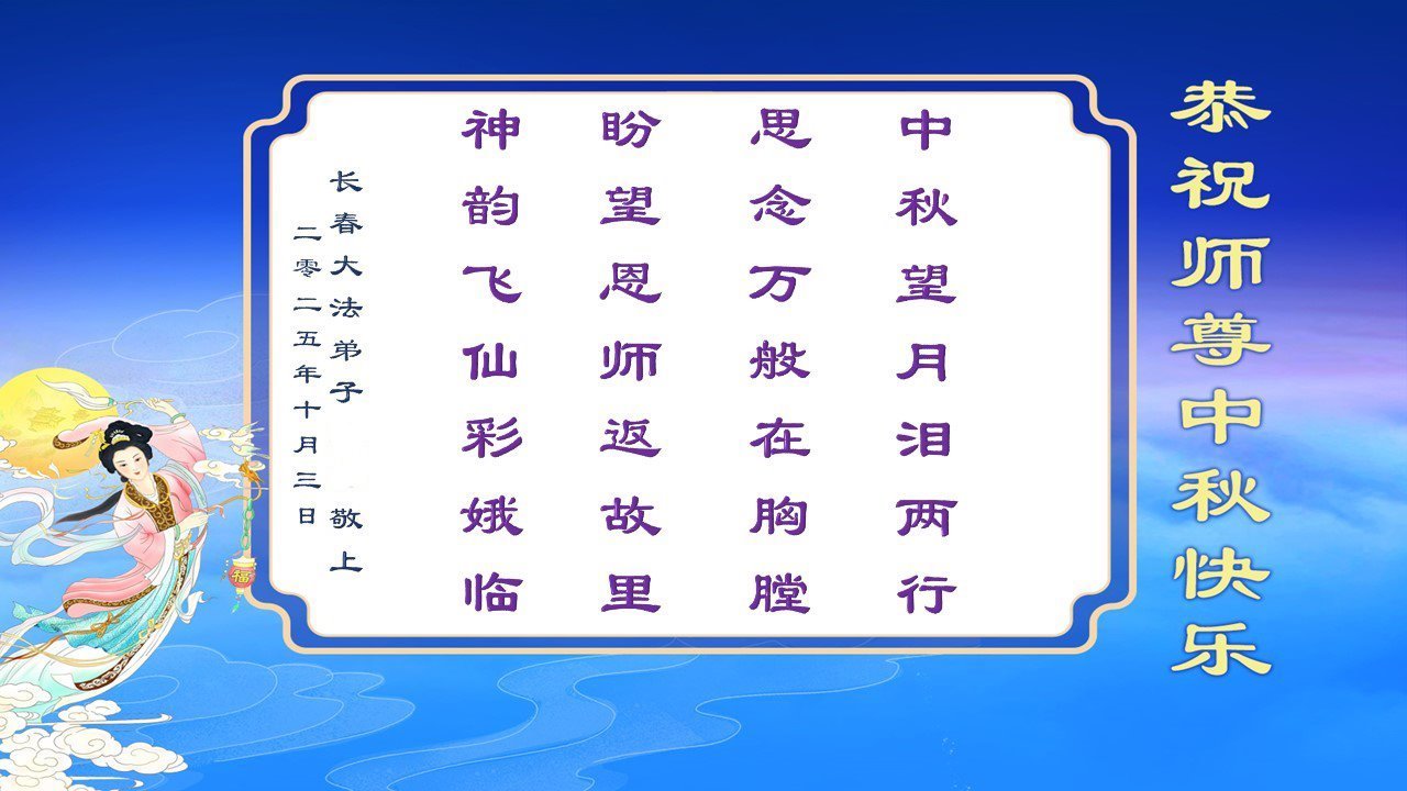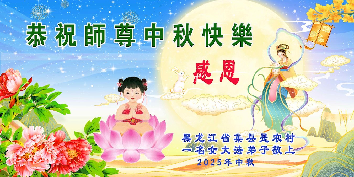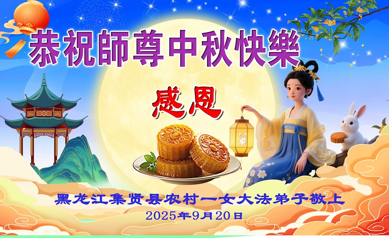 【明慧網二零二五年十月五日】(明慧網通訊員綜合報導)海天一碧月兒圓,隨師正法在人間。在這中秋佳節萬家團圓的日子裏,中國大陸各省市大法弟子們萬分想念師父,感恩師父!感念師尊親臨世間傳大法,賜予眾生得救的萬古機緣。不管未來的路是艱難還是平坦,弟子們都會義無反顧的緊隨師尊,把陽光與希望洒向人間。
