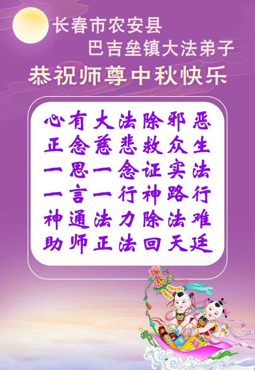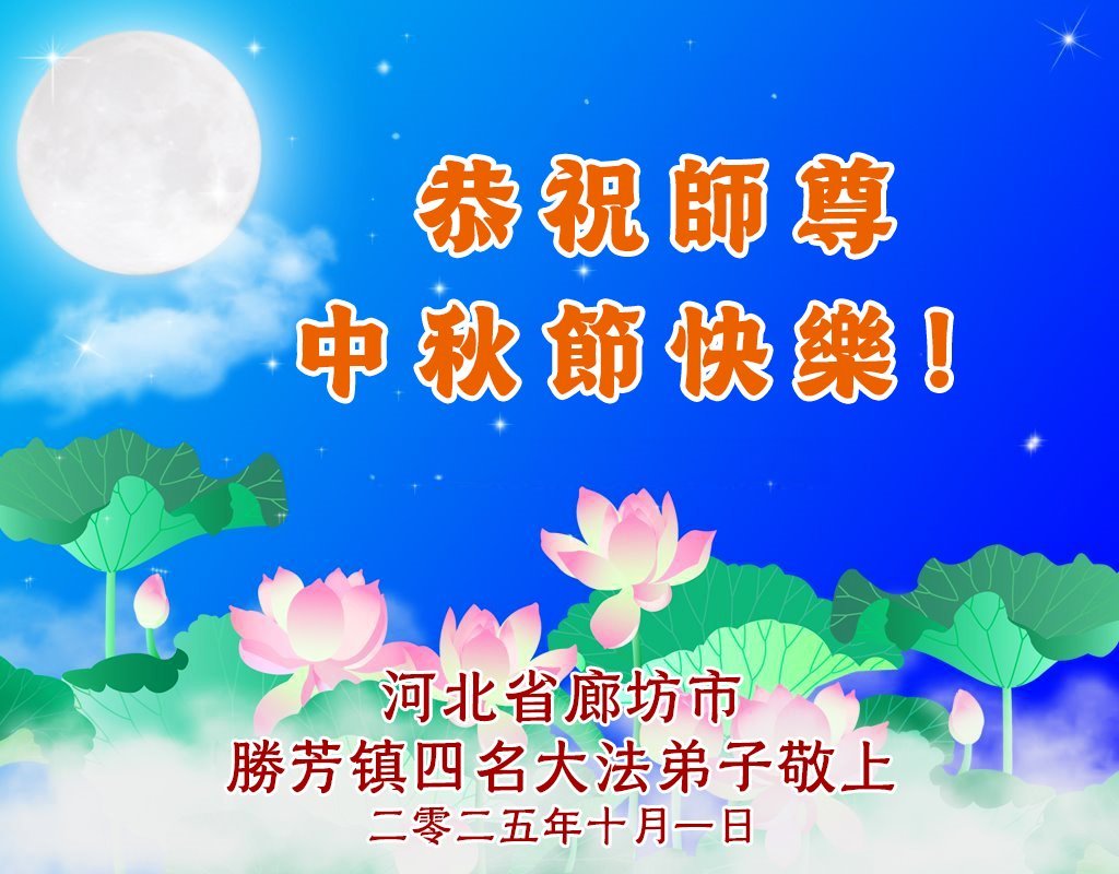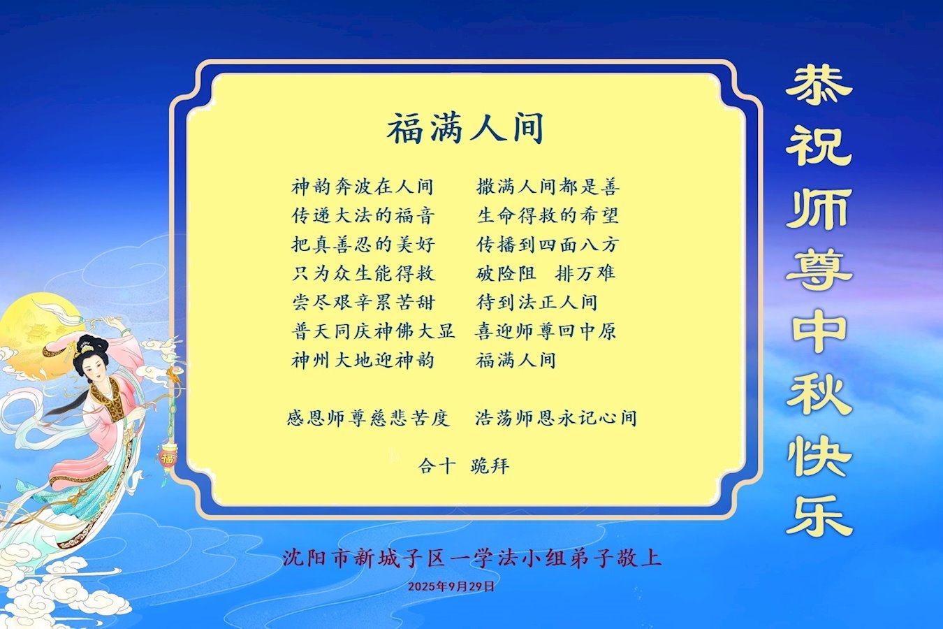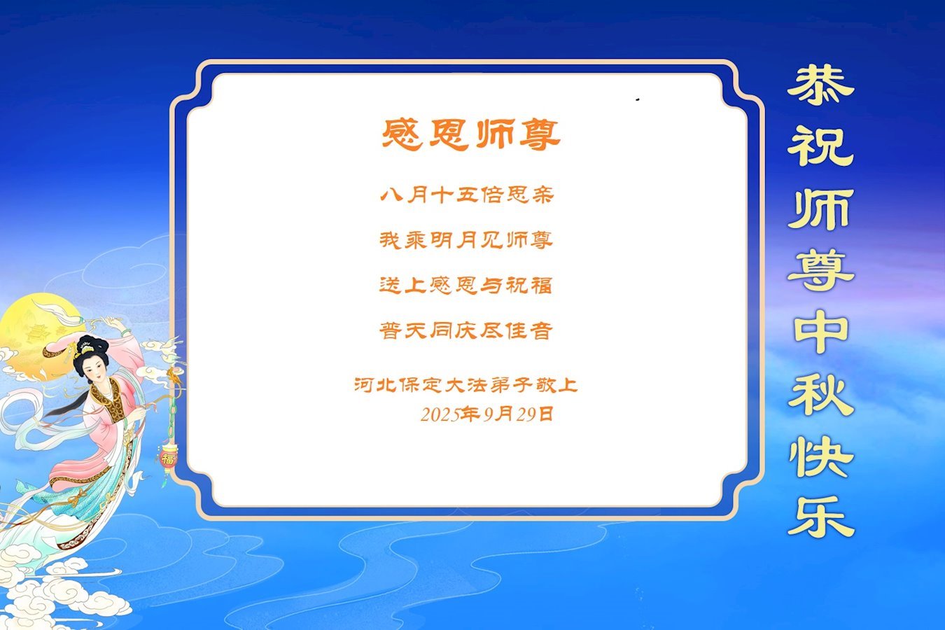 【明慧網二零二五年十月五日】(明慧網通訊員綜合報導)海天一碧月兒圓,隨師正法在人間。在這中秋佳節萬家團圓的日子裏,中國大陸各省市大法弟子們萬分想念師父,感恩師父!感念師尊親臨世間傳大法,賜予眾生得救的萬古機緣。不管未來的路是艱難還是平坦,弟子們都會義無反顧的緊隨師尊,把陽光與希望洒向人間。