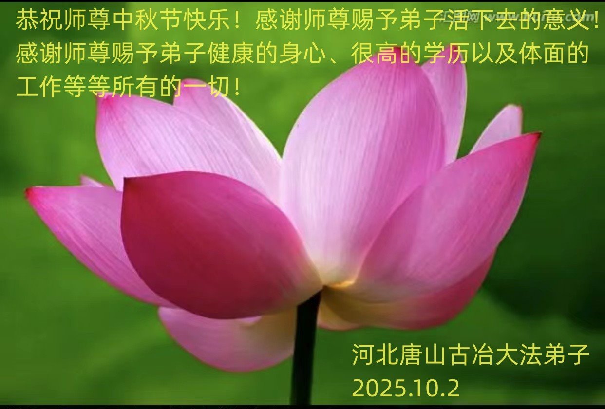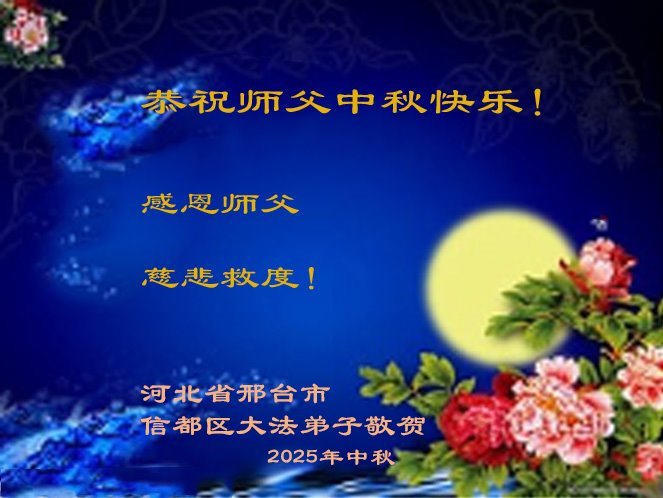 又是中秋團圓日,每逢佳節倍思親。感恩師父慈悲保護!感恩師父為弟子、為眾生得救延續的分分秒秒!師父辛苦了!我們現在真正明白了維護大法就是珍惜生命。弟子現在每天發正念,背法,促三退。謝謝師父賜予弟子證實大法的榮耀!期盼師父早日回國團圓!