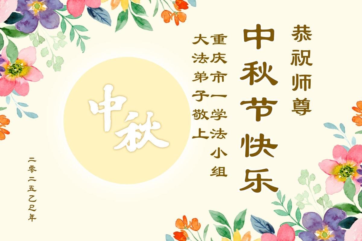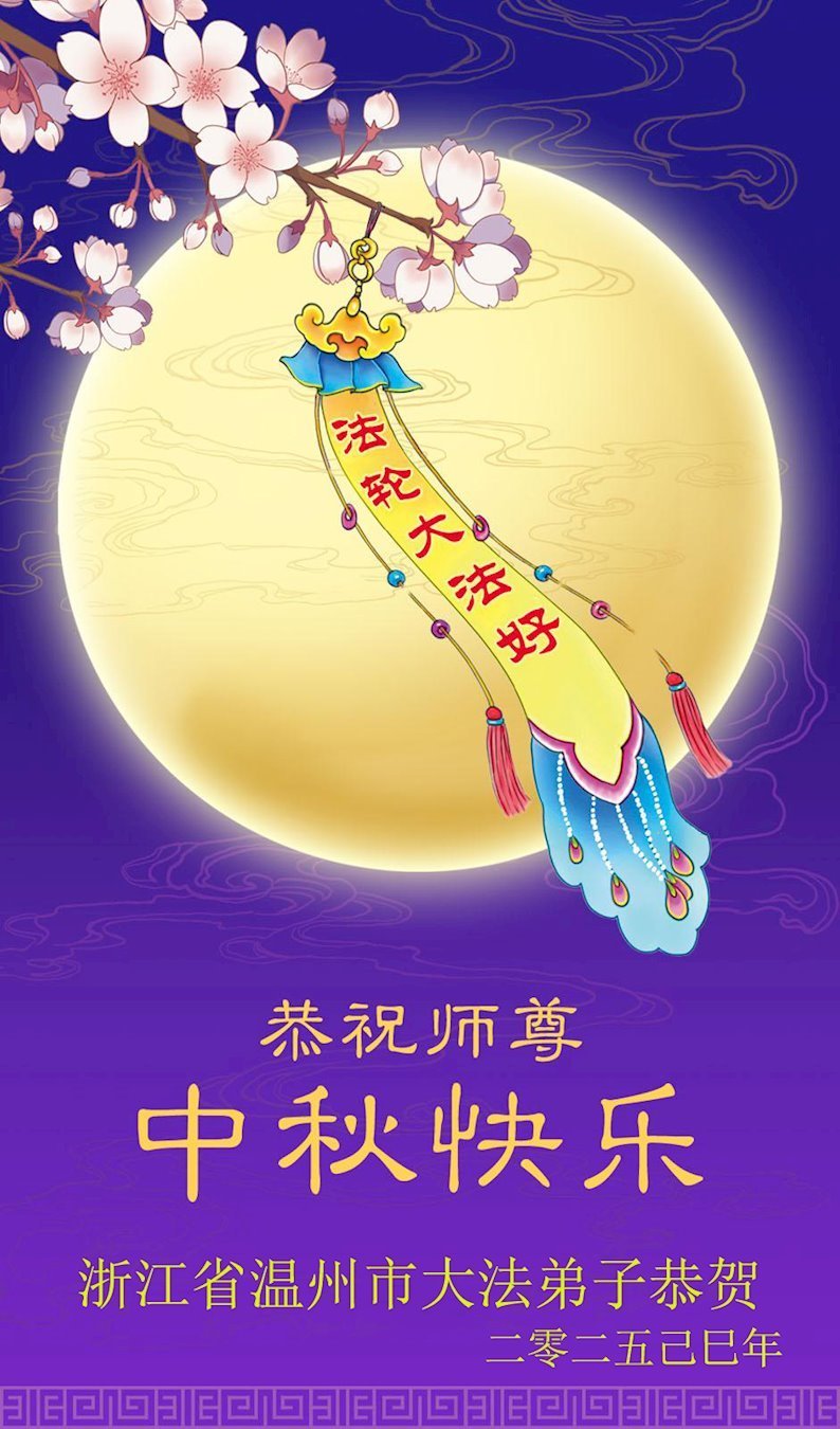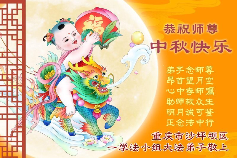 每逢佳節倍思親!值此中秋佳節到來之際,我們寧波全體大法弟子將我們對師尊的思念與問候通過明慧轉達,請師尊接受我們永恆的敬意與無盡的感恩!師恩浩蕩!感恩師尊的慈悲救度!無論今後證實法與救度眾生有多難多險,無論遇到多少意想不到的魔難與考驗,弟子們都會堅修大法,同化真善忍,精進再精進,做好三件事,決不辜負師尊的慈悲苦度。