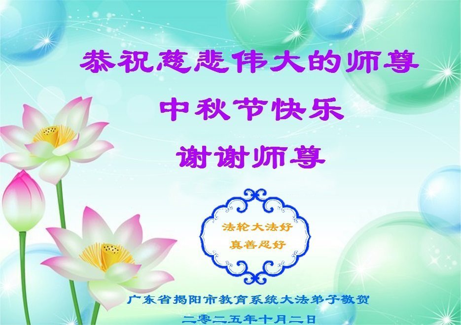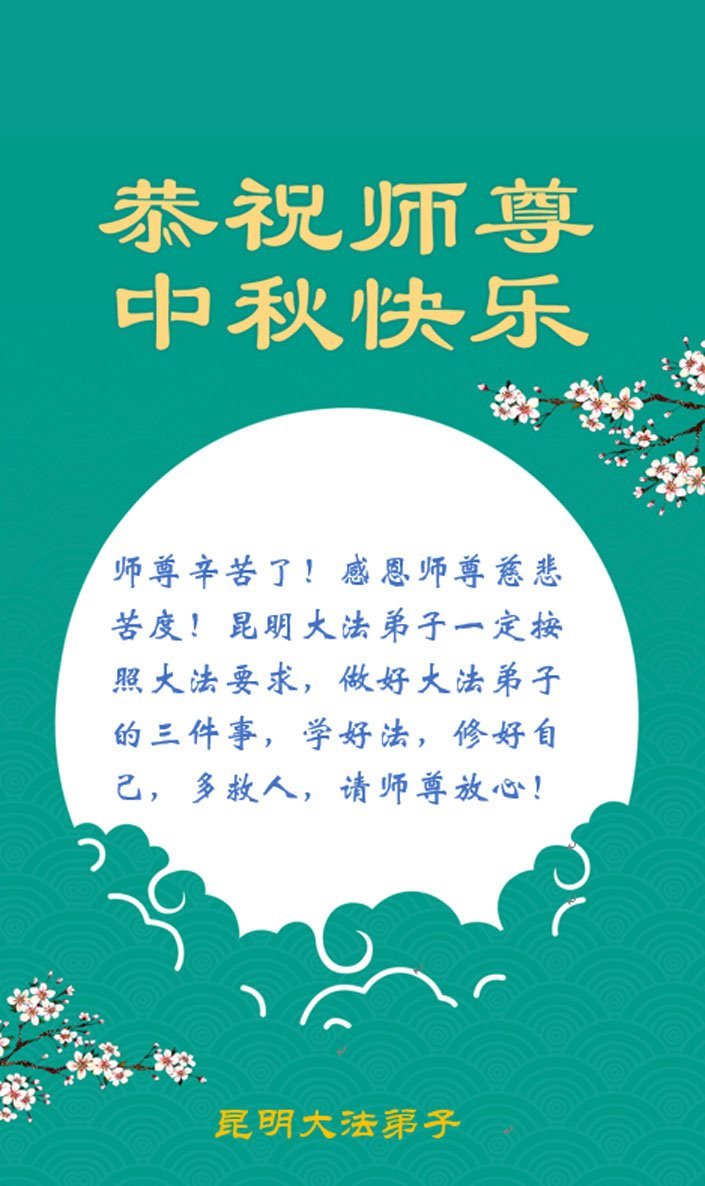 以下為部份來自中國大陸30省、自治區、直轄市的大法弟子們敬致李洪志師尊的賀信,恭賀慈悲偉大的師尊中秋節快樂!